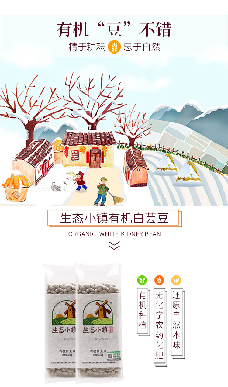 有机白芸豆 小白芸豆 370g/袋【京东快递送货上门】