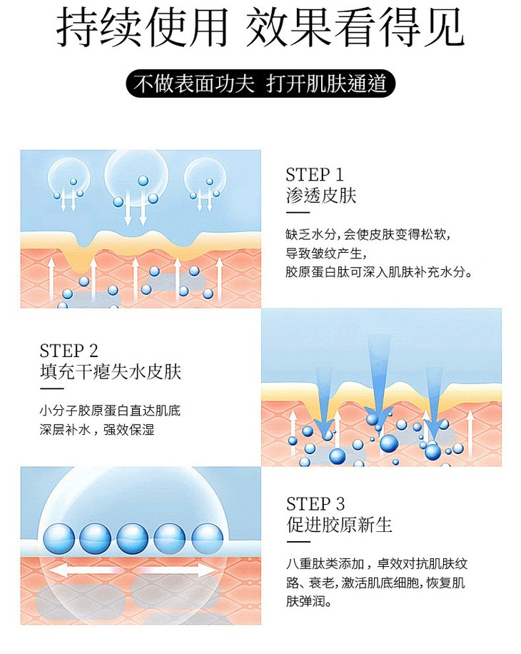 ✅水解胶原➕棕榈酰四肽-7➕棕榈酰五肽-4 提高肌肤的弹性,脸蛋肌肤更加丰盈饱满