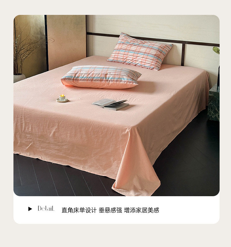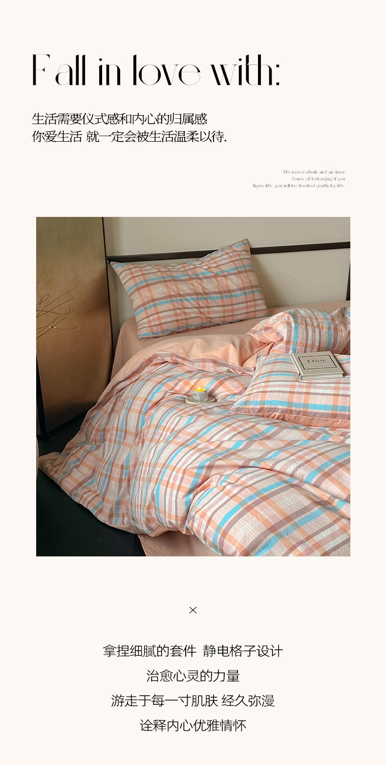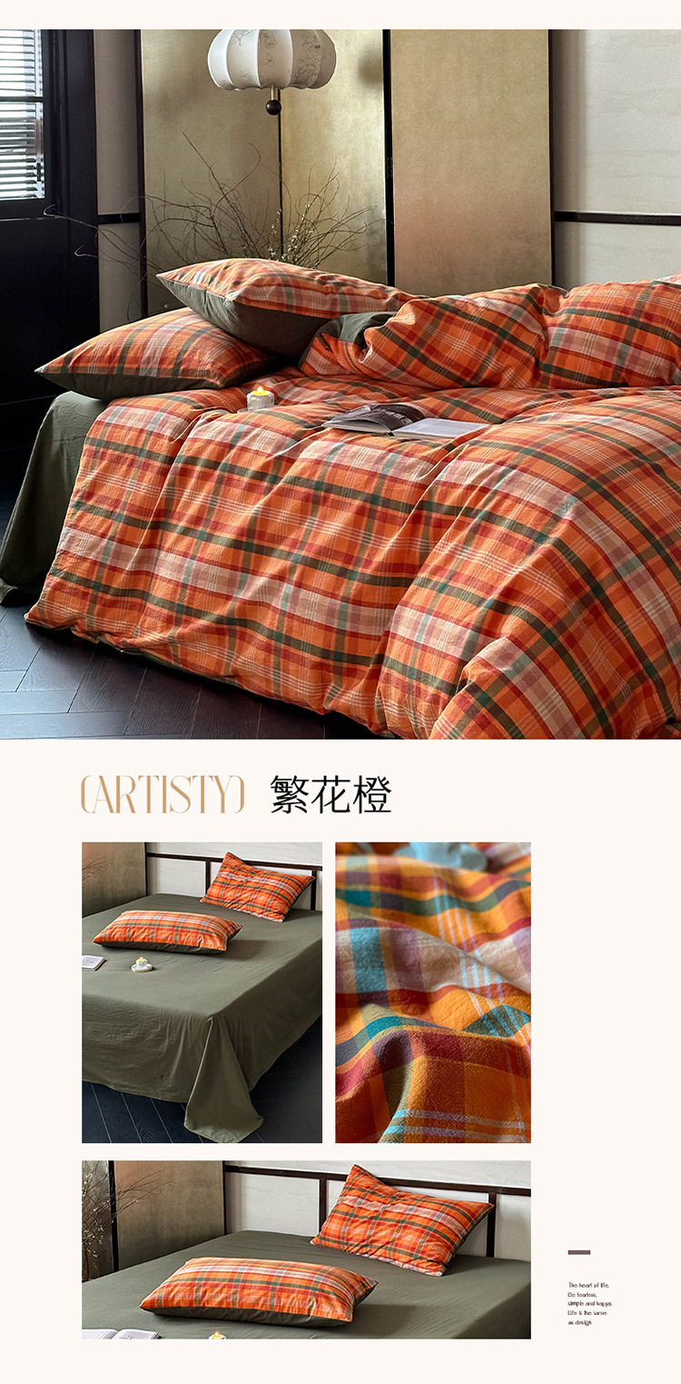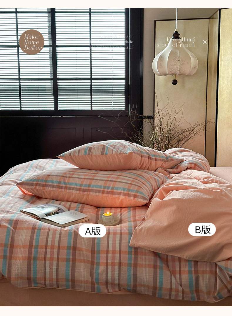 日式无印全棉水洗棉四件套良品格纹床品套件简约民宿酒店4件套