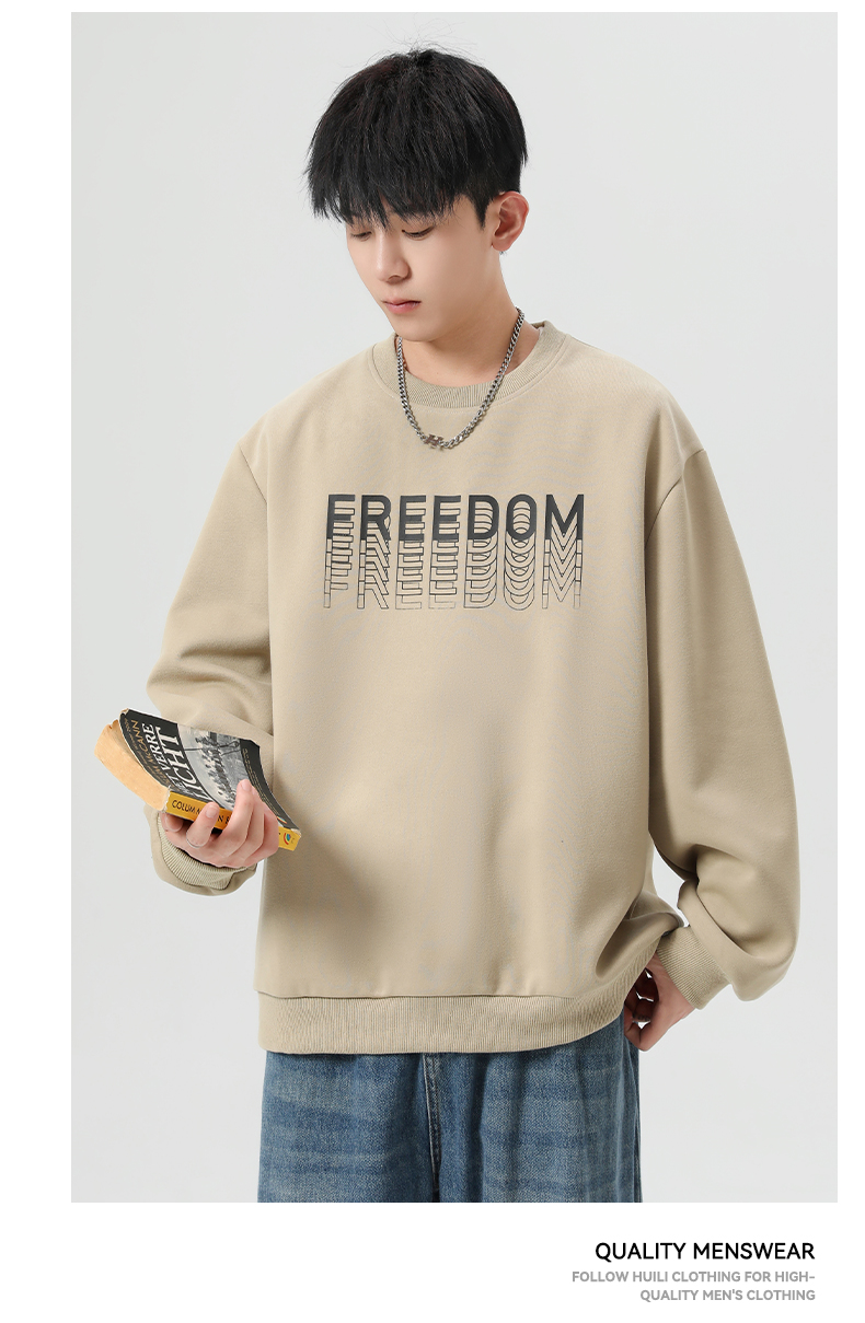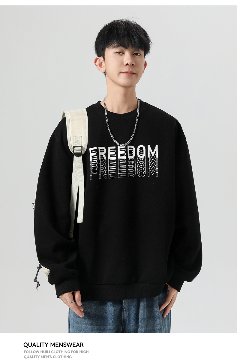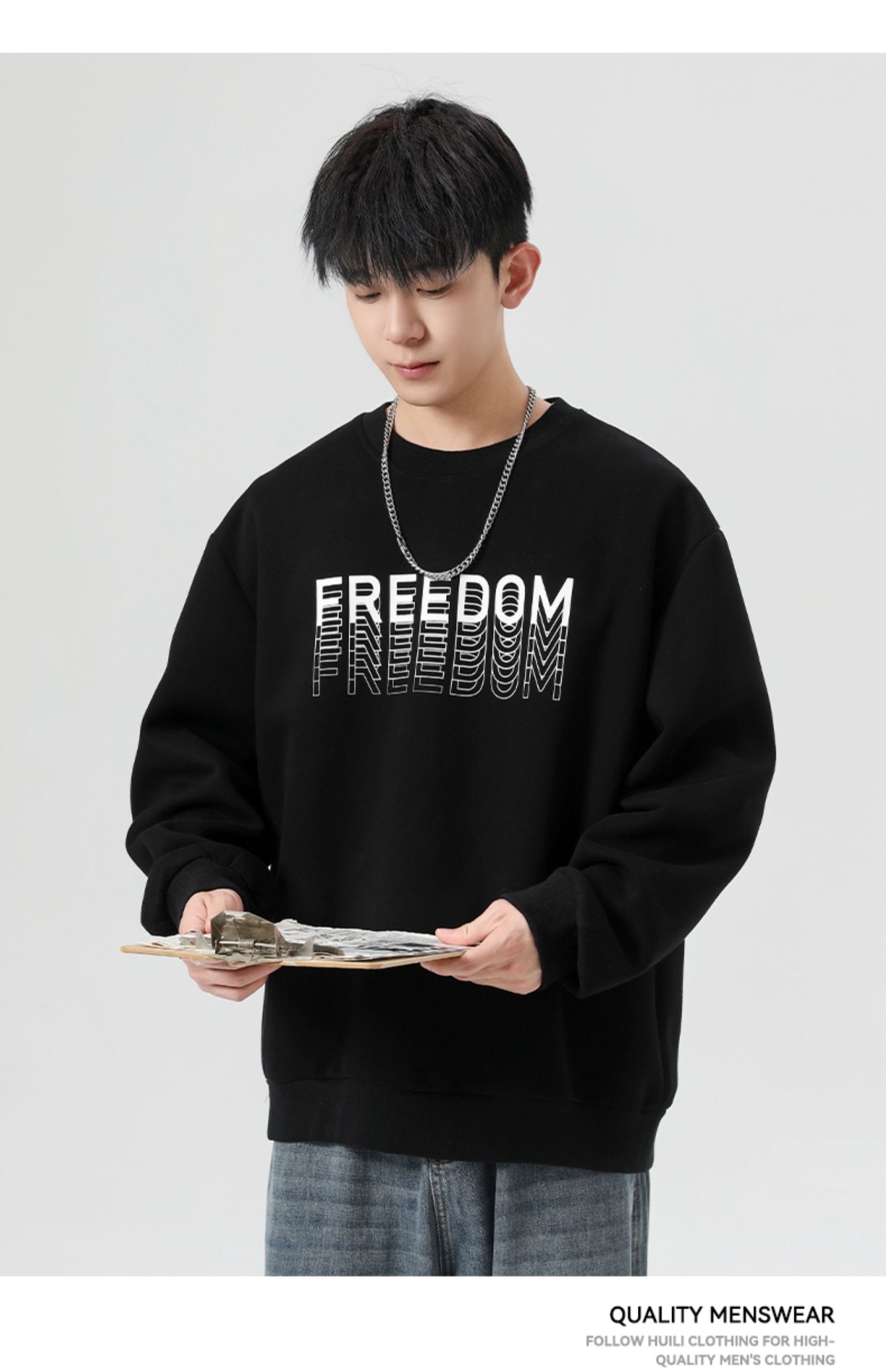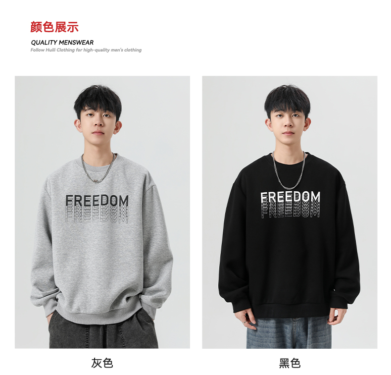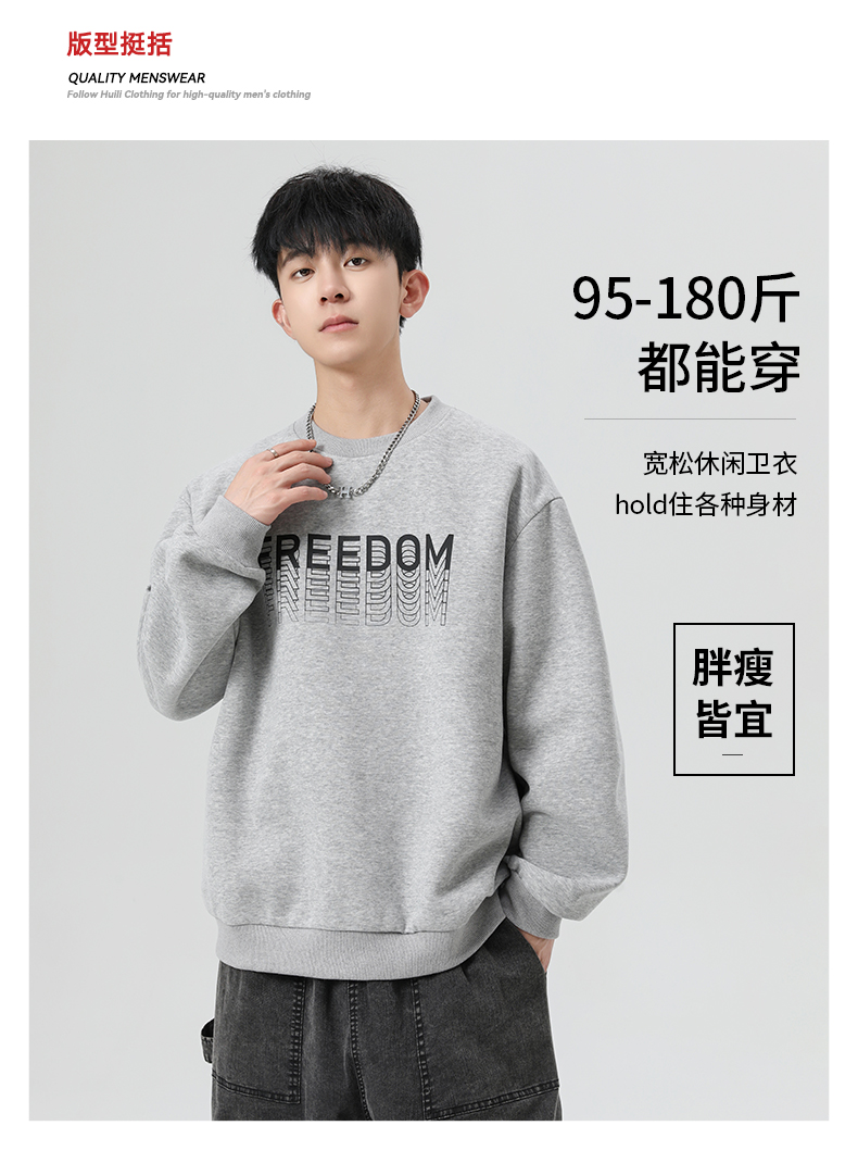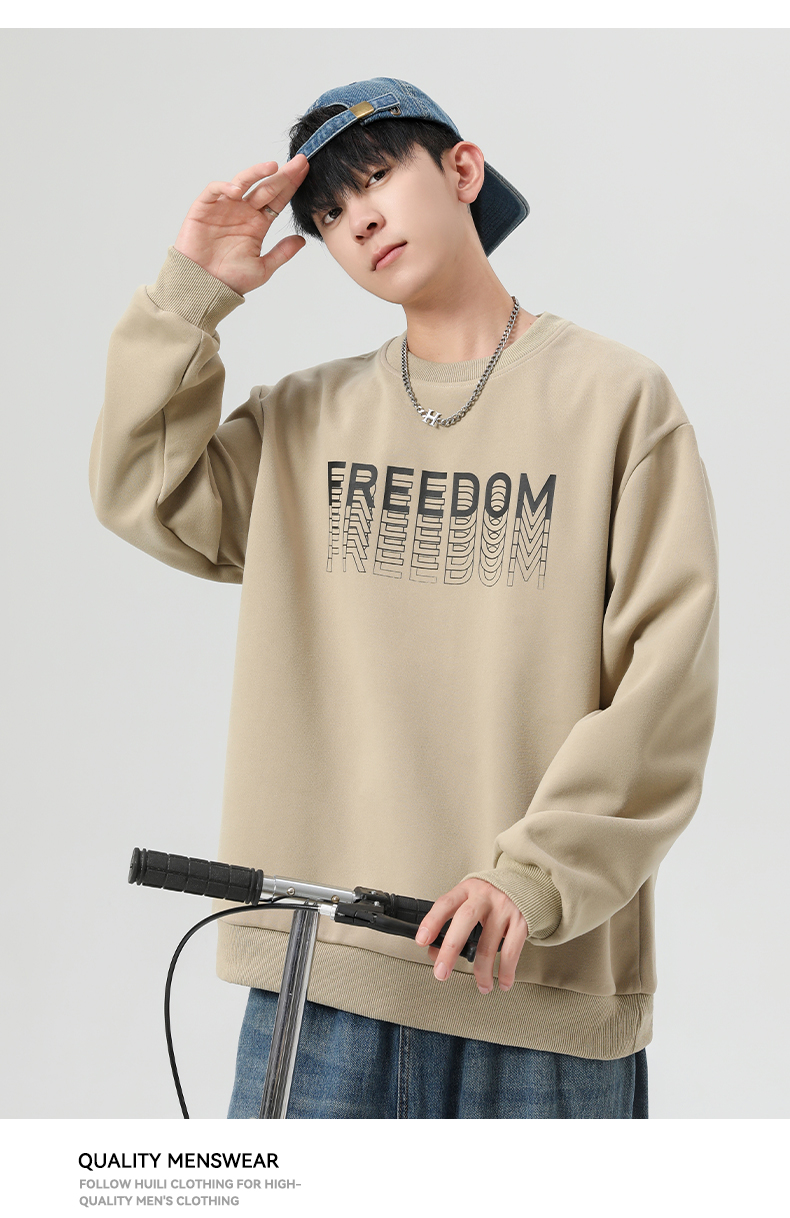 回力卫衣男春秋款2025新款美式重磅圆领无帽上衣外套宽松长袖