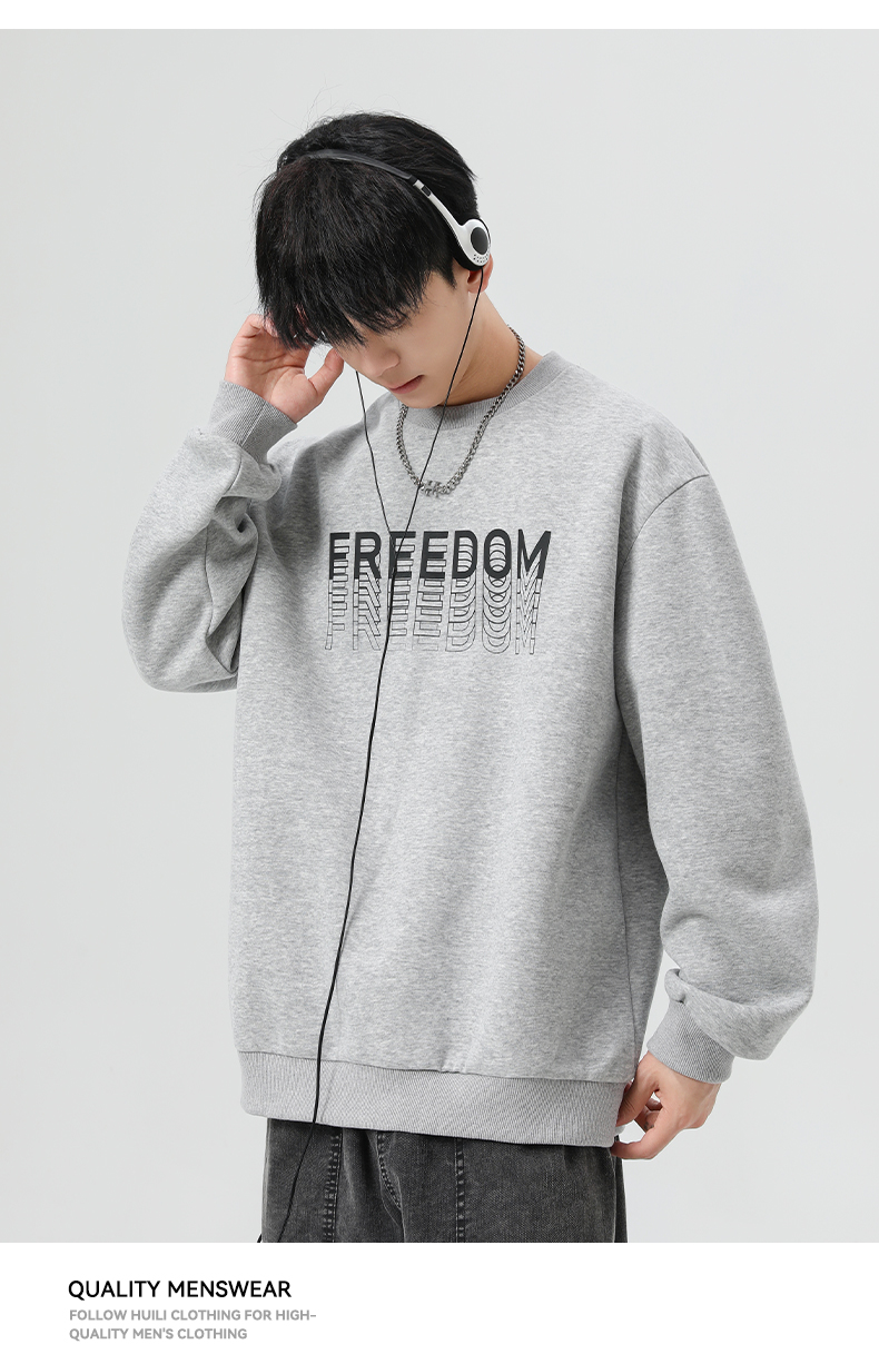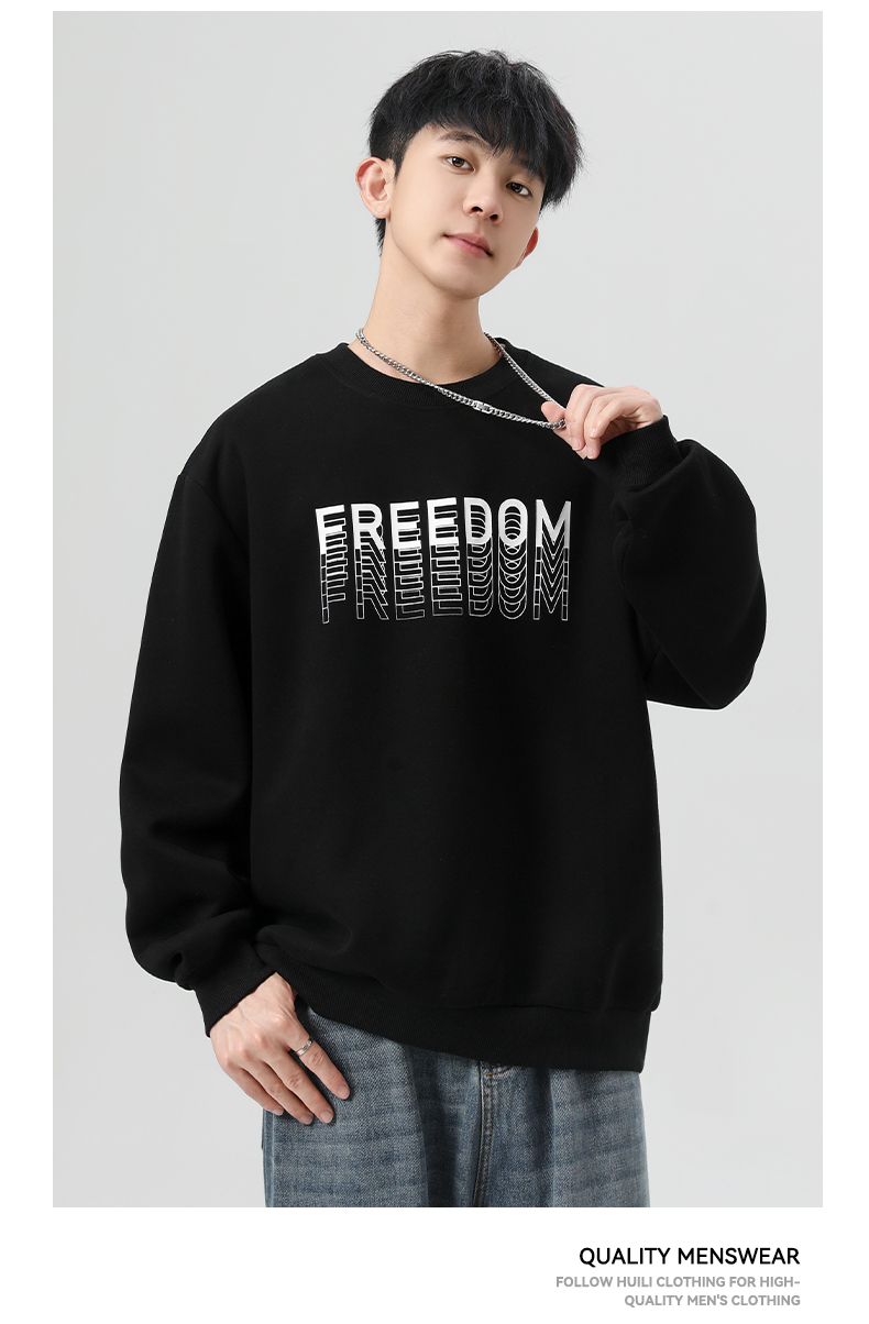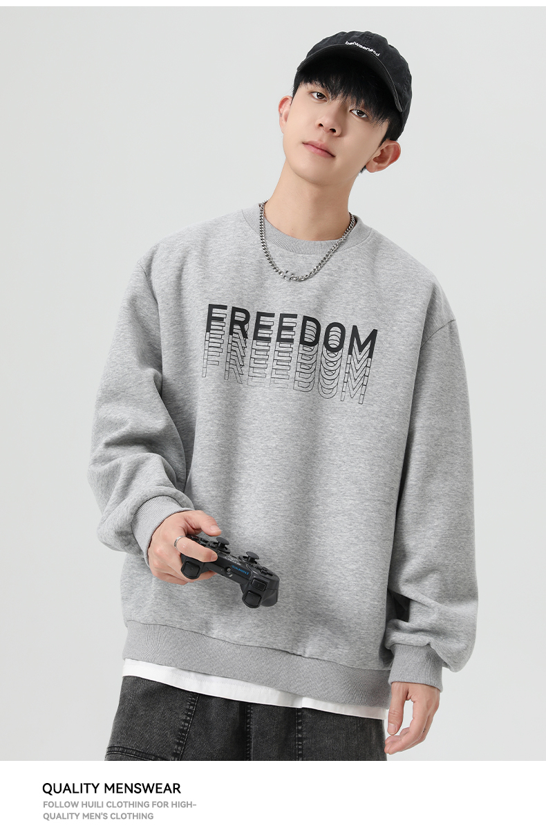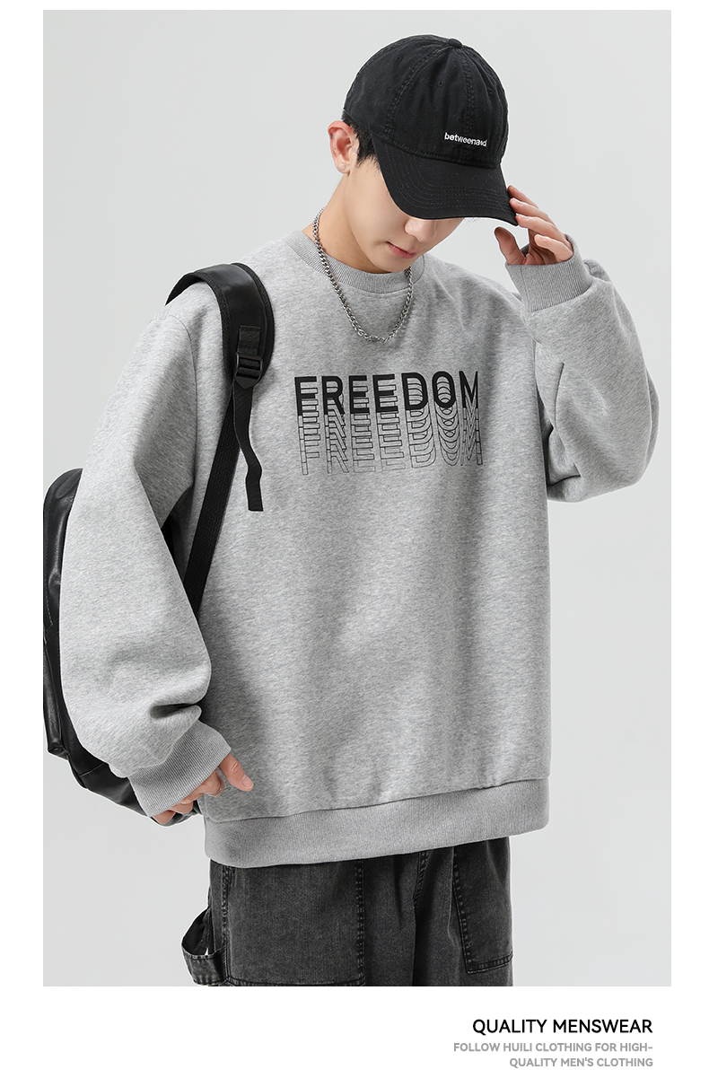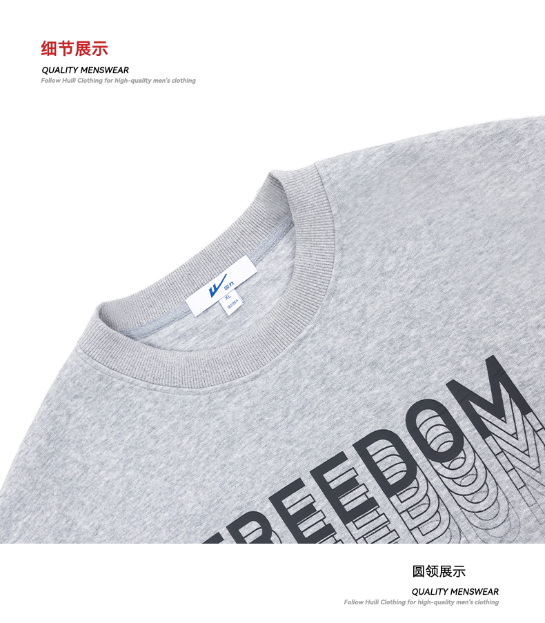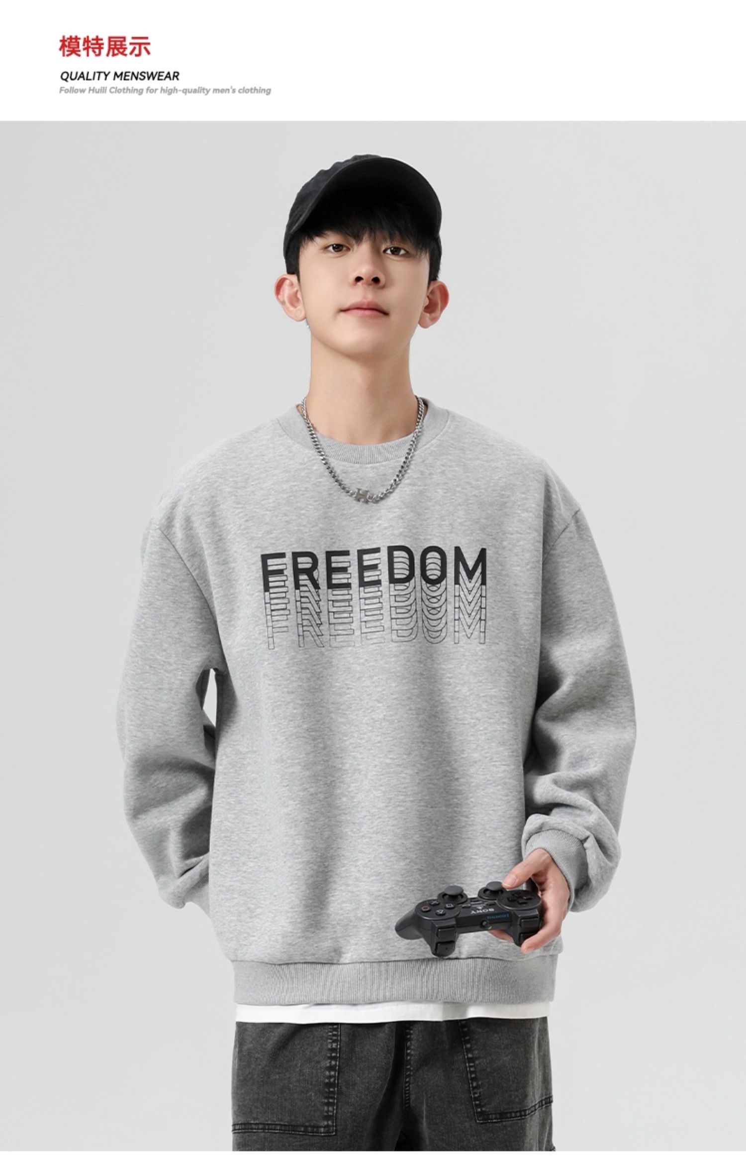 回力卫衣男春秋款2025新款美式重磅圆领无帽上衣外套宽松长袖