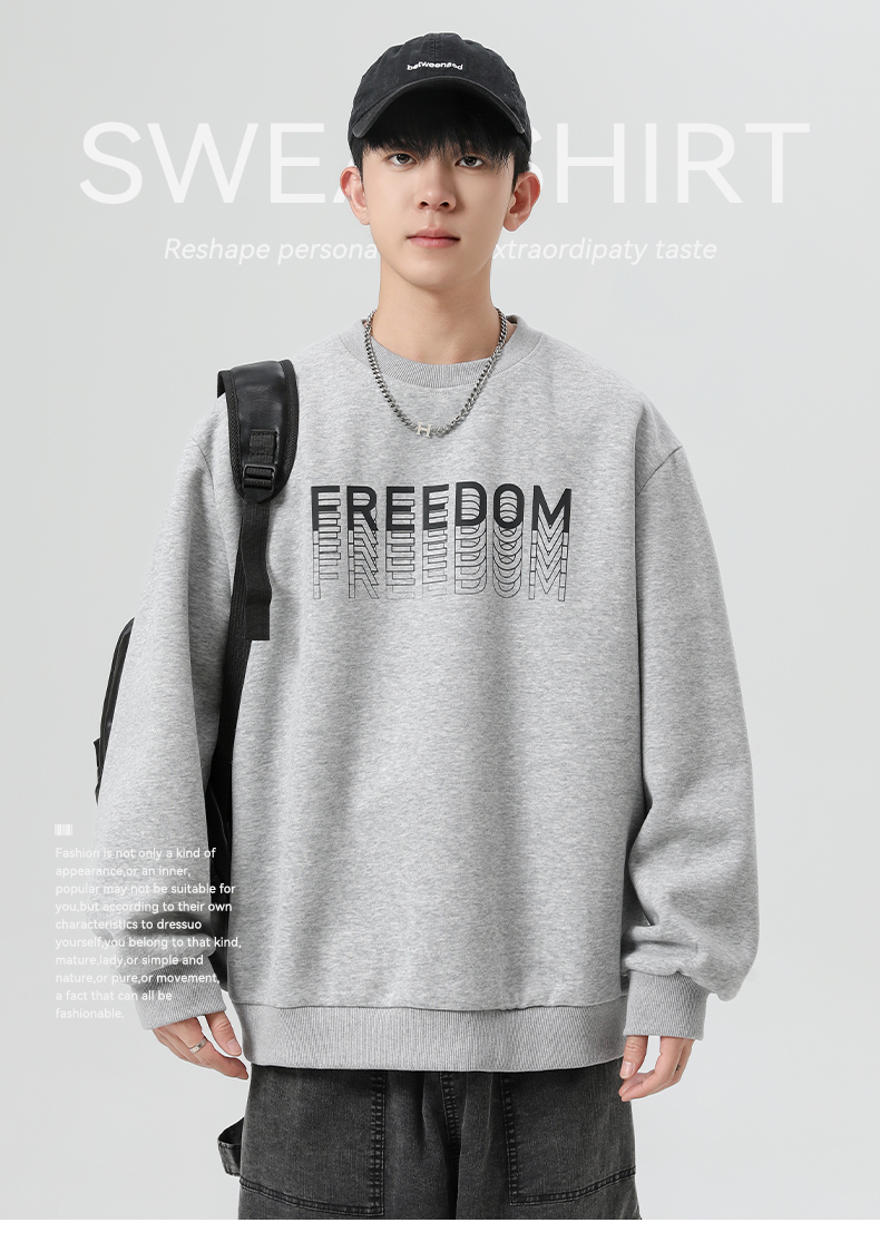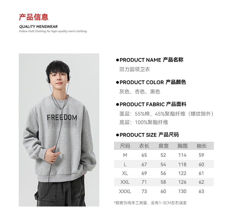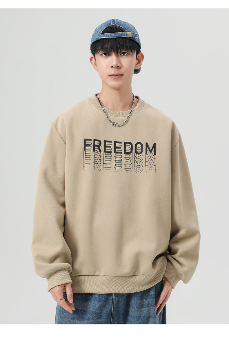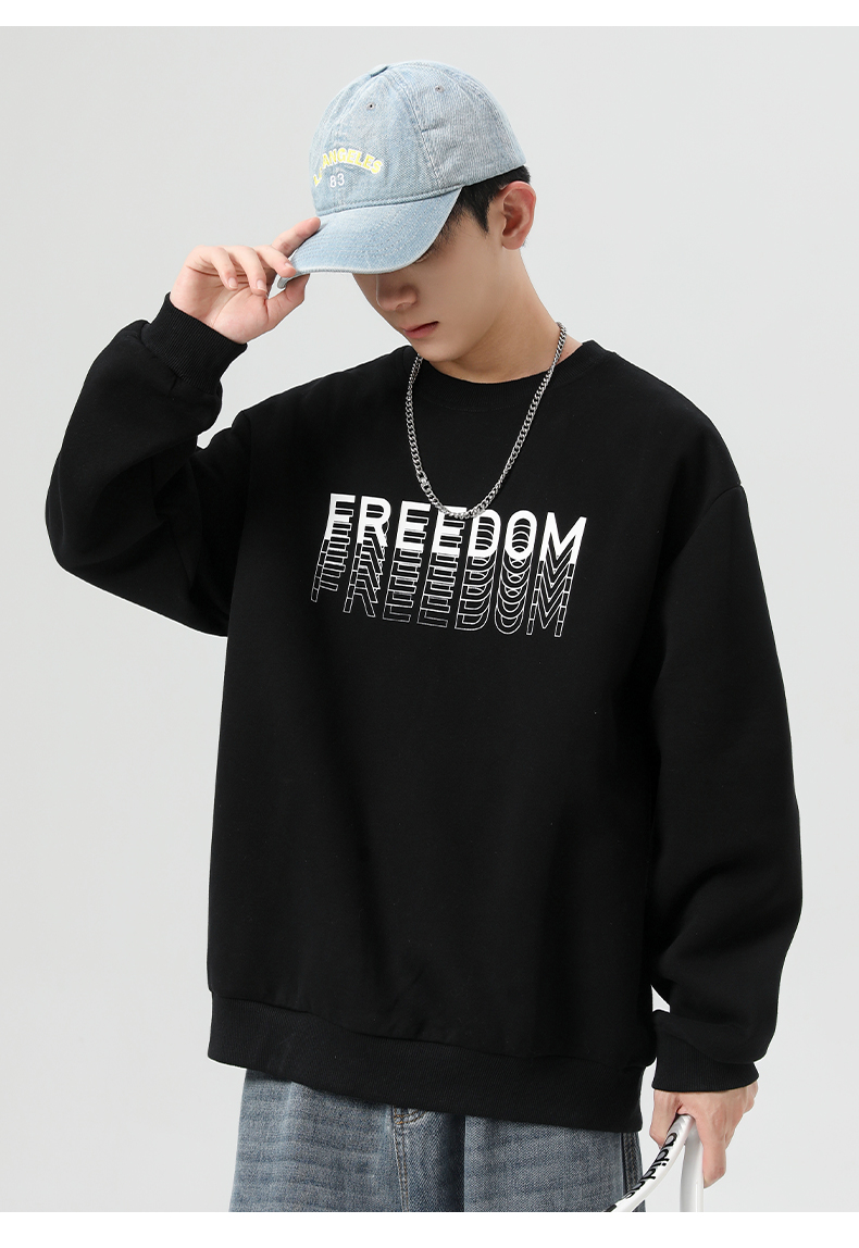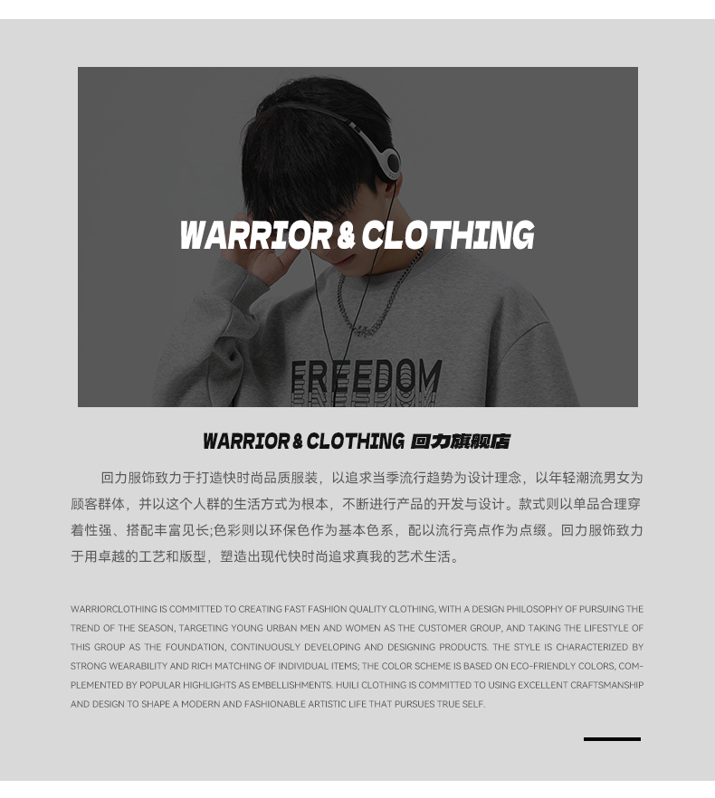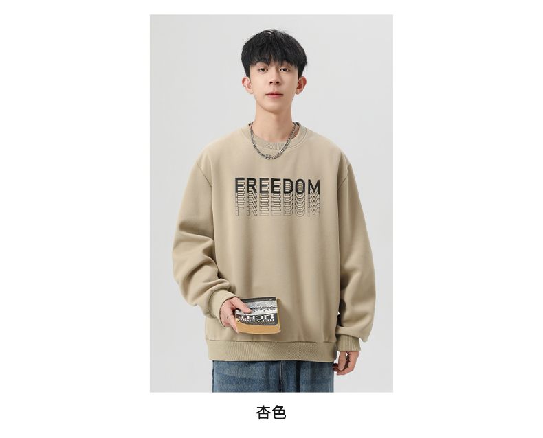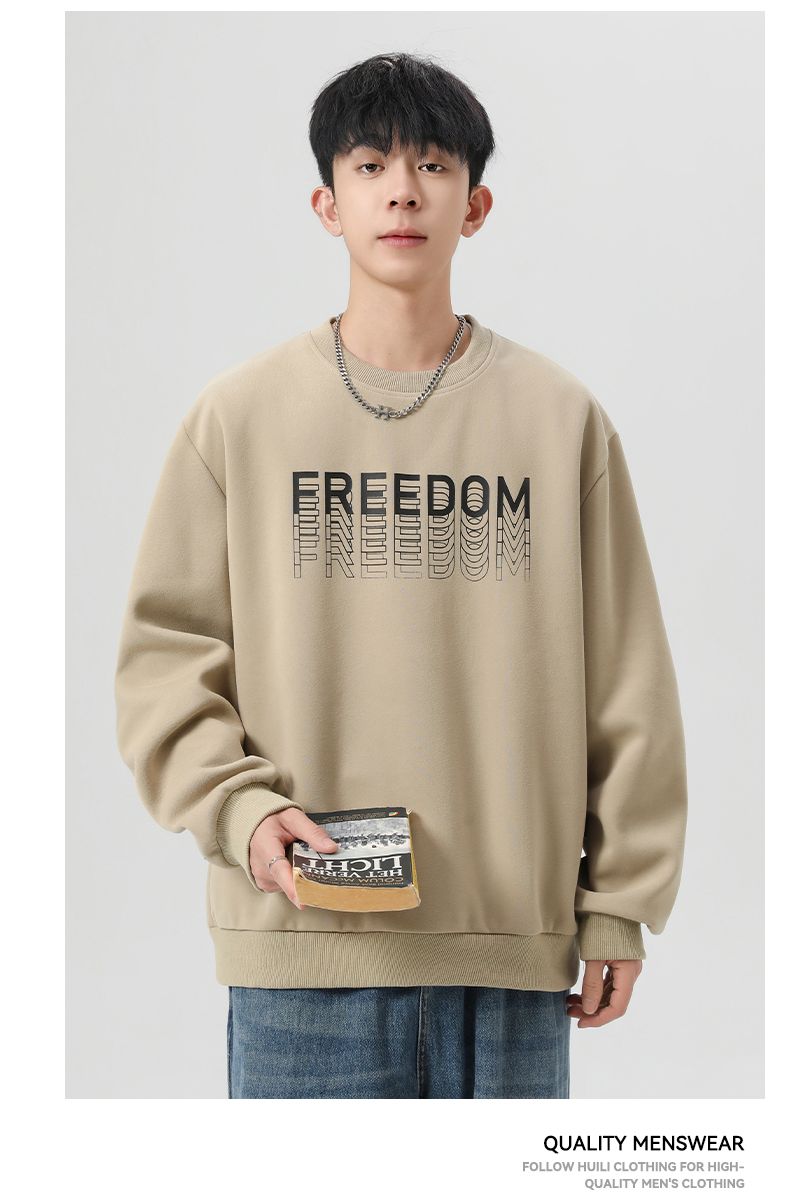 回力卫衣男春秋款2025新款美式重磅圆领无帽上衣外套宽松长袖