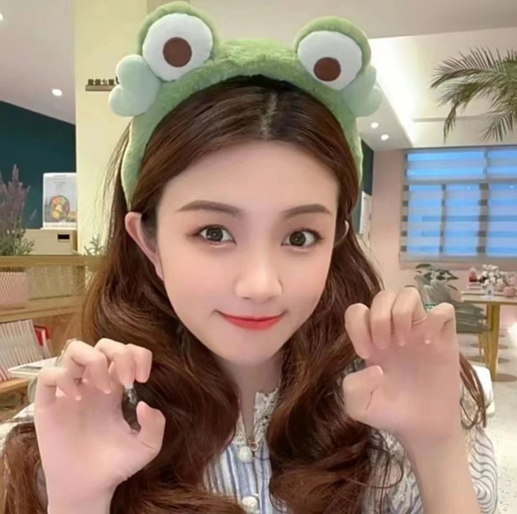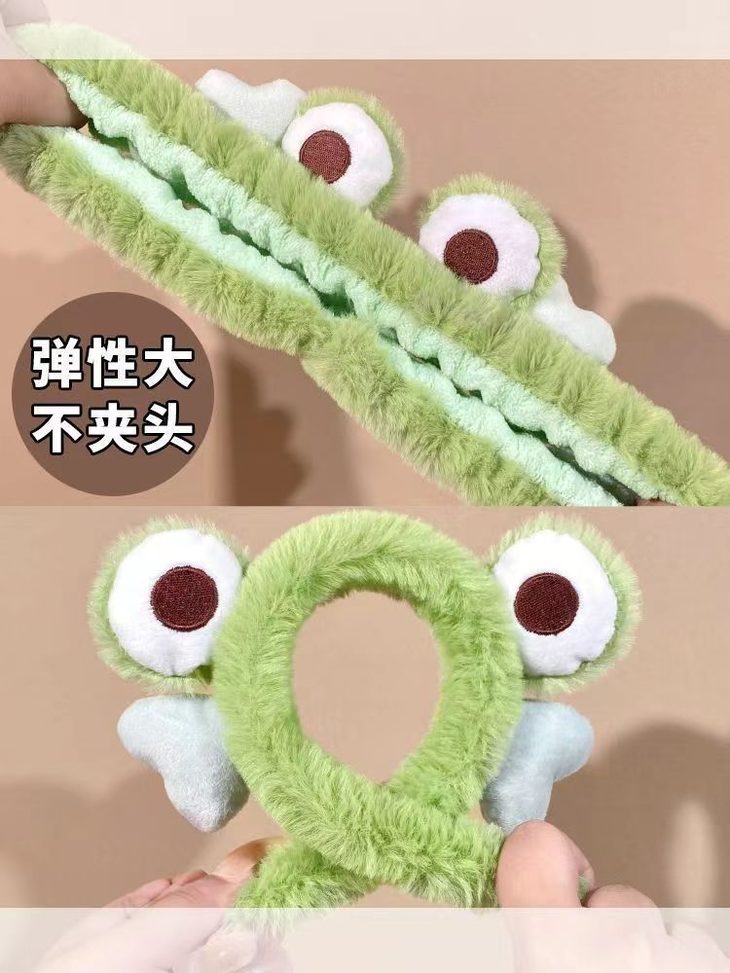【网红明星同款发箍!青蛙发饰】毛绒大眼睛青蛙可爱卡通头箍发饰;弹性大 不夹头;搞怪卡通青蛙爱心毛绒发箍特价清仓L
