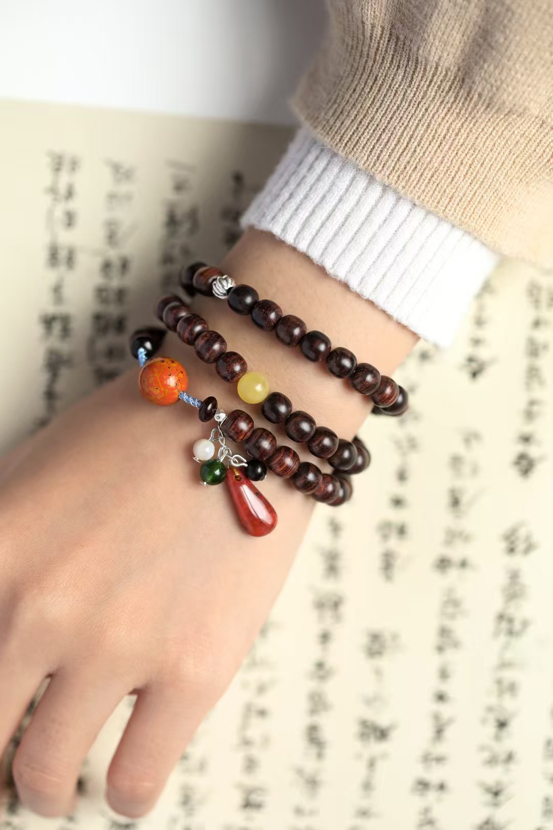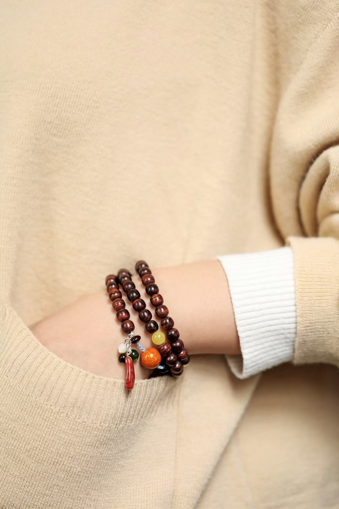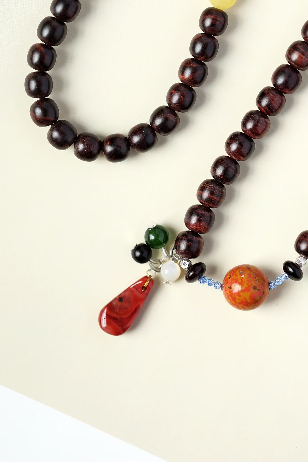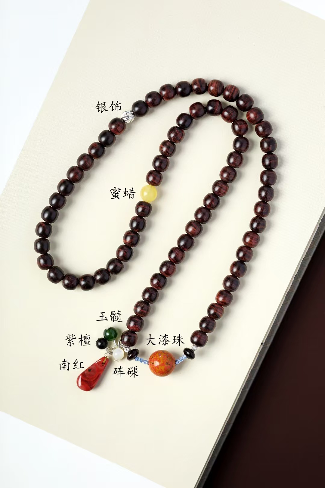 配饰:蜜蜡 南红 砗磲 紫檀 玉髓 银饰 大漆珠