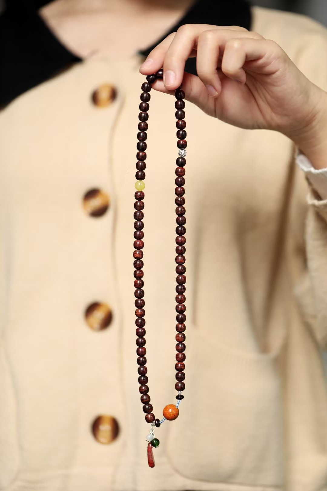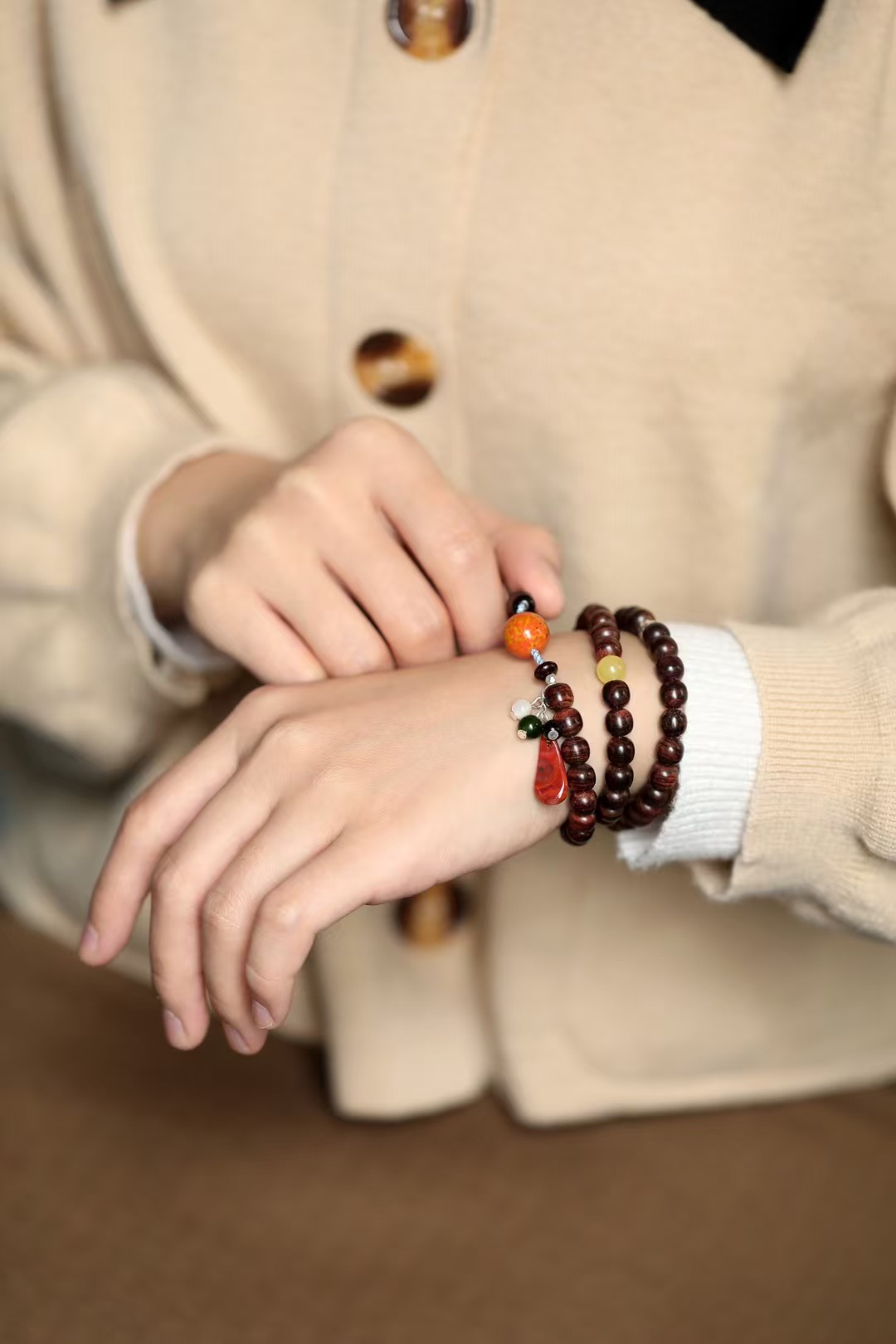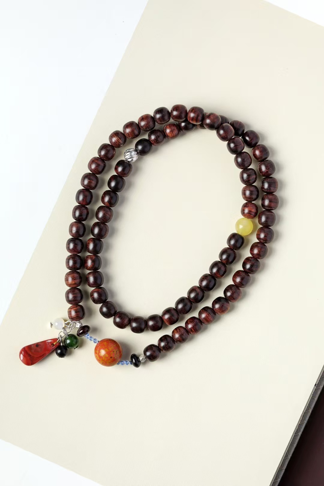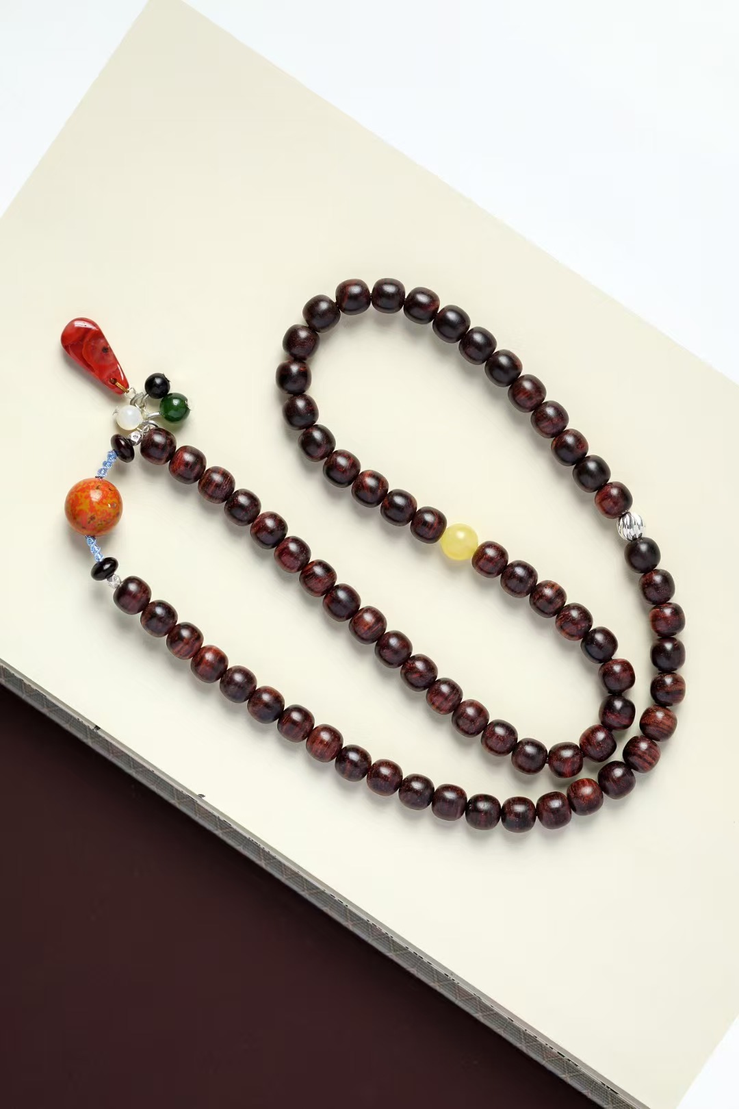 配饰:蜜蜡 南红 砗磲 紫檀 玉髓 银饰 大漆珠