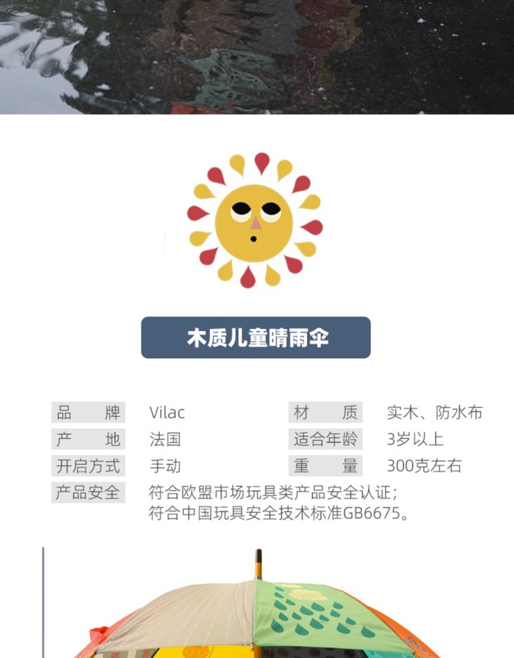【Vilac】木制长柄超轻碳纤维晴雨两用伞
