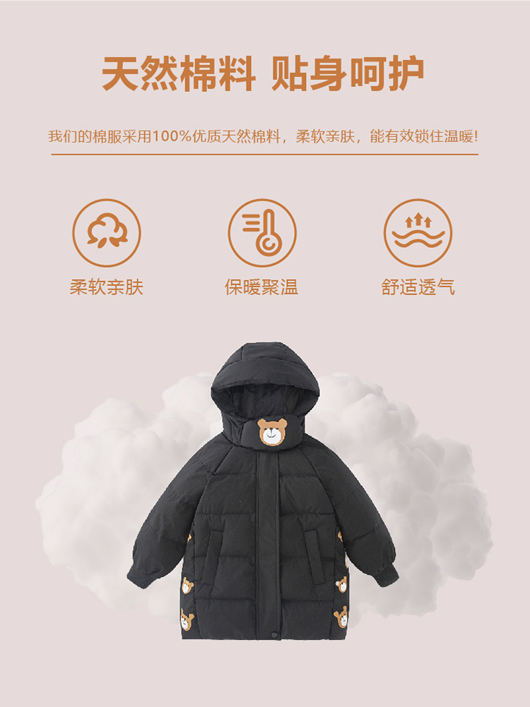 2025新款儿童棉服中长款韩版男女童宝宝可爱款加厚棉服