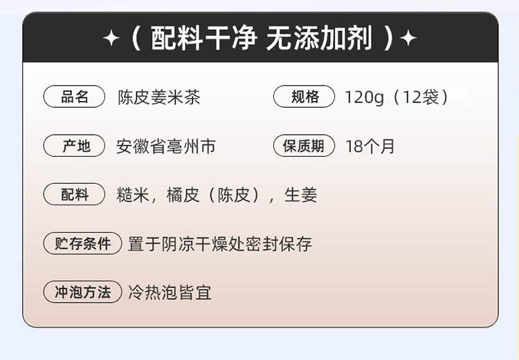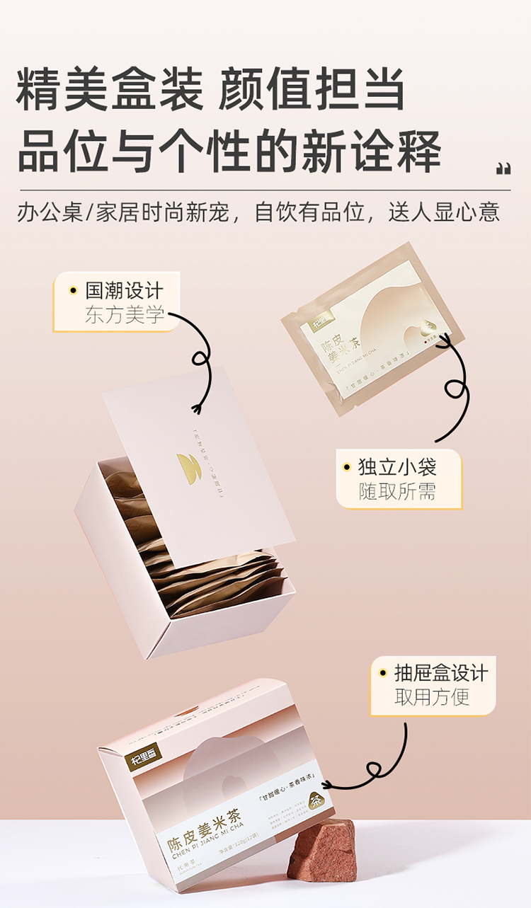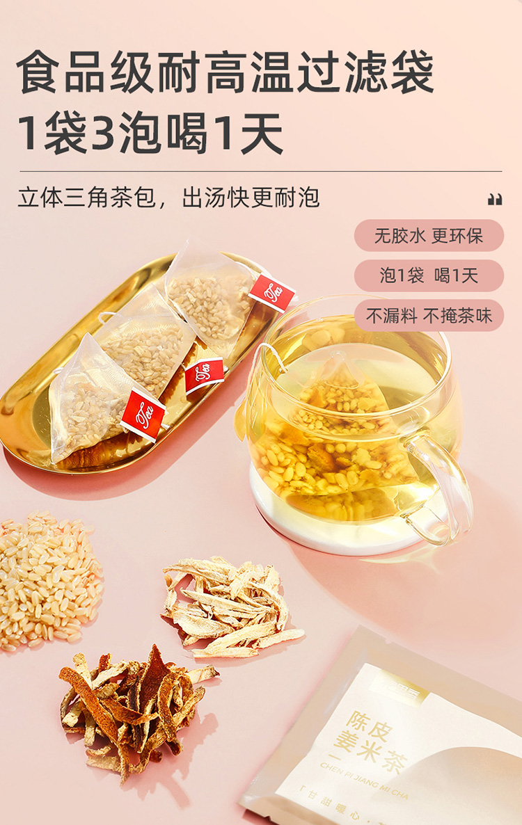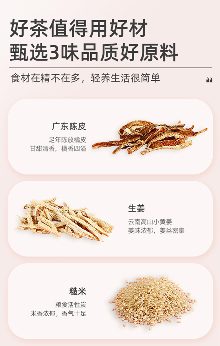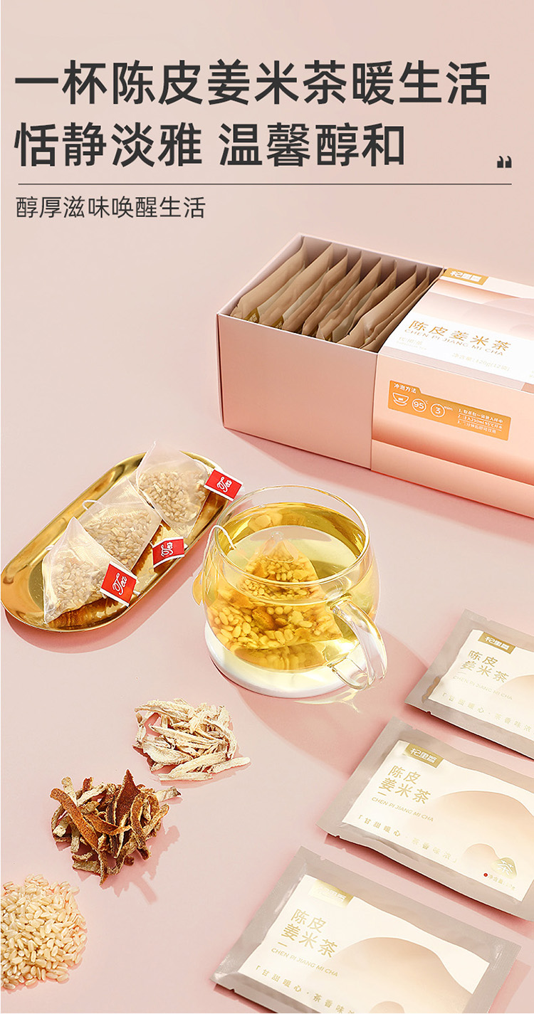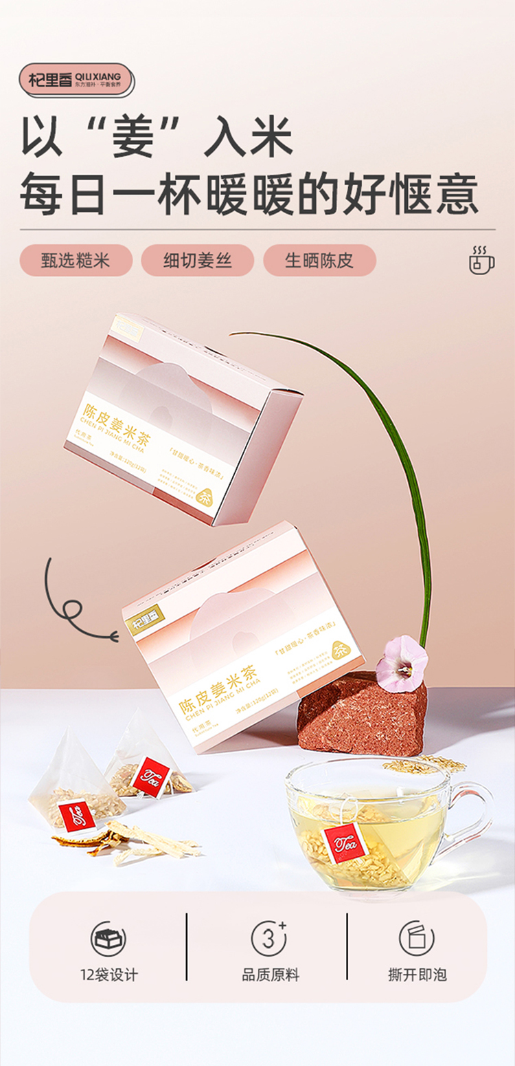 杞里香120g(12袋)陈皮姜米茶 云南生姜广东橘皮东北糙米;三分谷物香 七分茶滋味;免煮型,即泡即饮,独立小袋