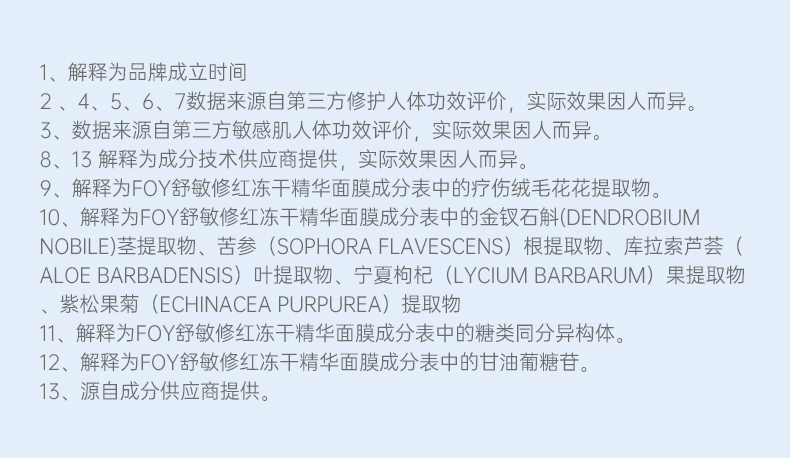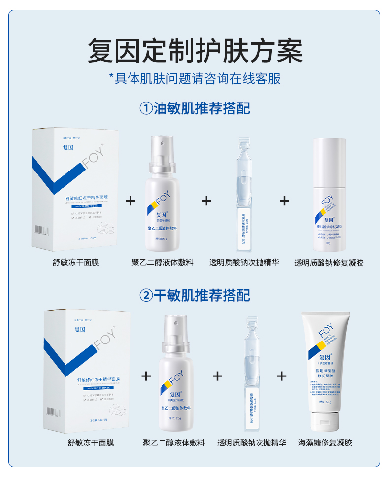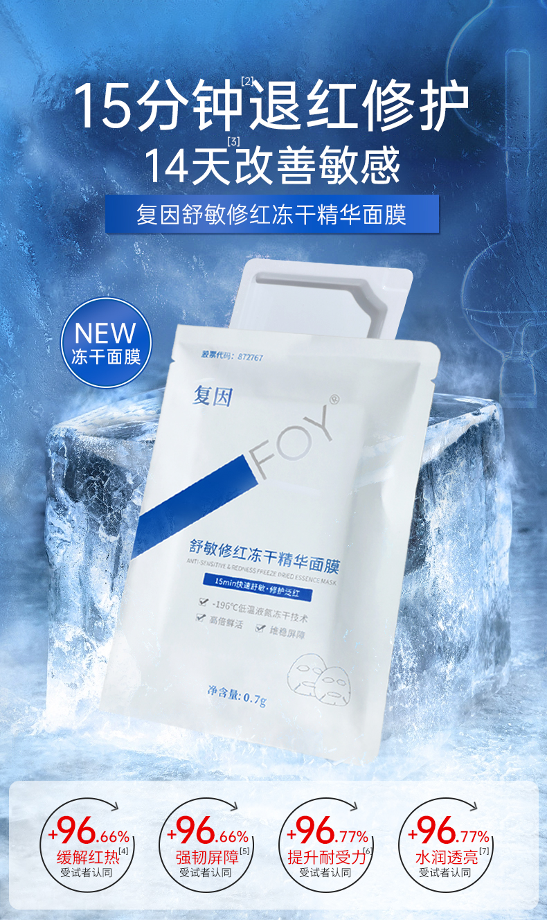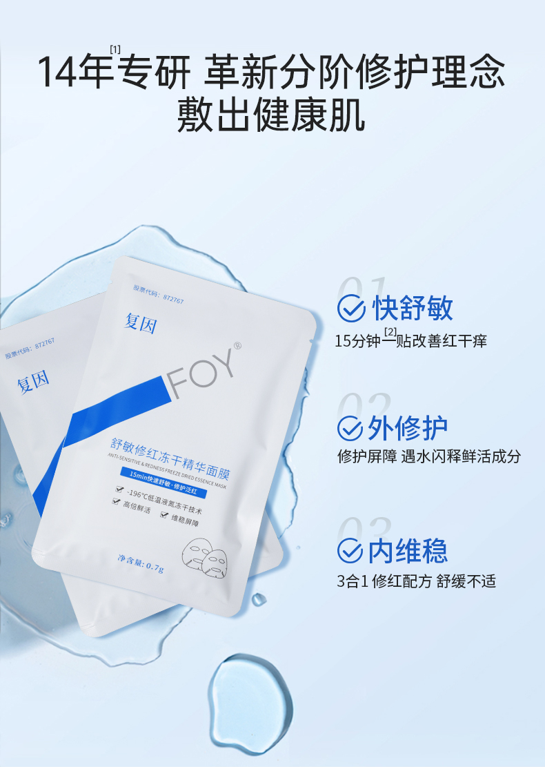 【买3送8片】复因FOY舒敏修红冻干精华面膜 0.7g*5片/盒***2件9折、3件8折