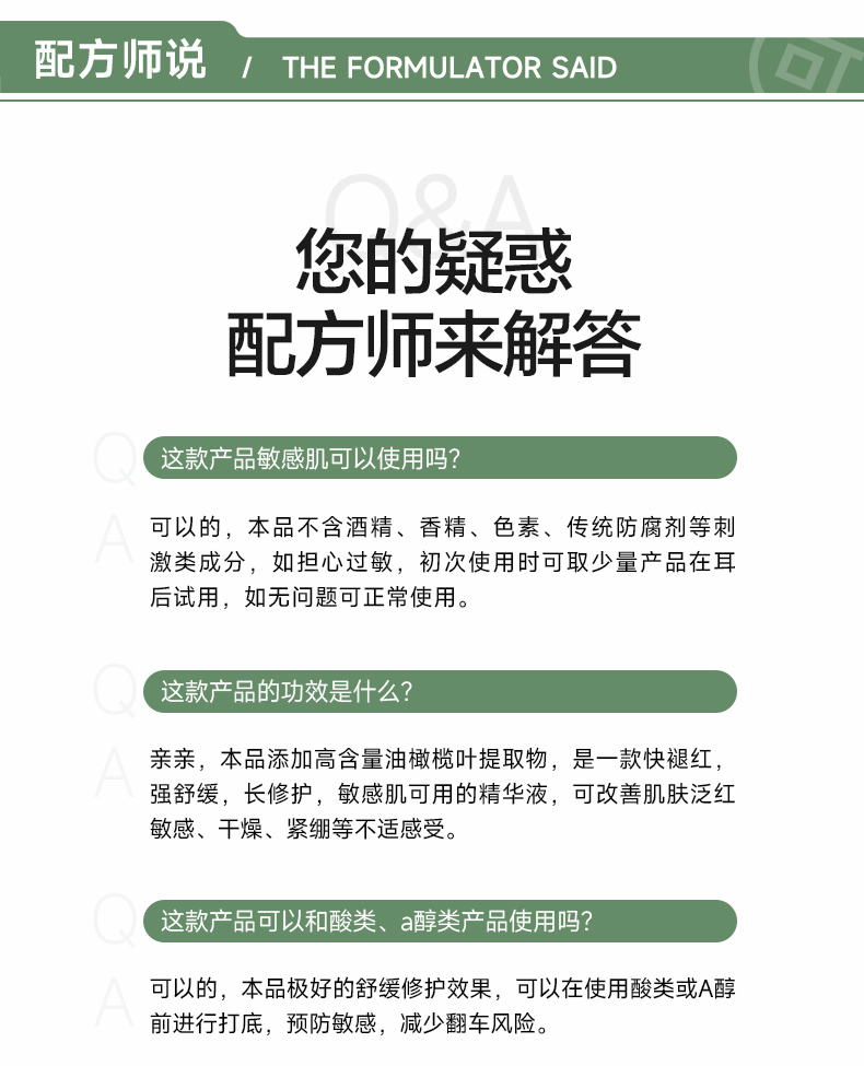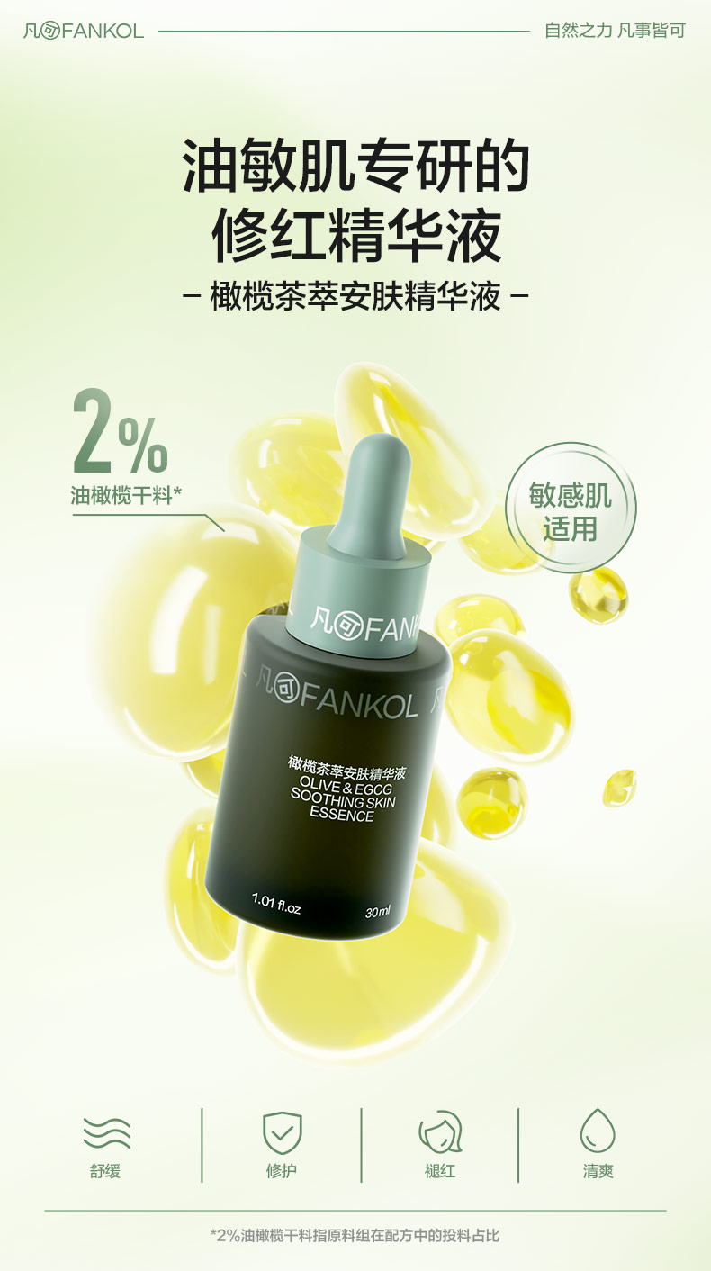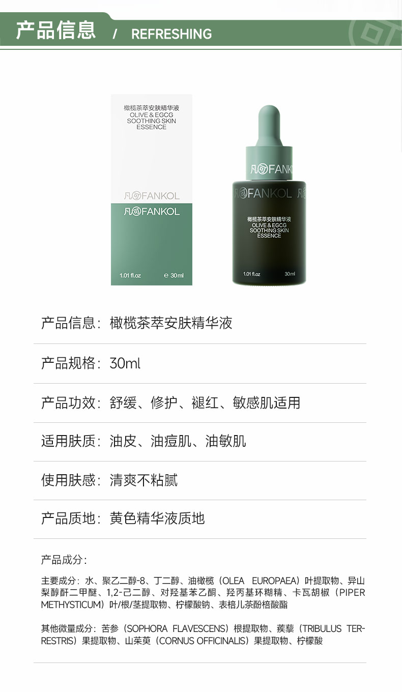 凡可橄榄茶萃安肤精华液舒缓修护褪红保湿补水敏感肌可用