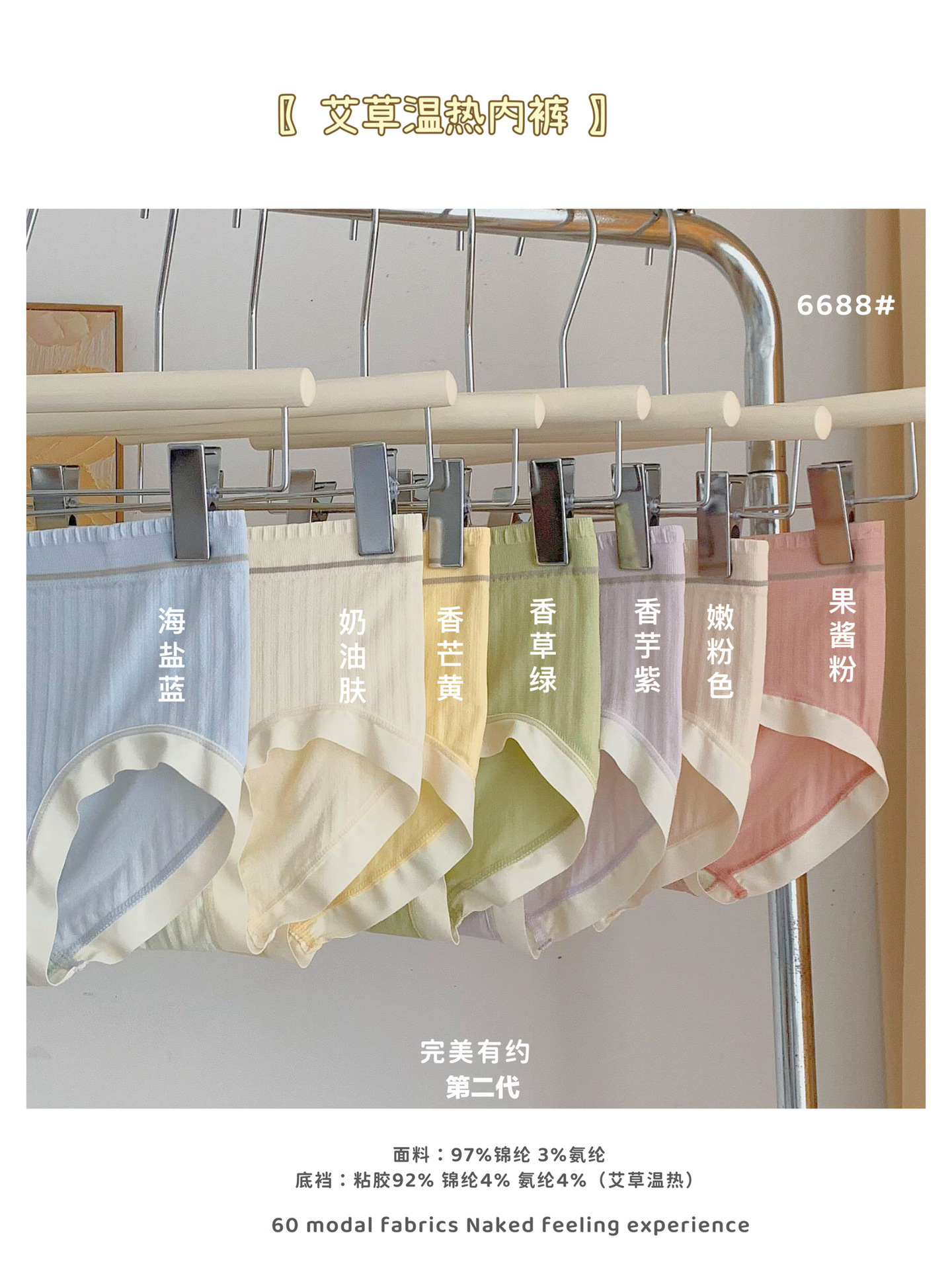 【第二代混色礼盒装】艾草温热内裤女莫代尔棉透气中腰三角裤礼盒装7条装!