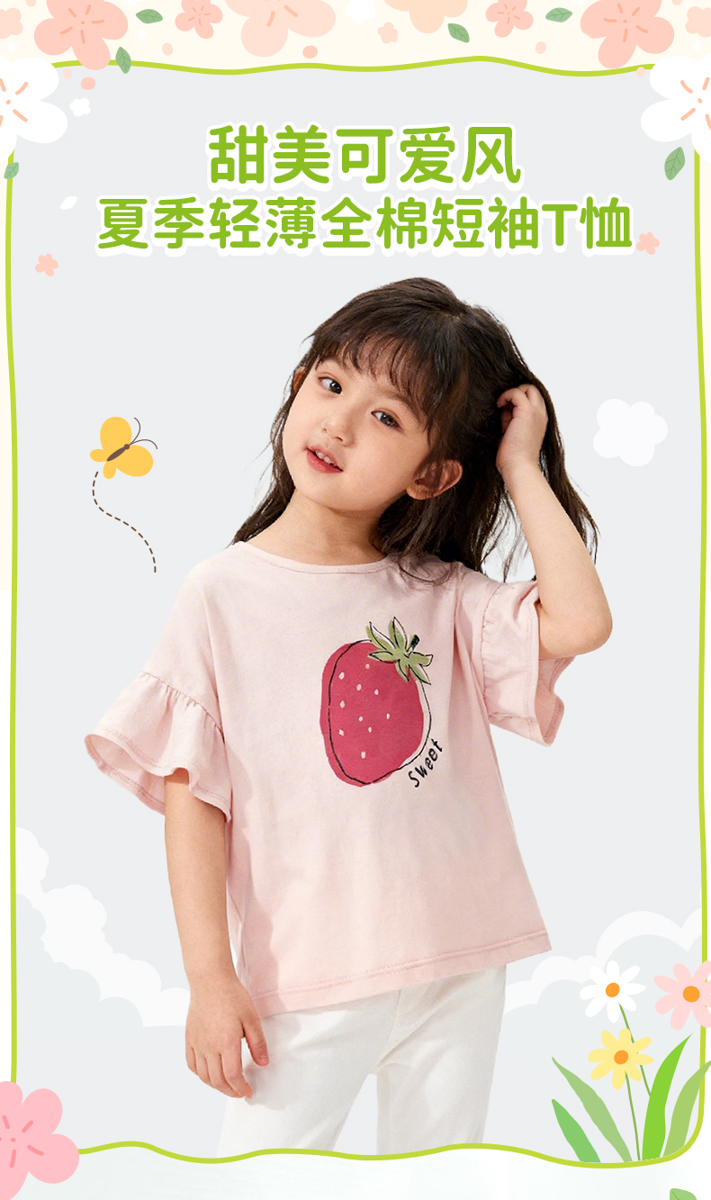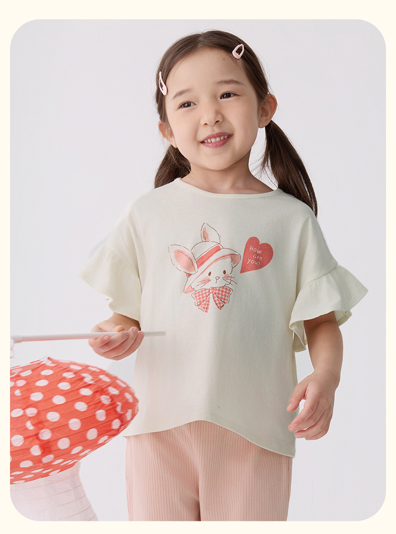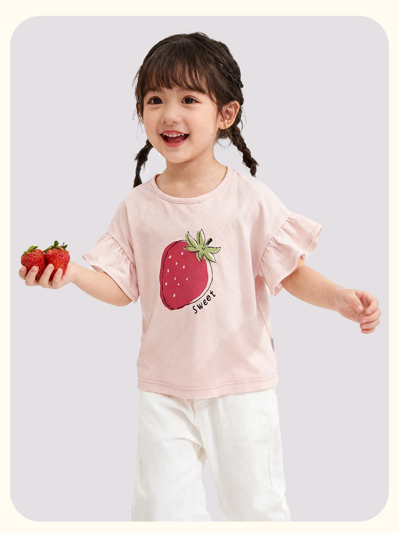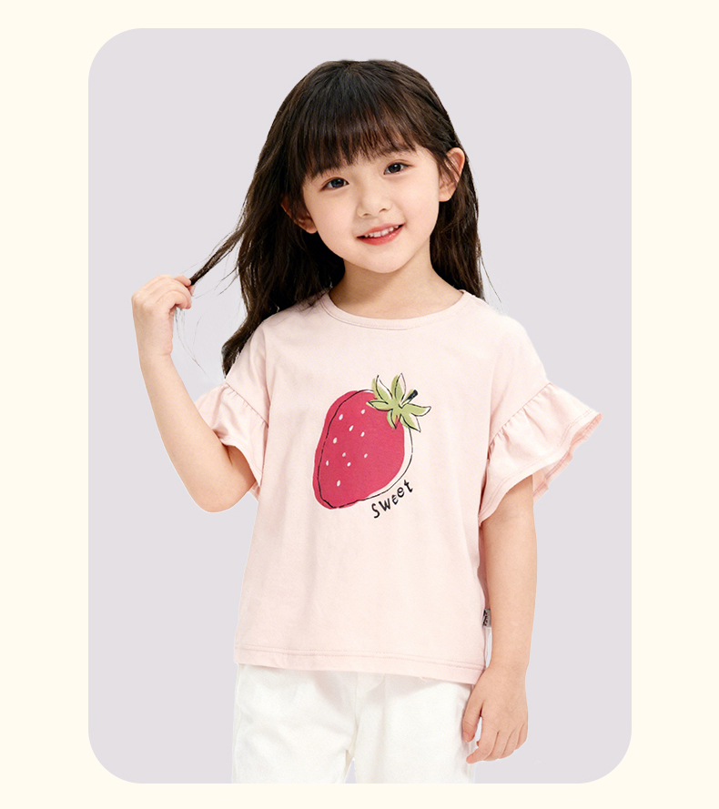 千趣会童装夏季女童清新可爱印花荷叶边袖轻薄棉质宽松短袖