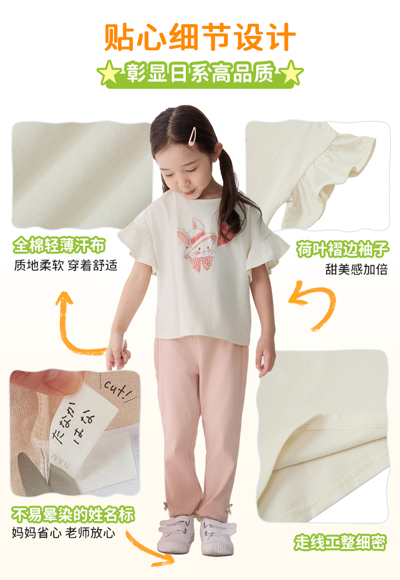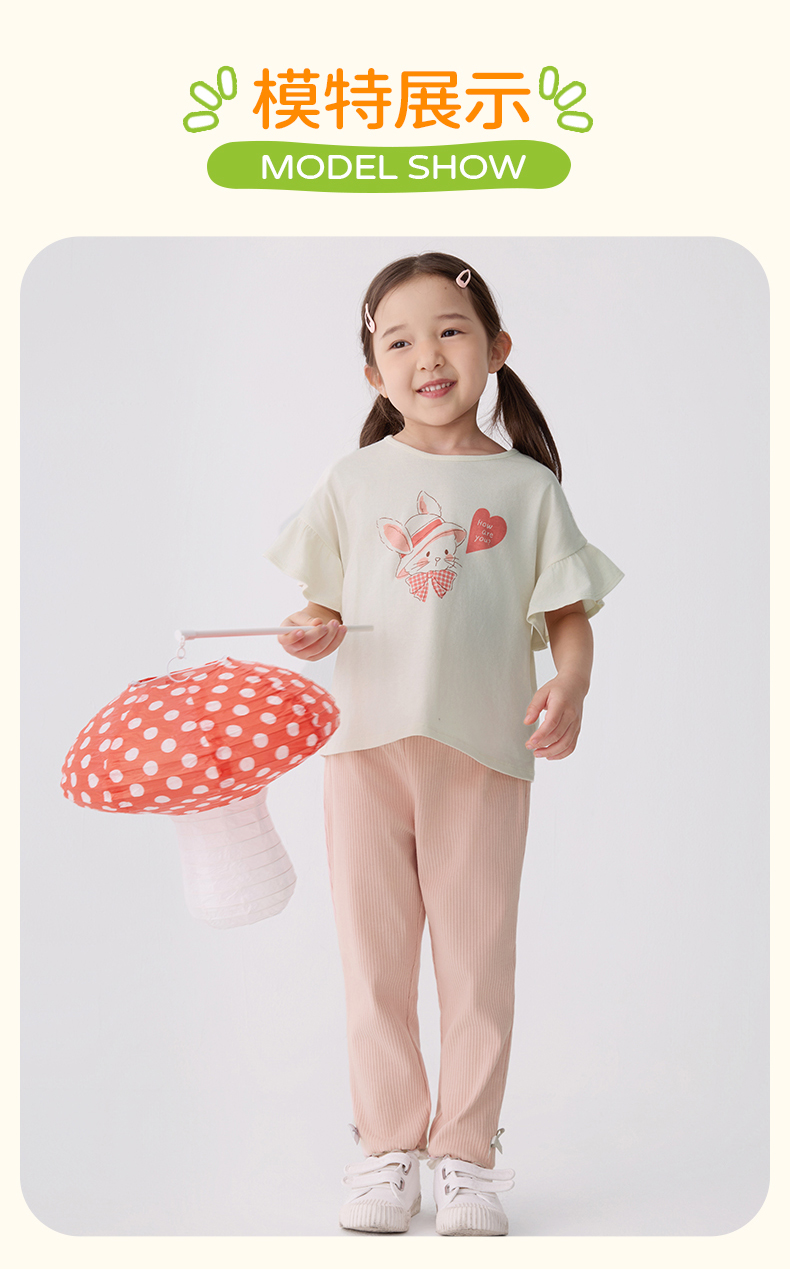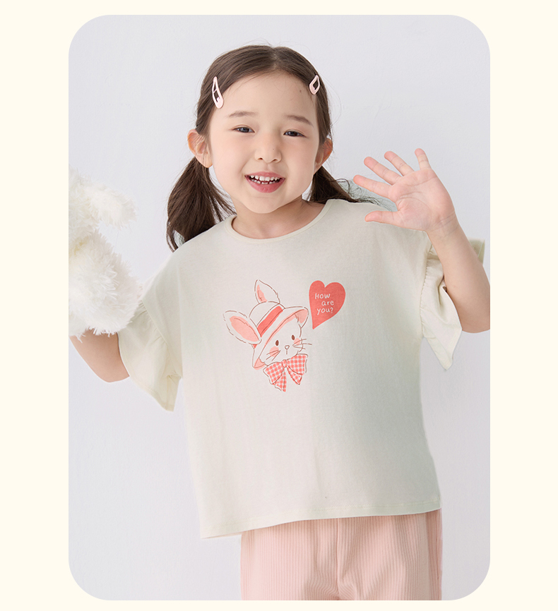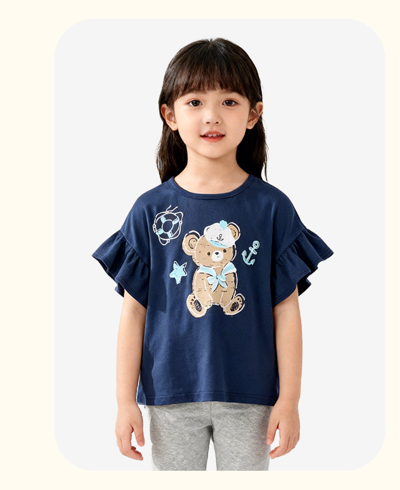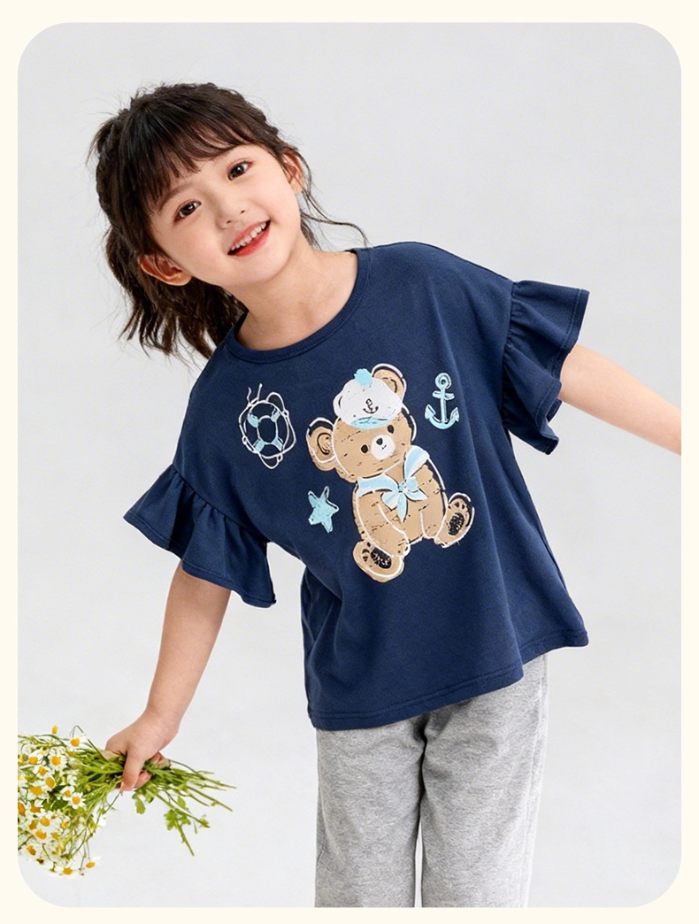 千趣会童装夏季女童清新可爱印花荷叶边袖轻薄棉质宽松短袖