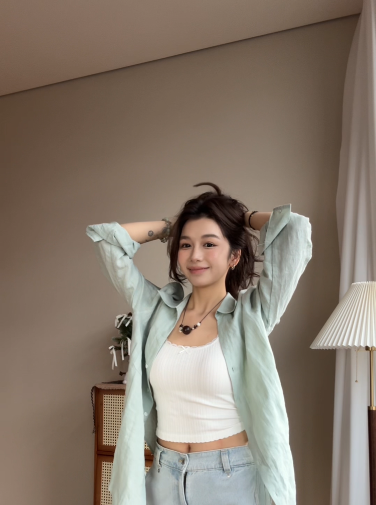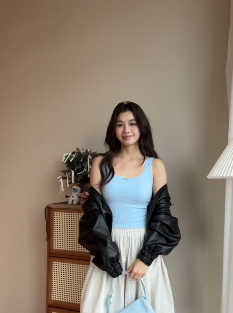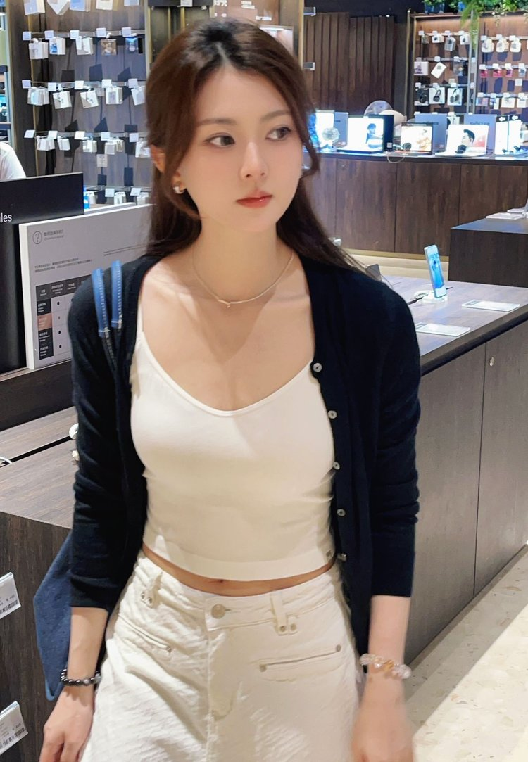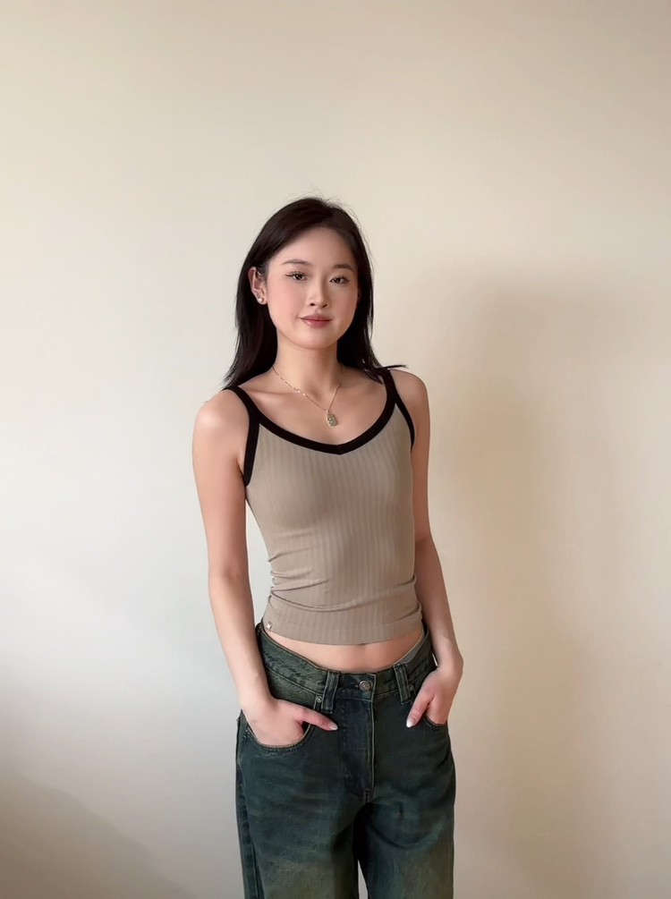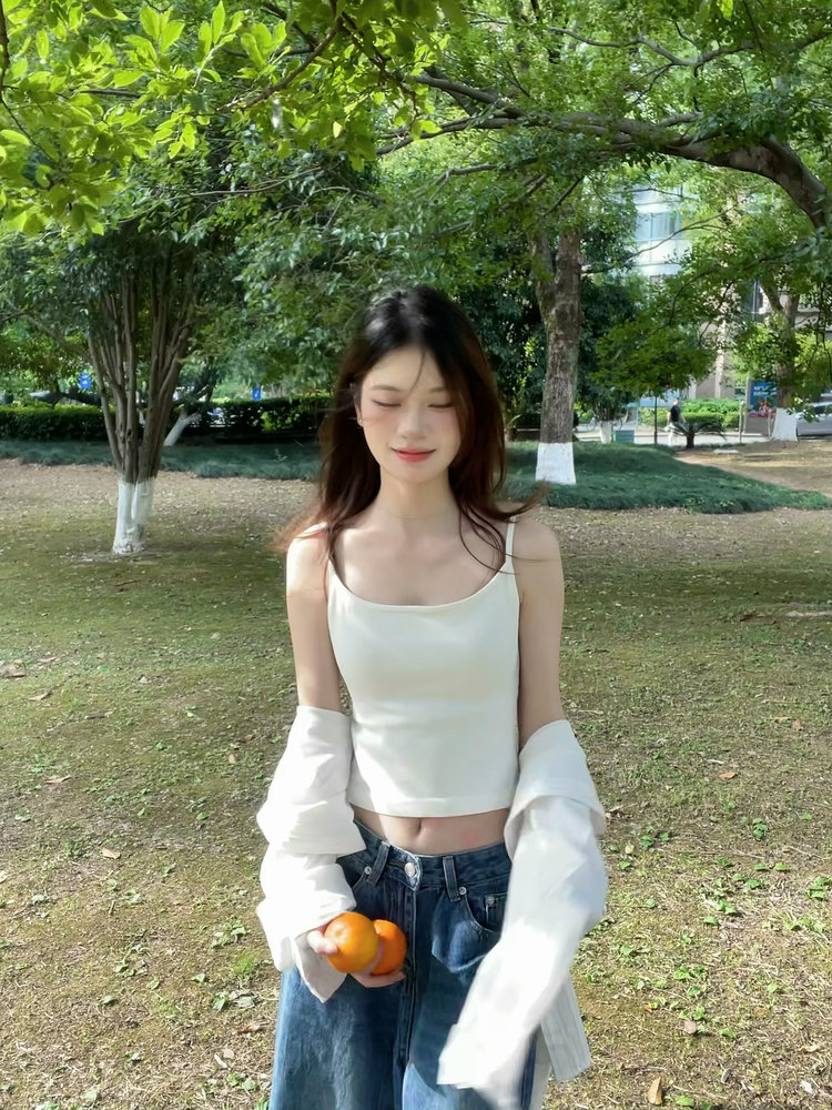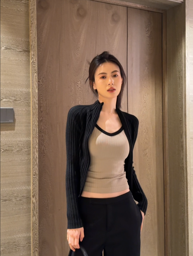 这款背心属于极简风格,百搭不挑人,秋天随便搭件小开衫就能很好看!
