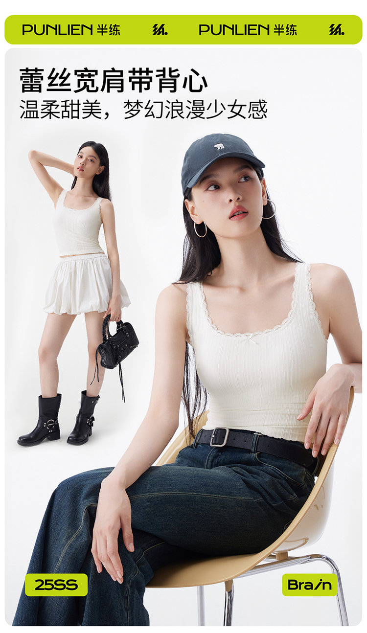 宽肩带设计搭配蕾丝,甜而不腻,适配各种风格!可休闲、可运动,可内搭、可单穿!四季可穿,实穿率超高😍