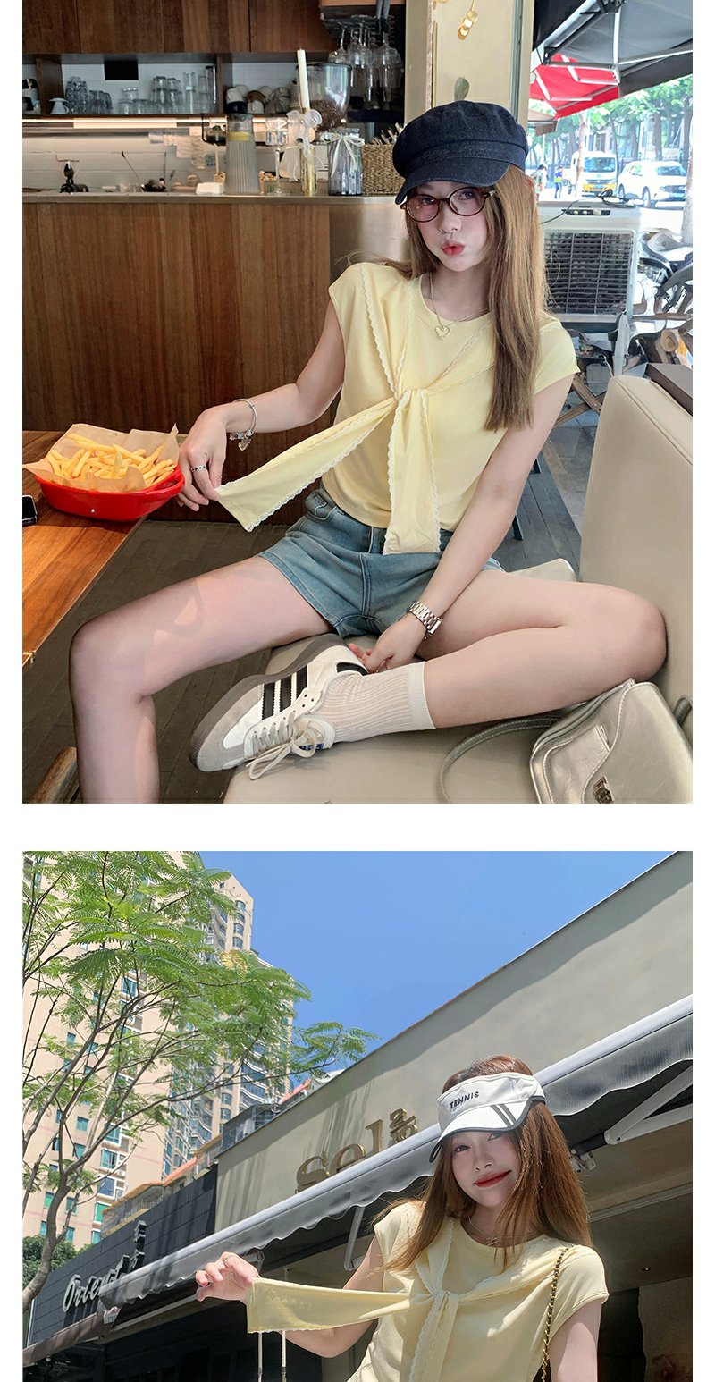 <曾小咸推荐>设计感假两件披肩拼接黄色T恤