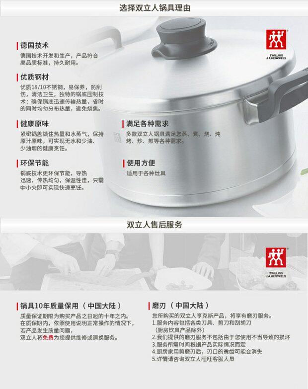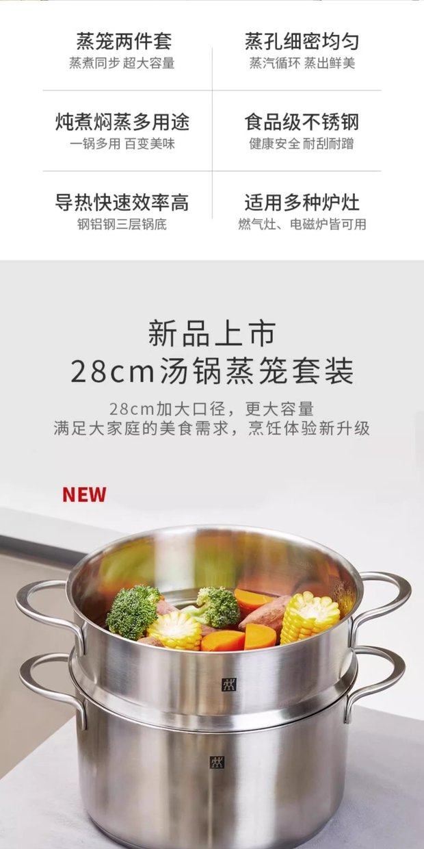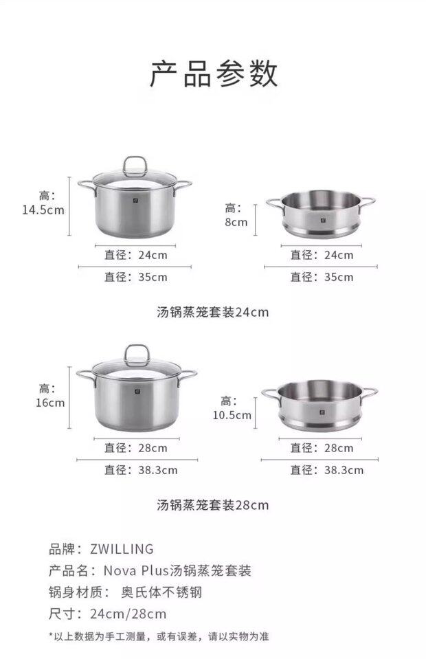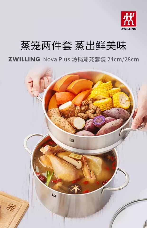 【德国双立人汤锅蒸锅】正品德国双立人Twin Nova III系列20cm/24cm/28CM不锈钢深汤锅官方质保