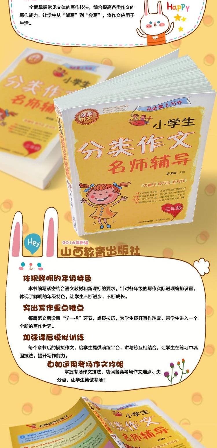 正版小学生分类作文三年级 名师辅导 写作技巧方法大全 范文示例 小学生同步作文满分分类作文大全 山西教育出版社出版