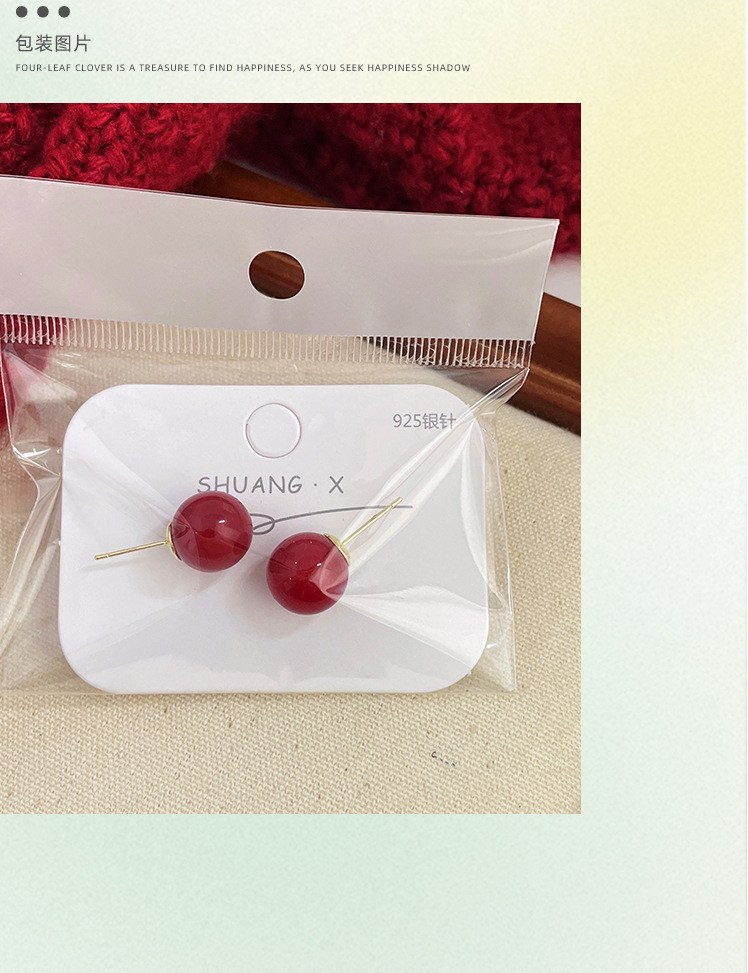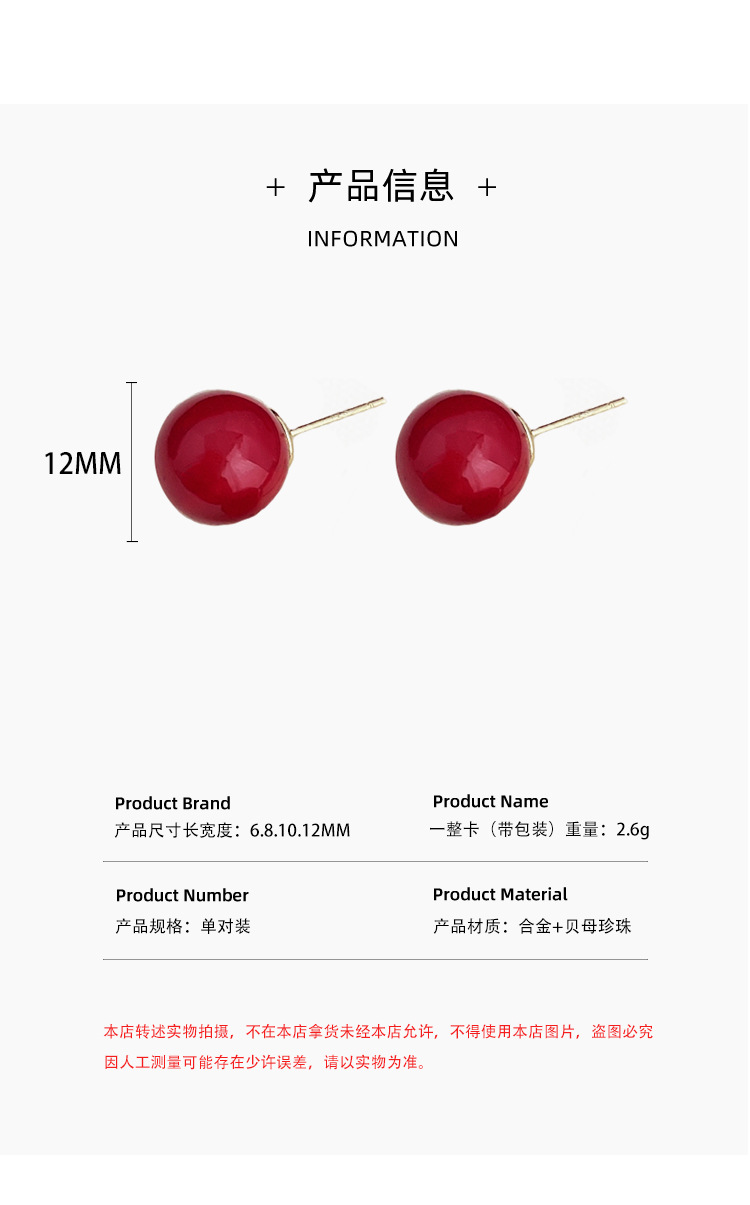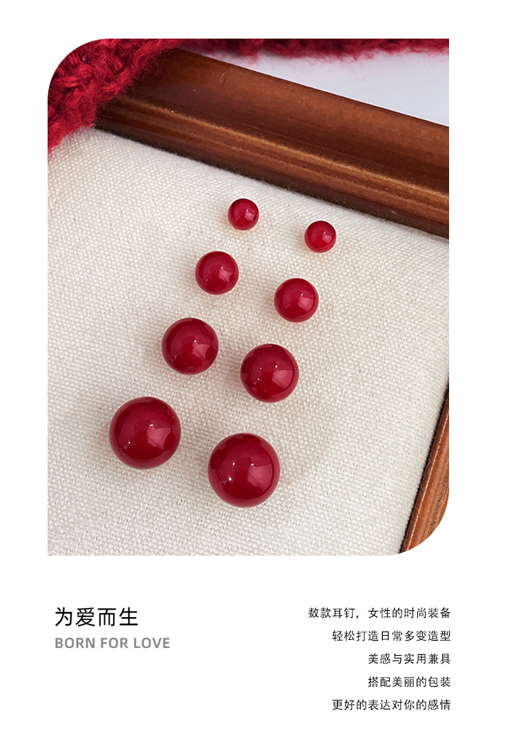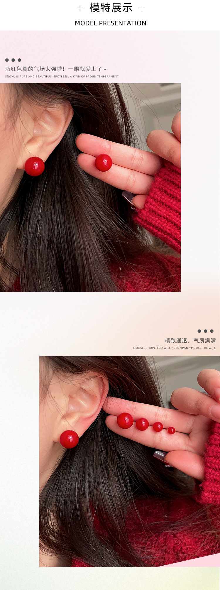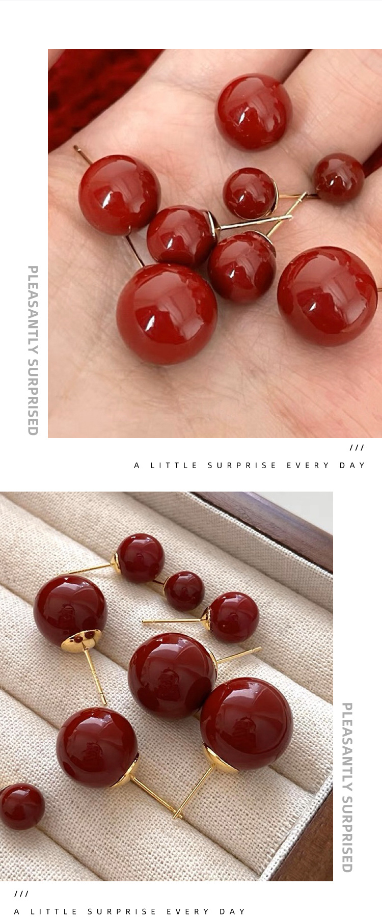925银针【经典复古 正圆红色珍珠耳钉】通勤百搭 适合过年耳饰 耳环女