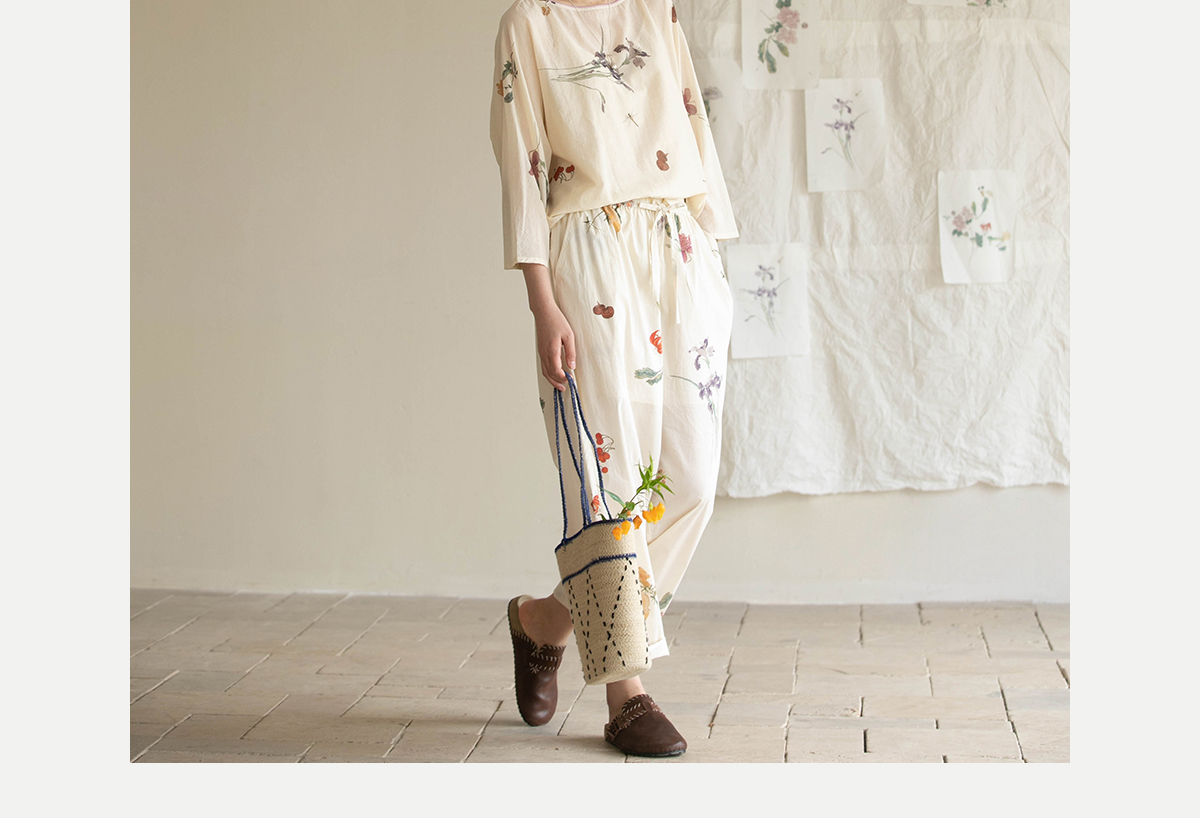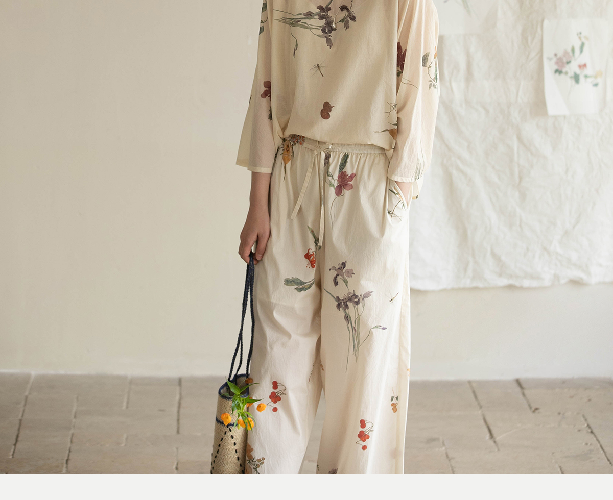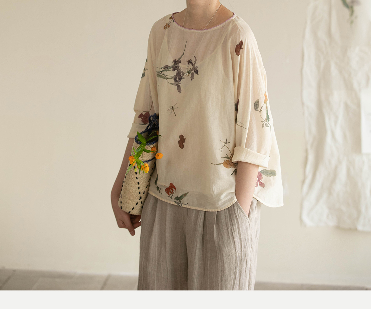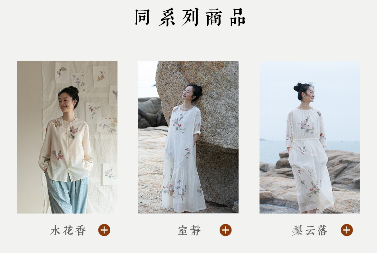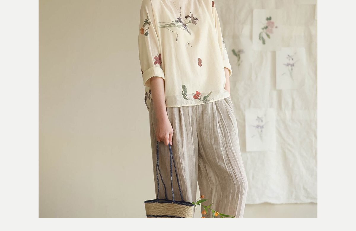 牧衣游原创 新疆棉印花套头衫轻薄国画七分袖圆领文艺上衣 清规