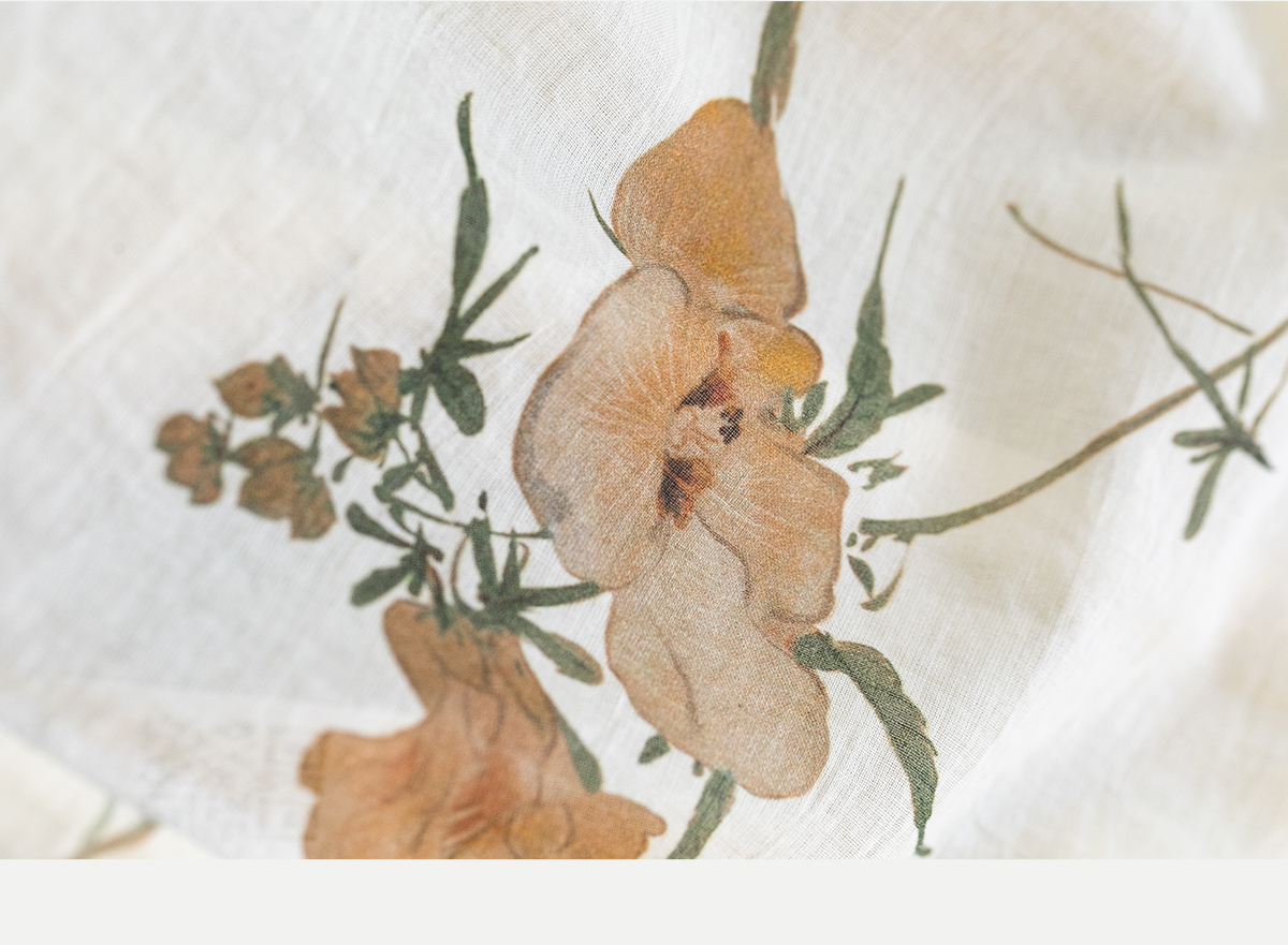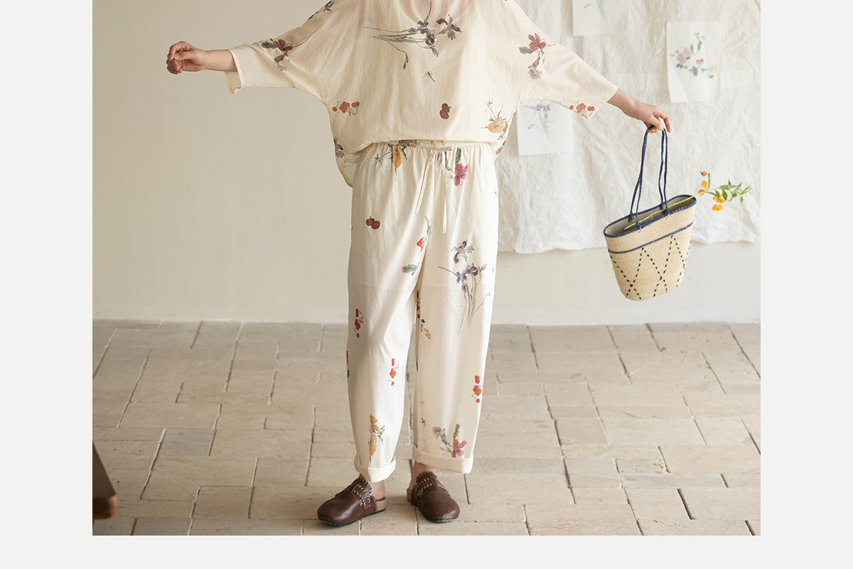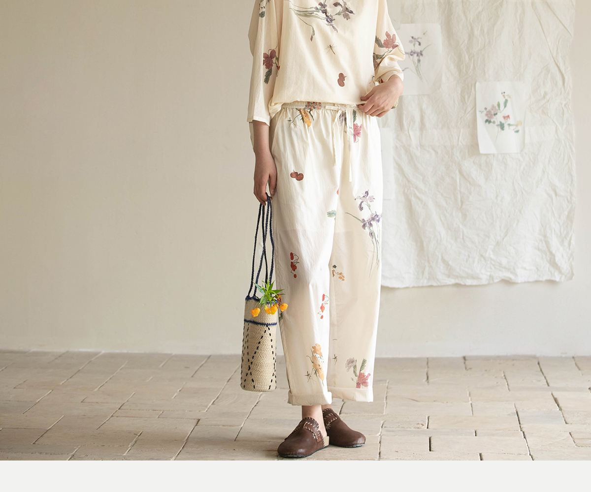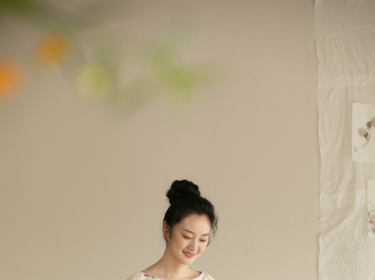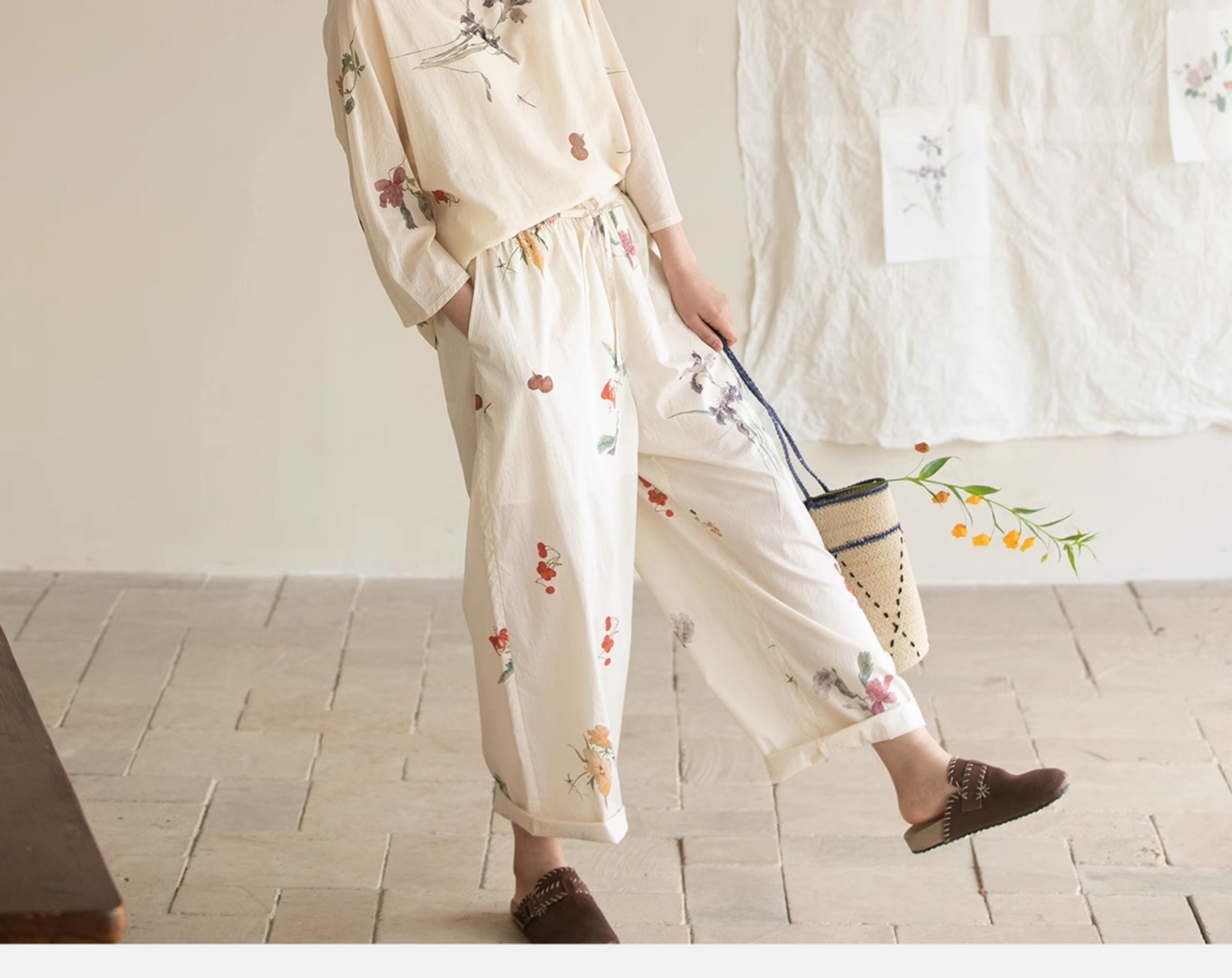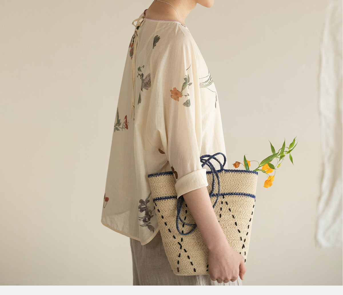 牧衣游原创 新疆棉印花套头衫轻薄国画七分袖圆领文艺上衣 清规