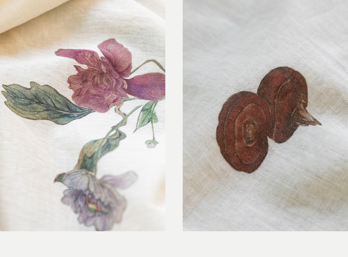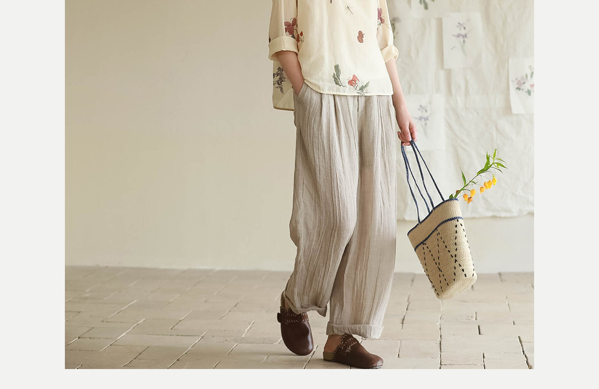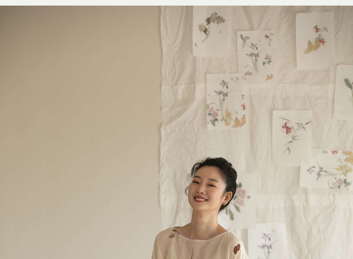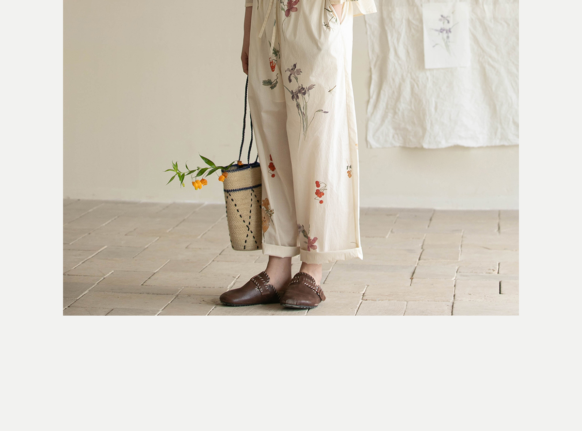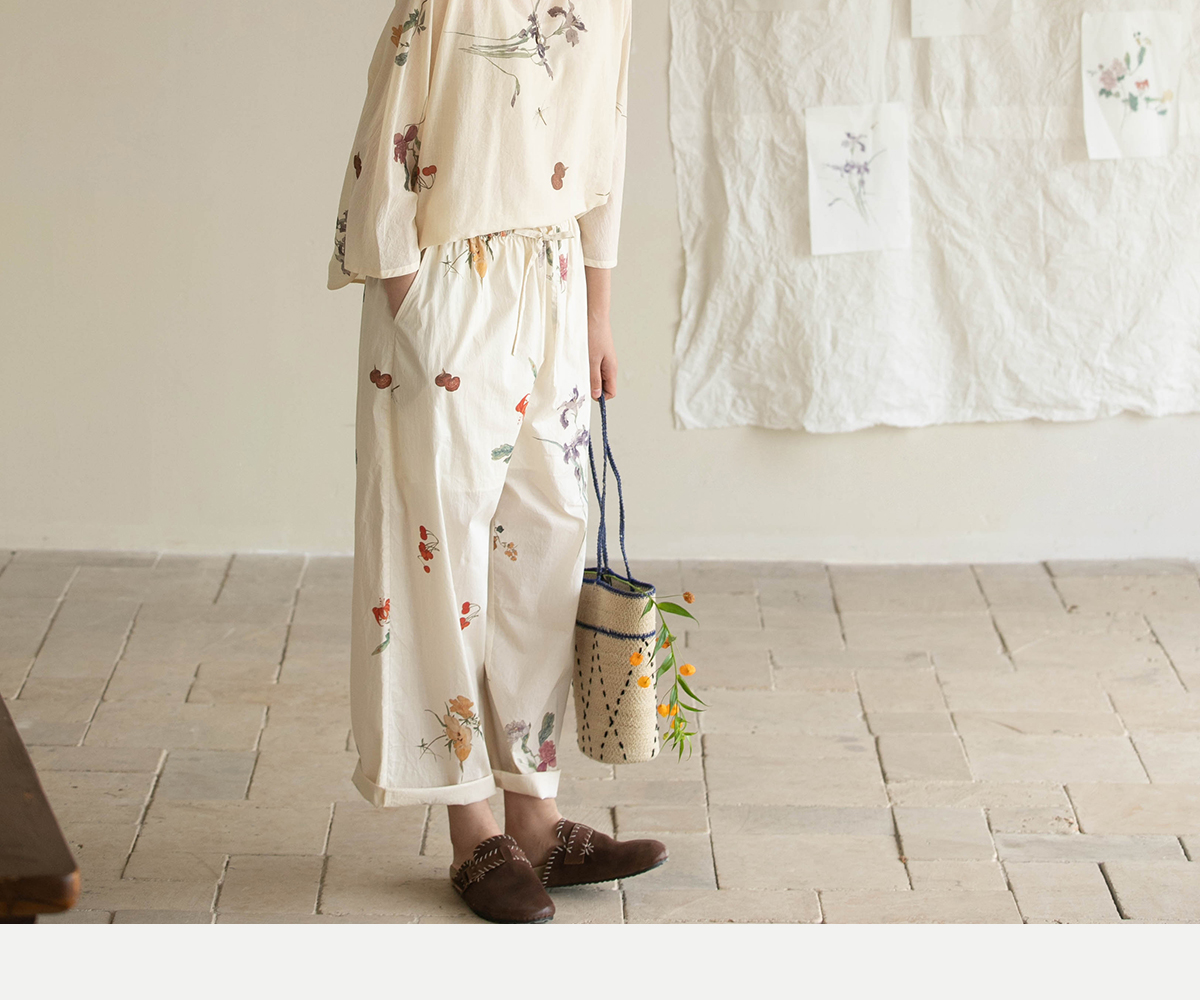 牧衣游原创 新疆棉印花套头衫轻薄国画七分袖圆领文艺上衣 清规