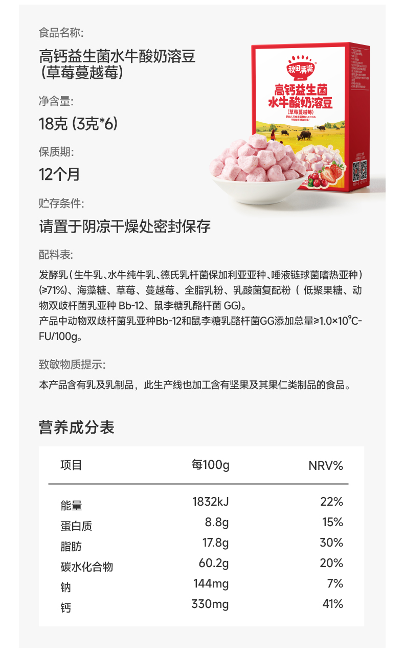 【99元任选10件送3件】【按单限购2件】更新迭代 高钙益生菌水牛酸奶溶豆18g(奶香原味/草莓蔓越莓/蓝莓树莓),叠加店铺满赠,不叠加店铺满减和会员折扣