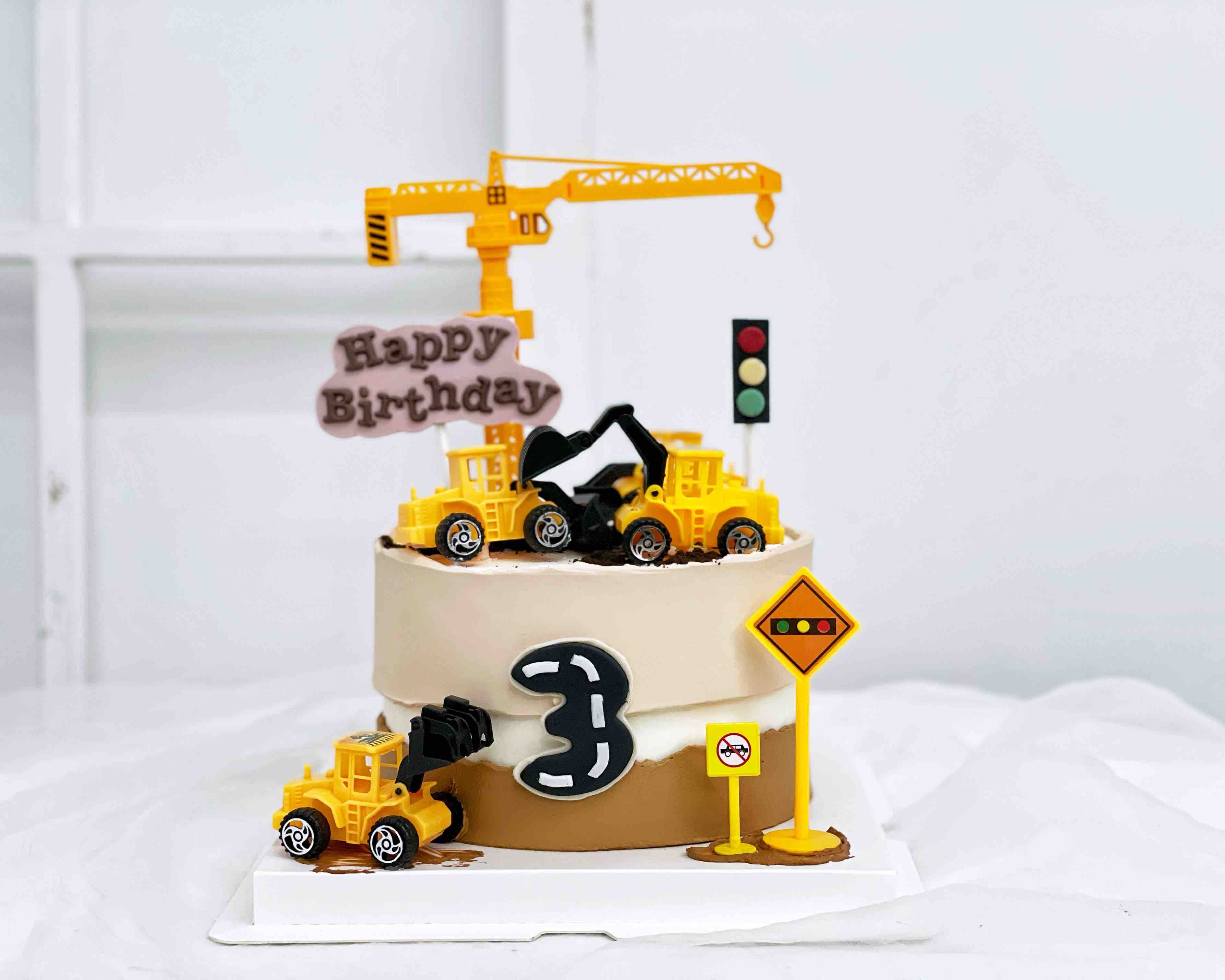 挖掘机吊车汽车周岁蛋糕 商品图0