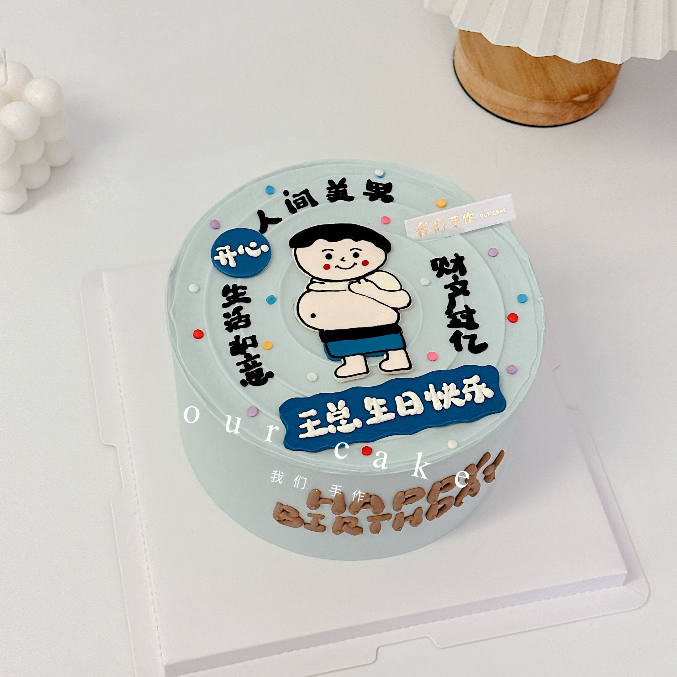 手绘大肚腩男士+祝福语蛋糕送爸爸送老公-低糖处理无添加