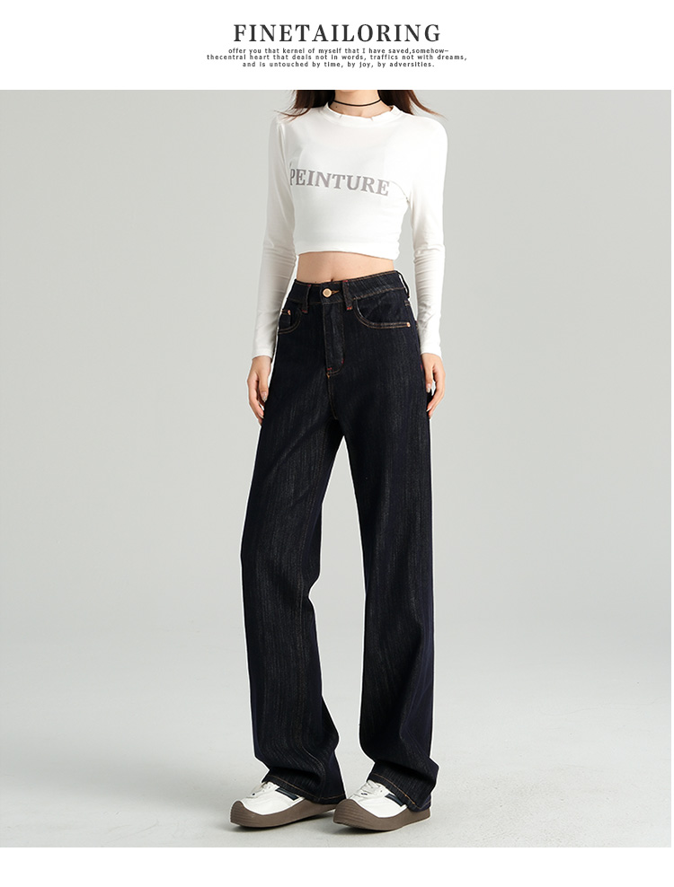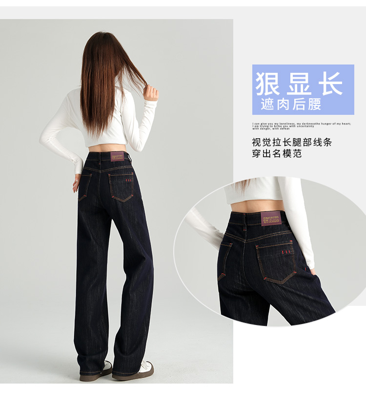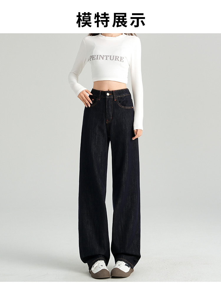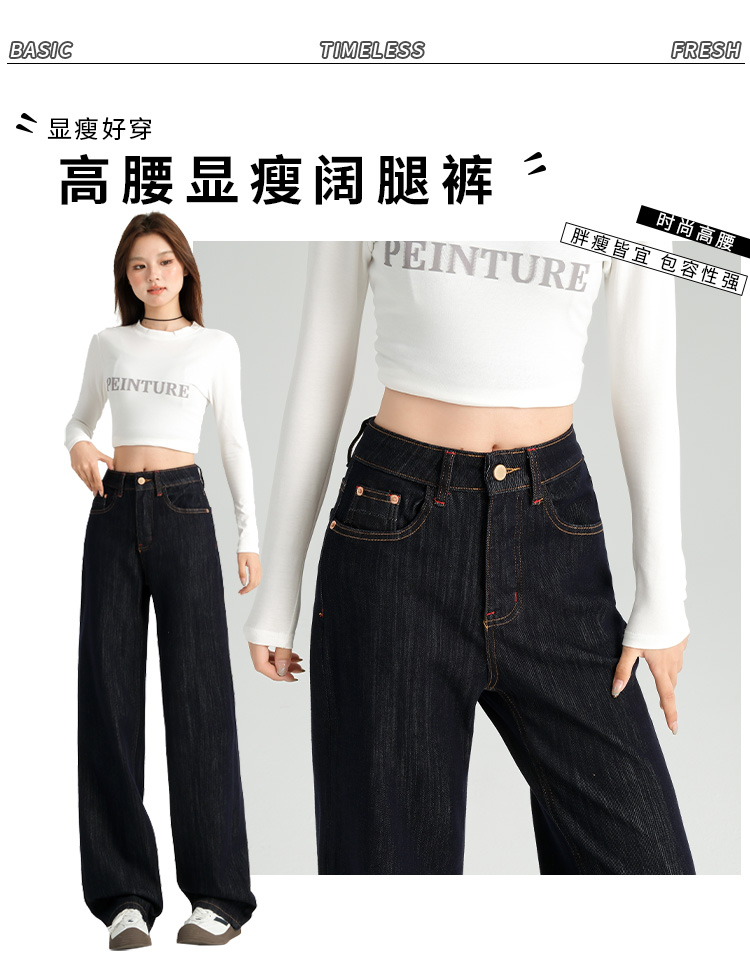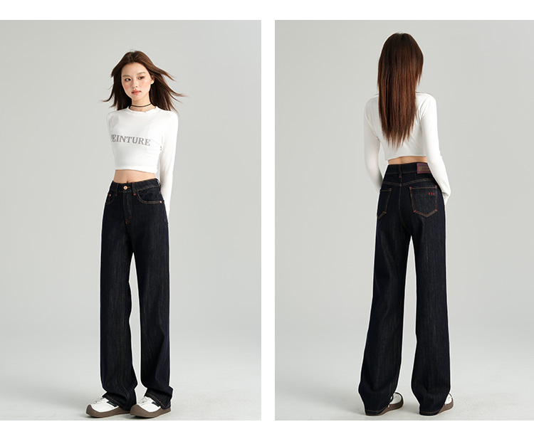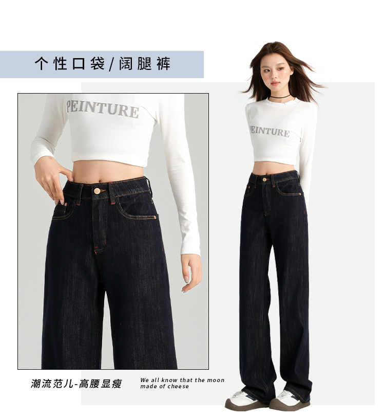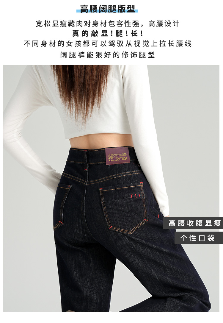 罗蒙女士四季款牛仔裤百搭休闲通勤高腰显瘦阔腿牛仔长裤舒适好穿