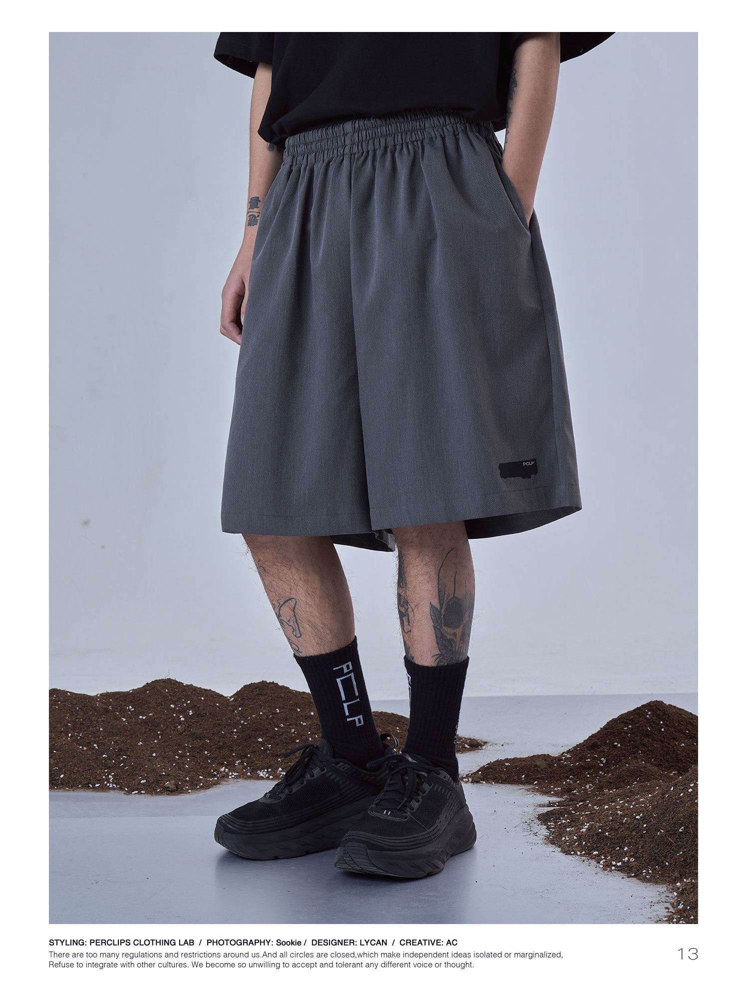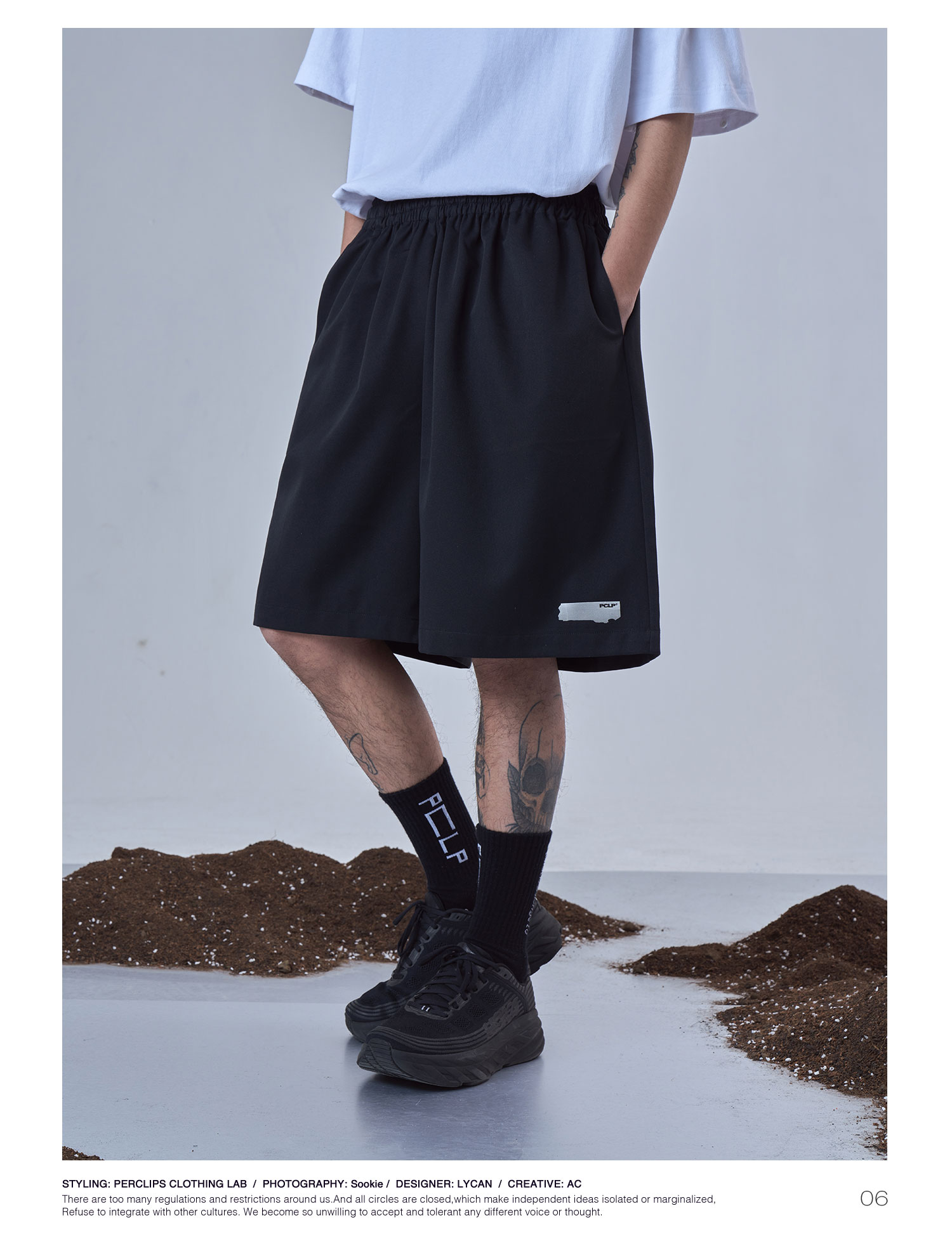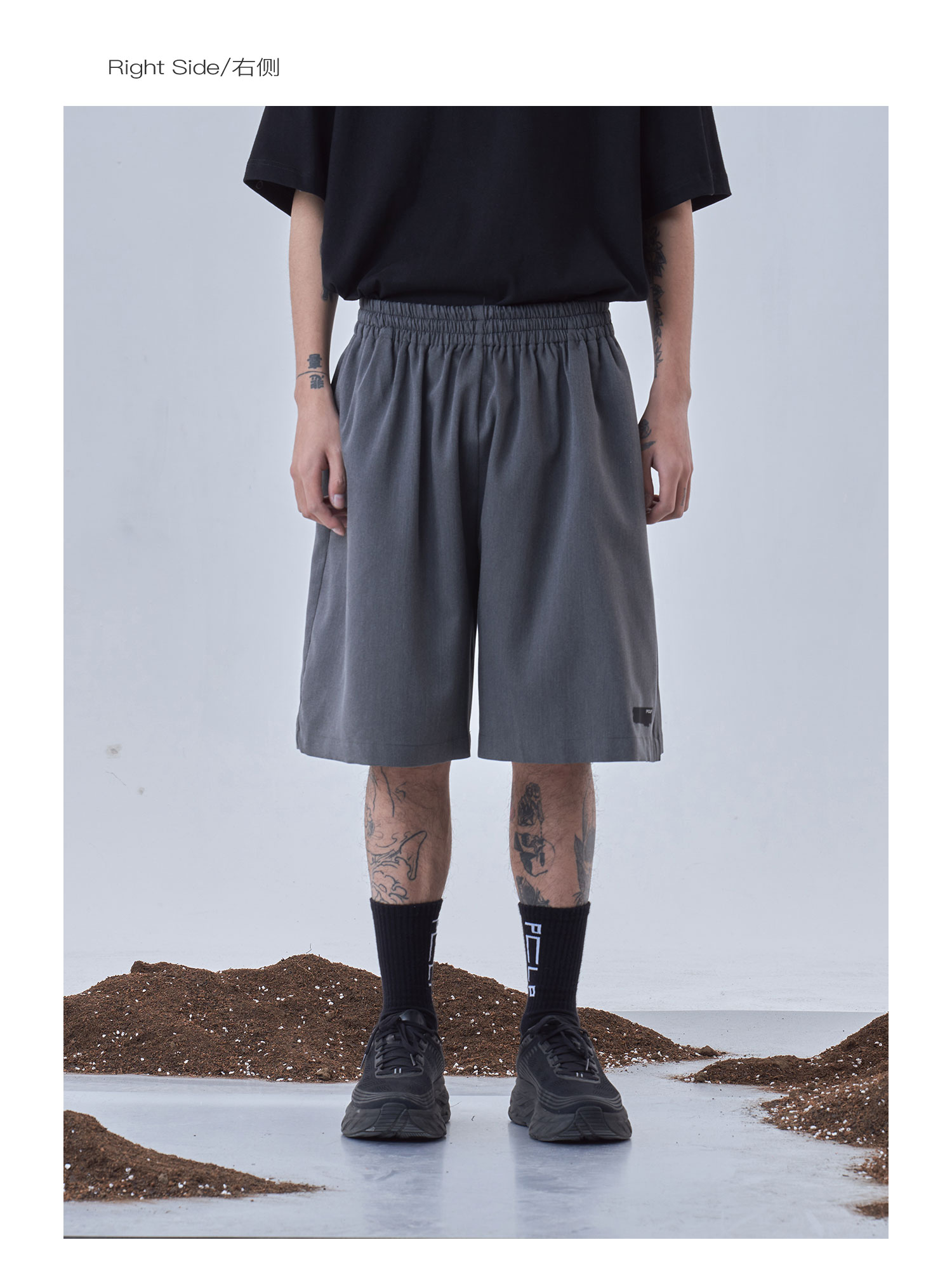 PCLP(PERCLIPS)夏季黑色西装短裤男国潮牌潮流宽松休闲薄款五分裤