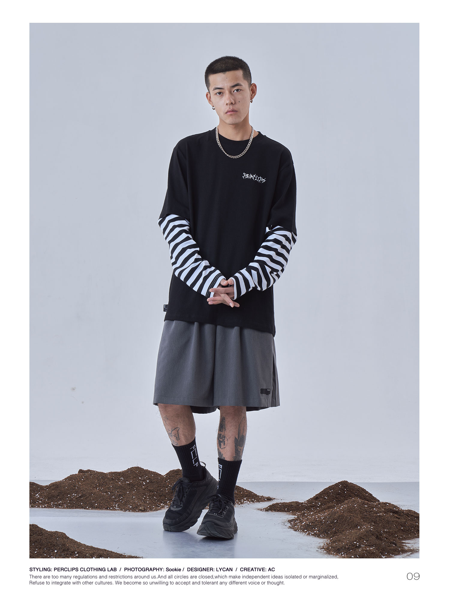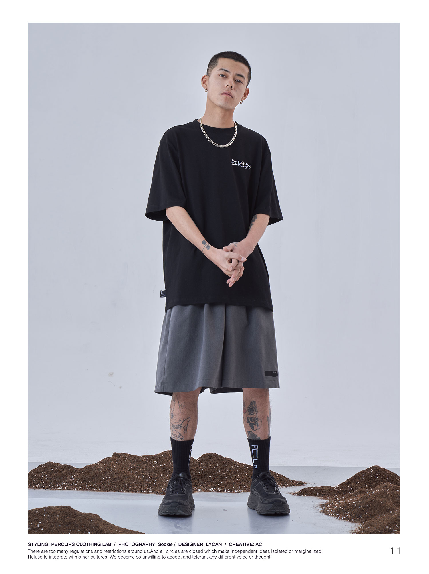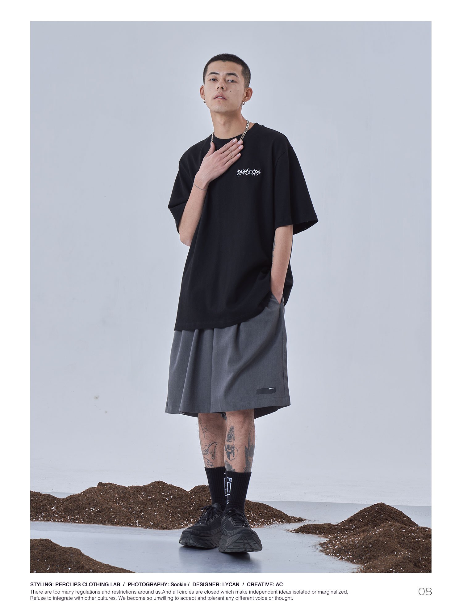 PCLP(PERCLIPS)夏季黑色西装短裤男国潮牌潮流宽松休闲薄款五分裤