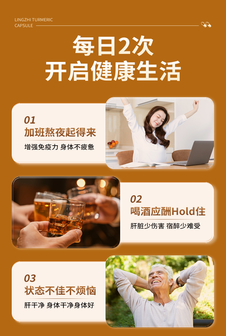 华喜达中和鸿业牌灵芝姜黄胶囊辅助保护化学性肝损伤增强免疫力