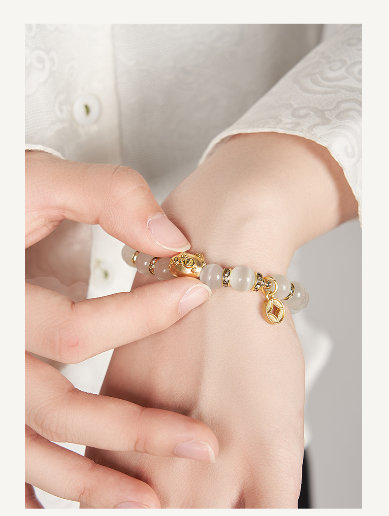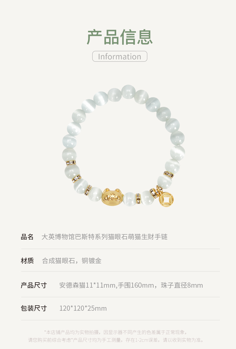 大英博物馆 巴斯特系列 猫眼石萌猫生财 手链