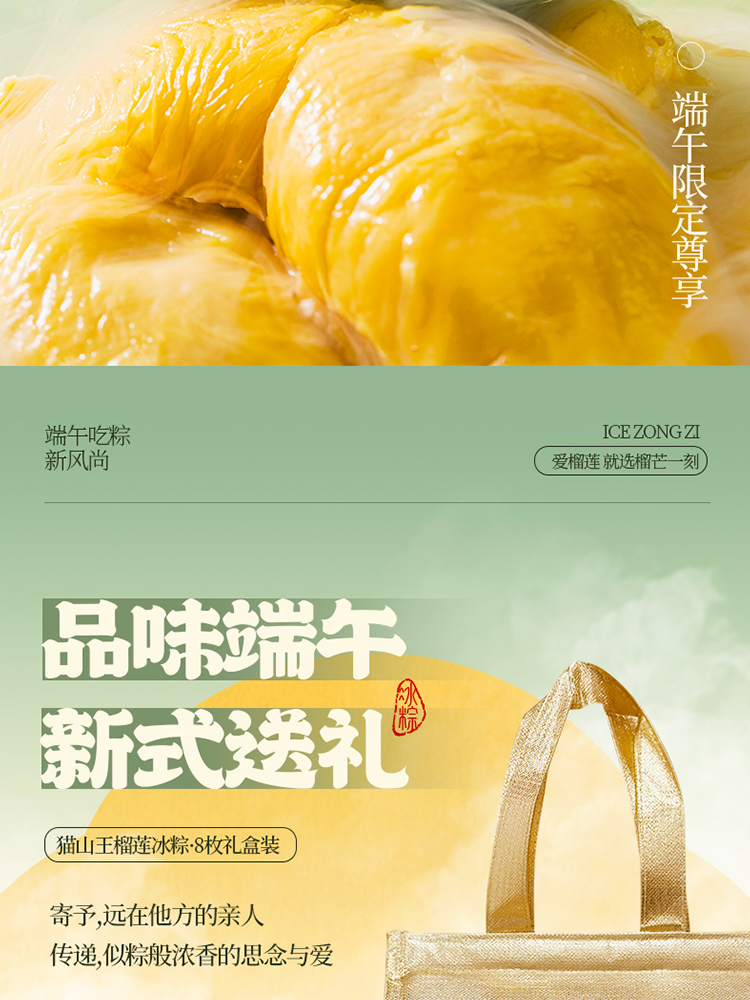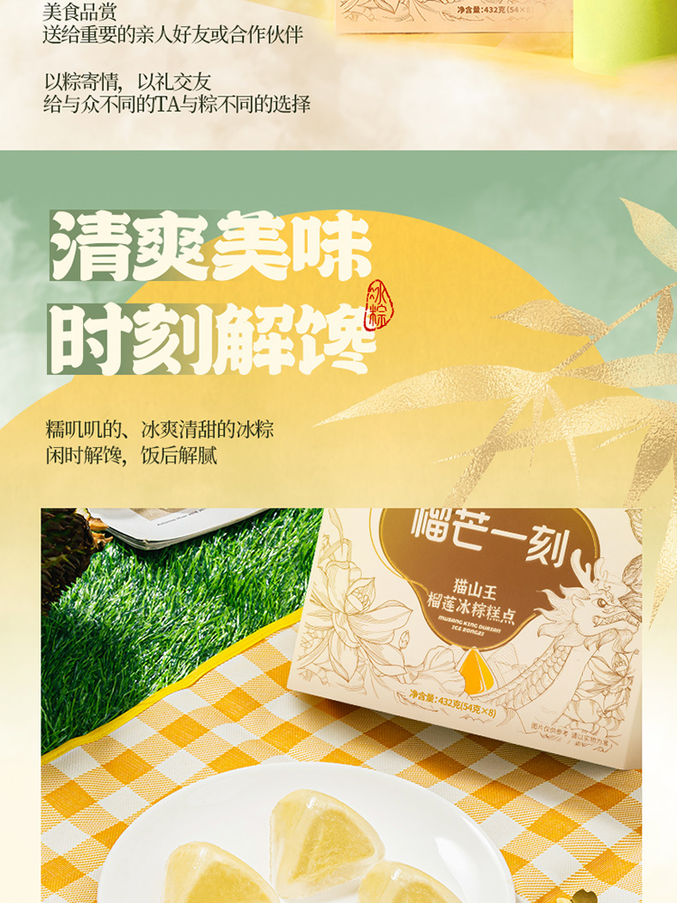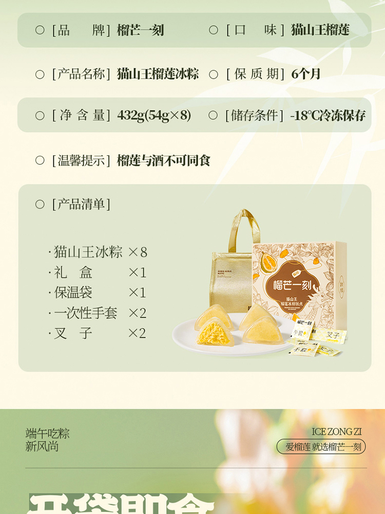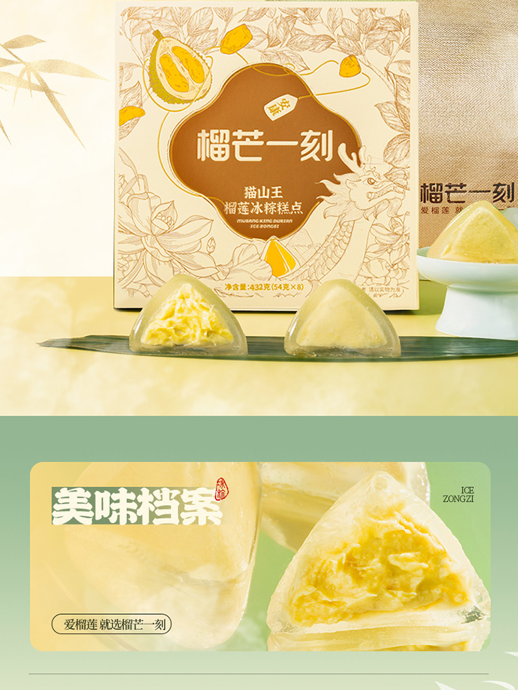 【粽子】榴芒一刻-猫山王冰粽纸盒装(54g*8枚装)