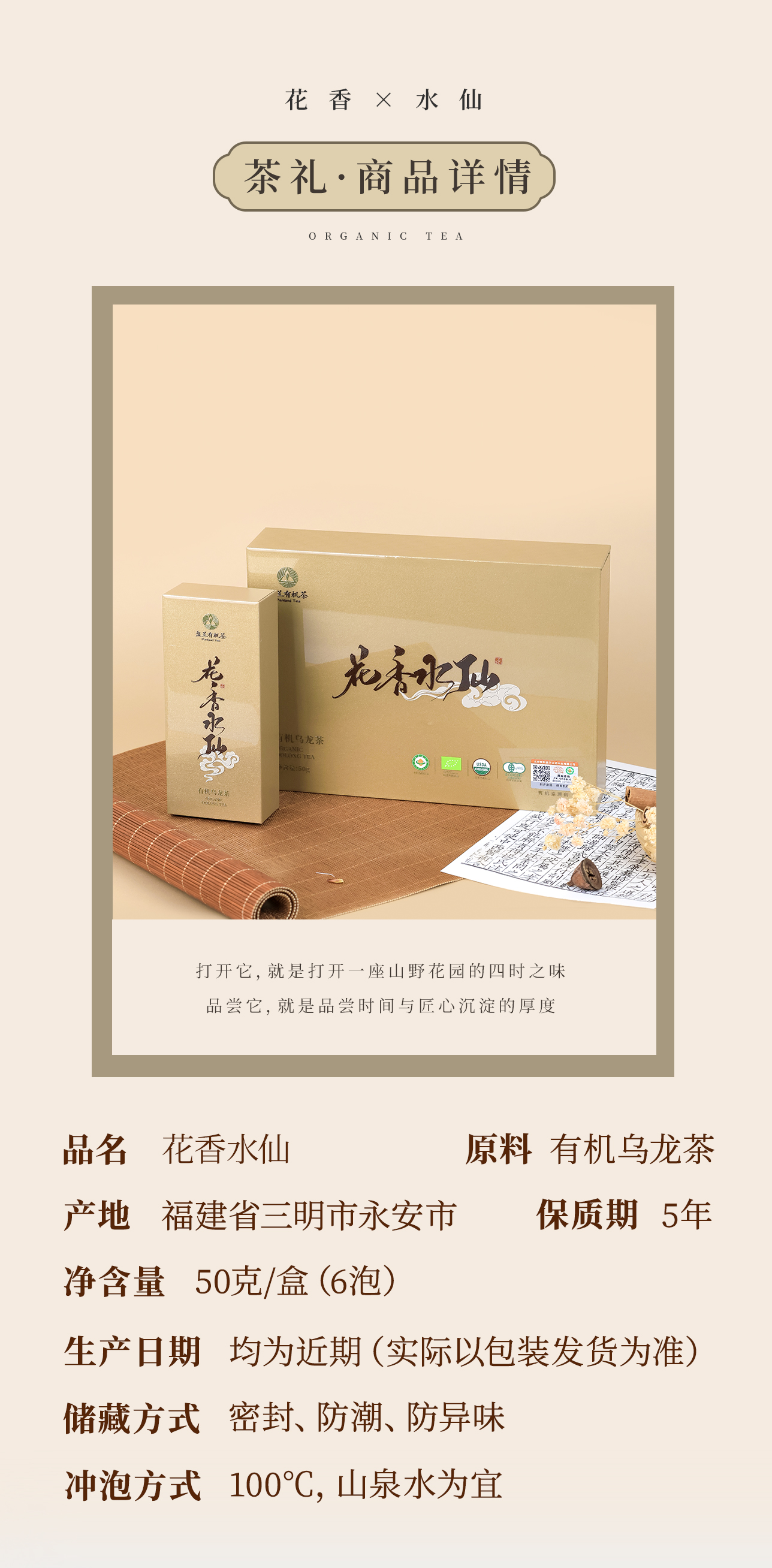 高山有机乌龙茶 岩茶 花香水仙 小份精致礼盒装 50克 6泡/盒
