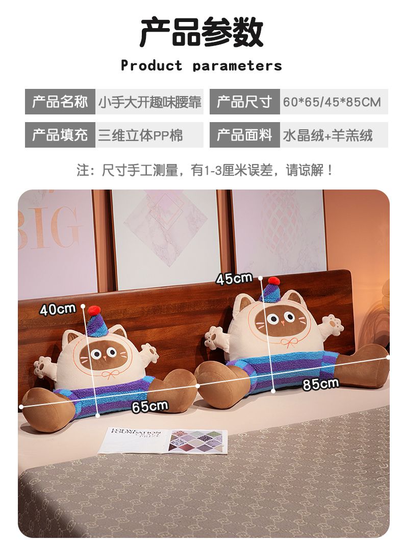 自然醒小手大开趣味拥抱式床头腰靠床头软包大靠背枕头午睡久坐ins抱枕可拆洗QYL