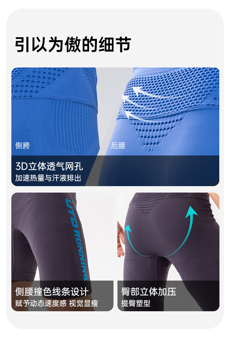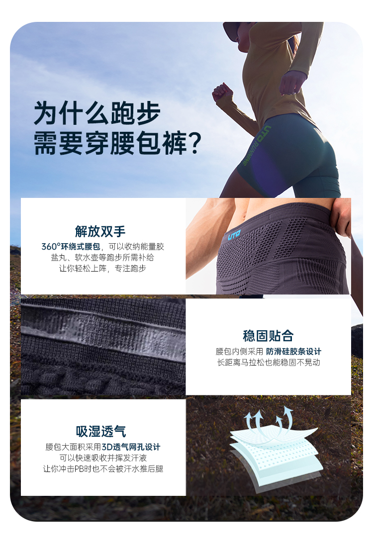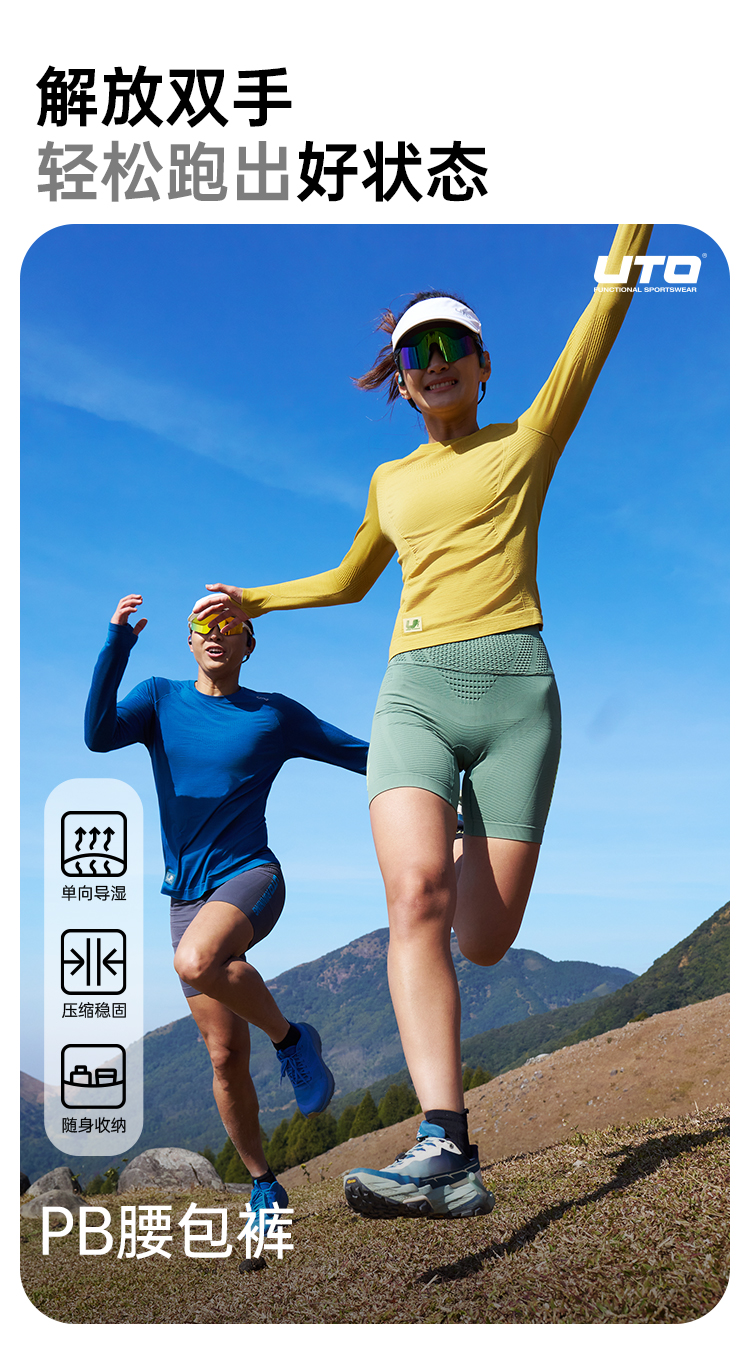 悠途腰包压缩四分裤春夏男女户外运动越野跑步吸汗速干运动裤