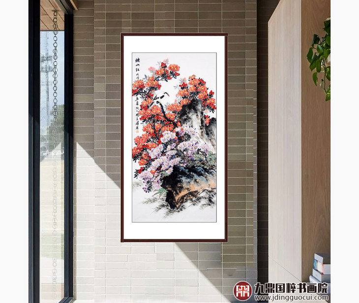 杨秀泽《映山红》68*138cm 花鸟竖幅作品 玄关/卧室挂画
