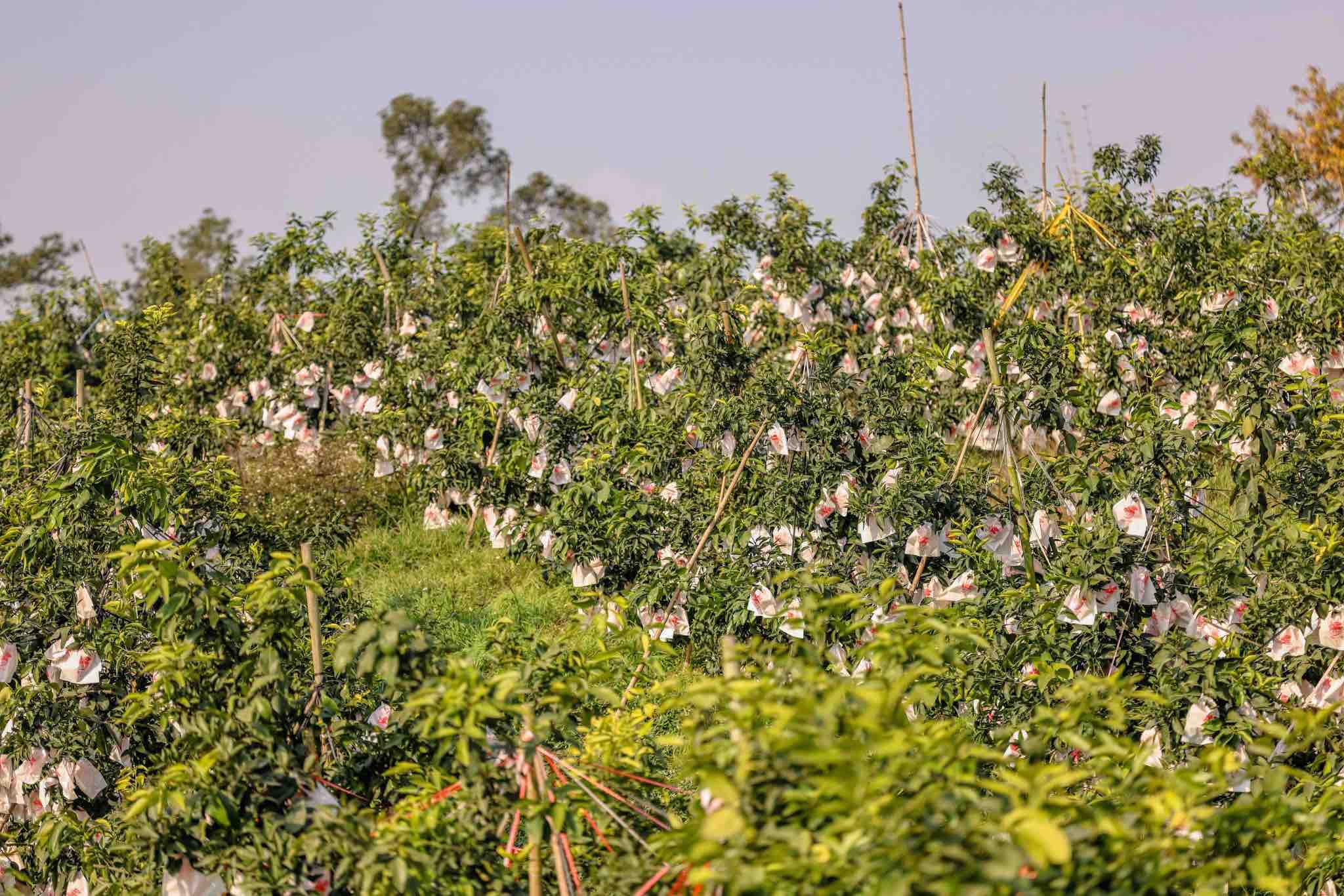 套袋红美人由枳壳头嫁接,成熟相对红橘香橙成熟更早,操作难度大,挂果少产量低,个头偏小,但是它的果肉更细腻,皮更薄,风味更浓郁,我们的发货标准甜度。