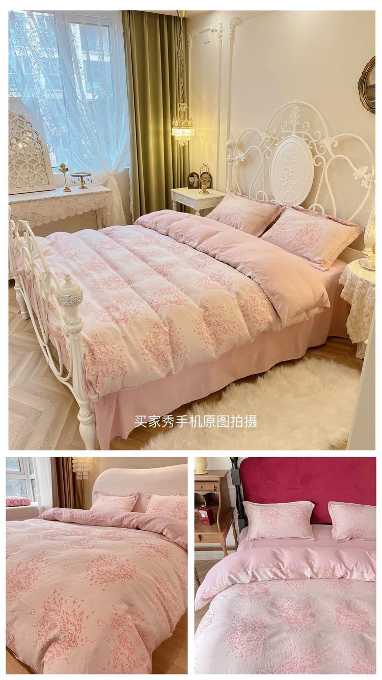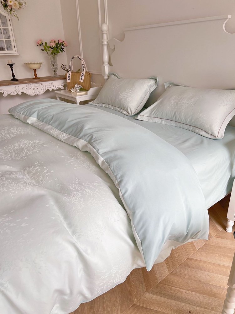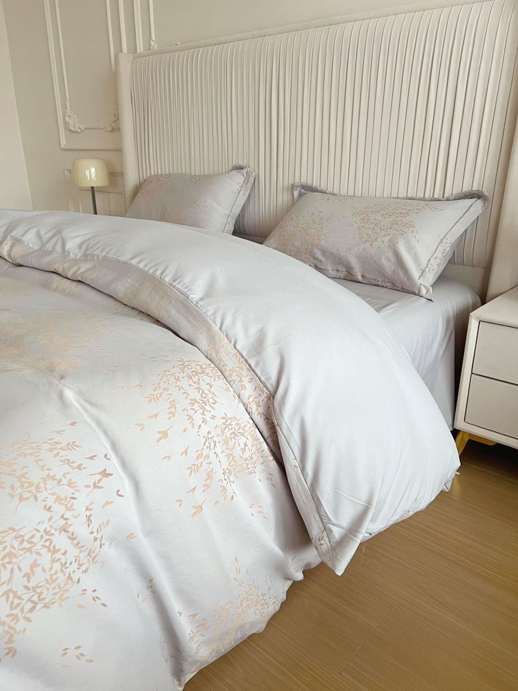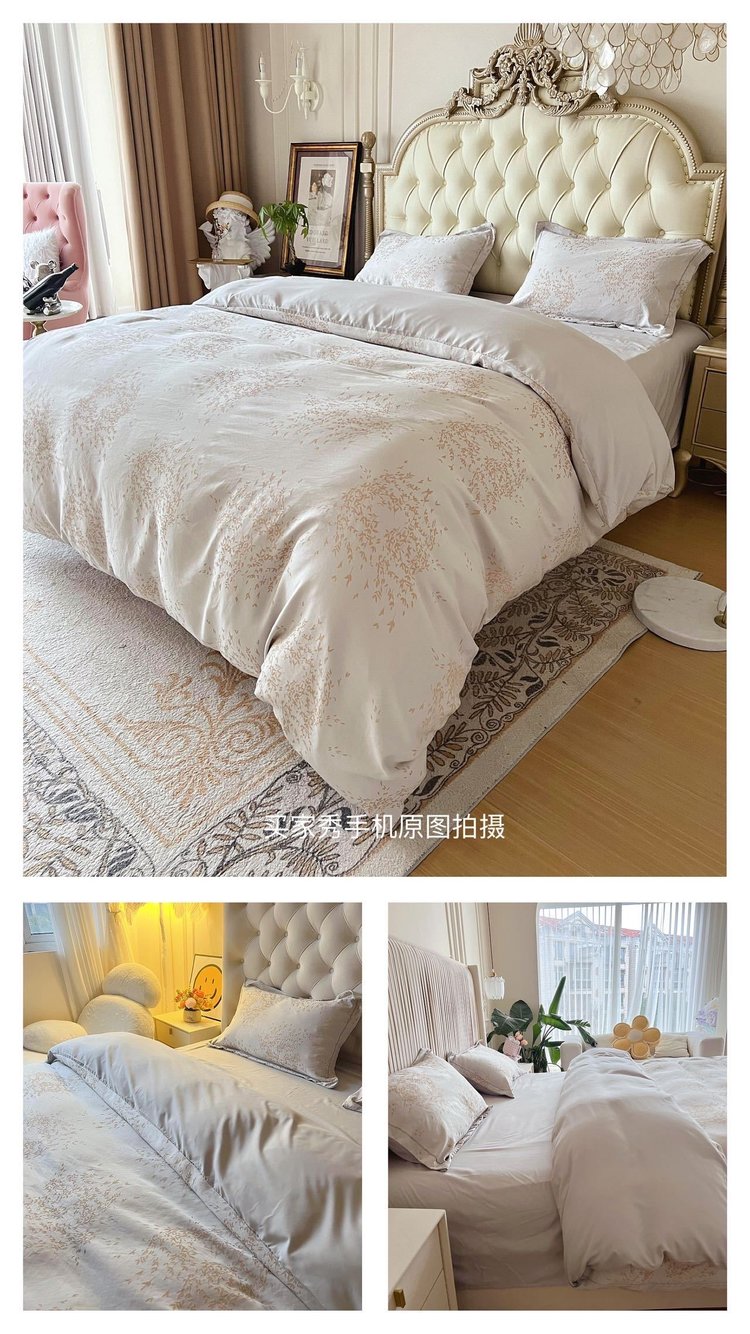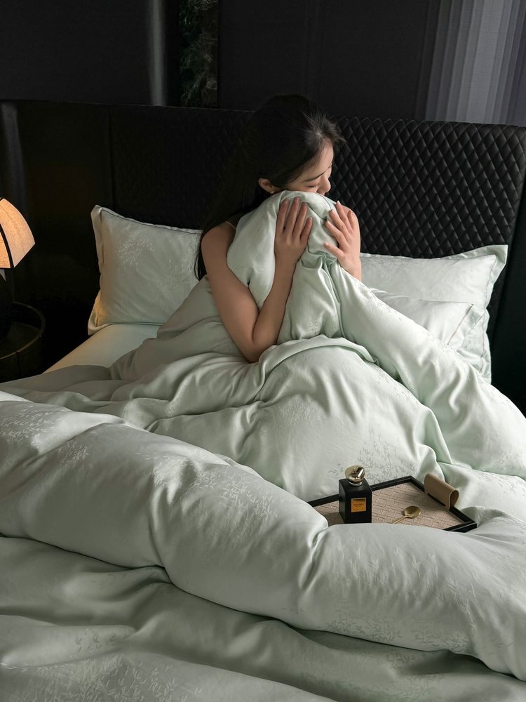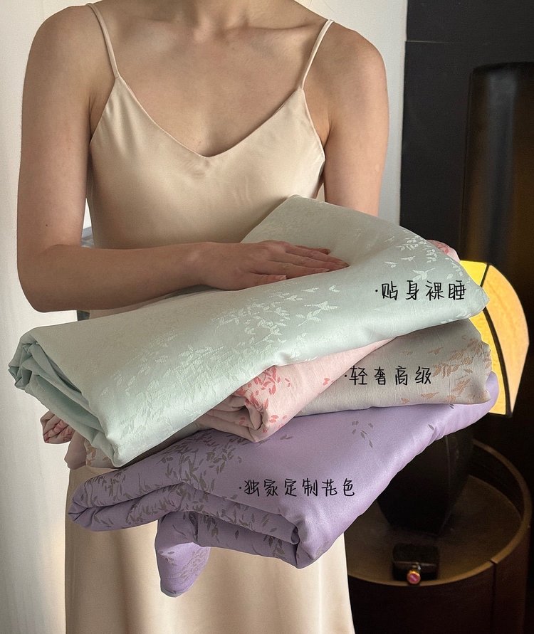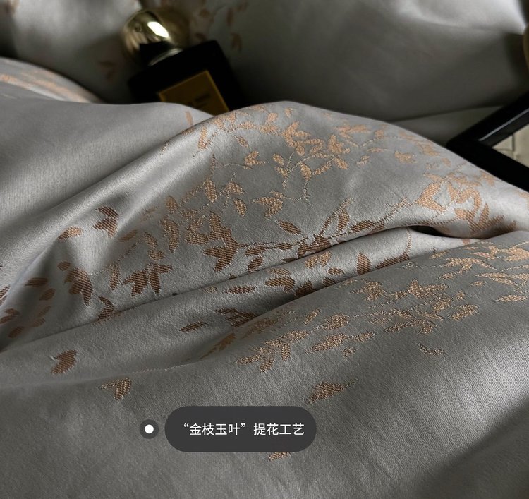笙观相沐 天丝金枝玉叶四件套 ,面料高支高密 柔韧亮泽手感宛如珍珠般顺滑垂坠 雅致柔和