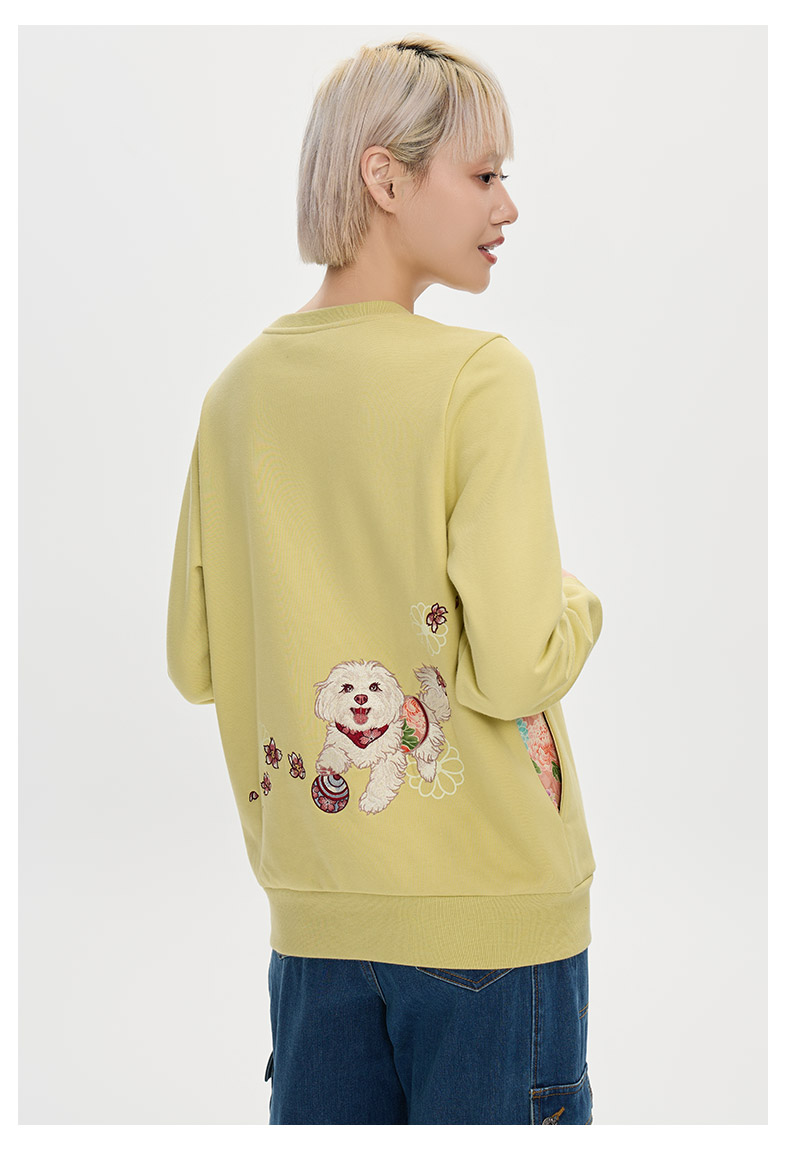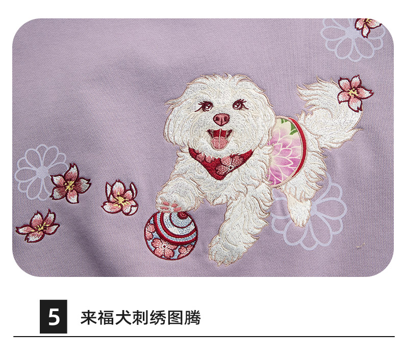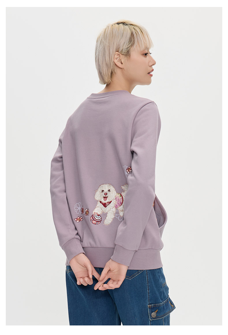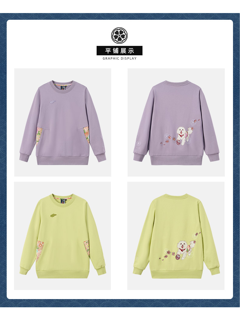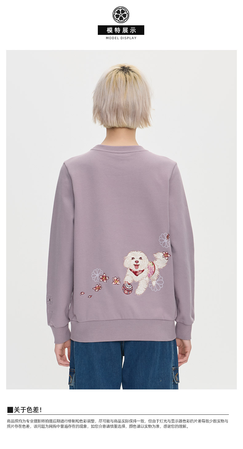 ONIARAI/鬼洗25秋冬泥棒蓝女款来福犬刺绣花布拼接卫衣 25NOB55