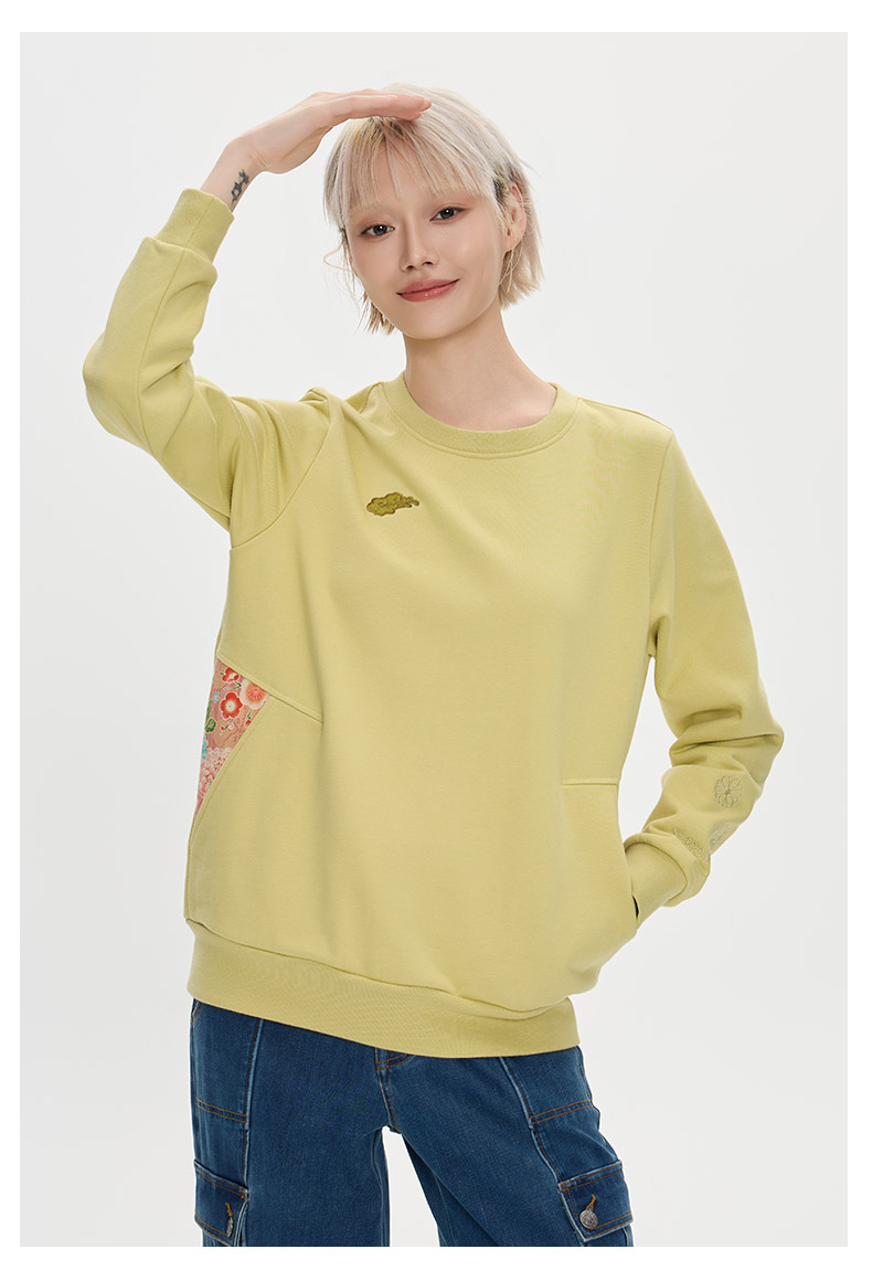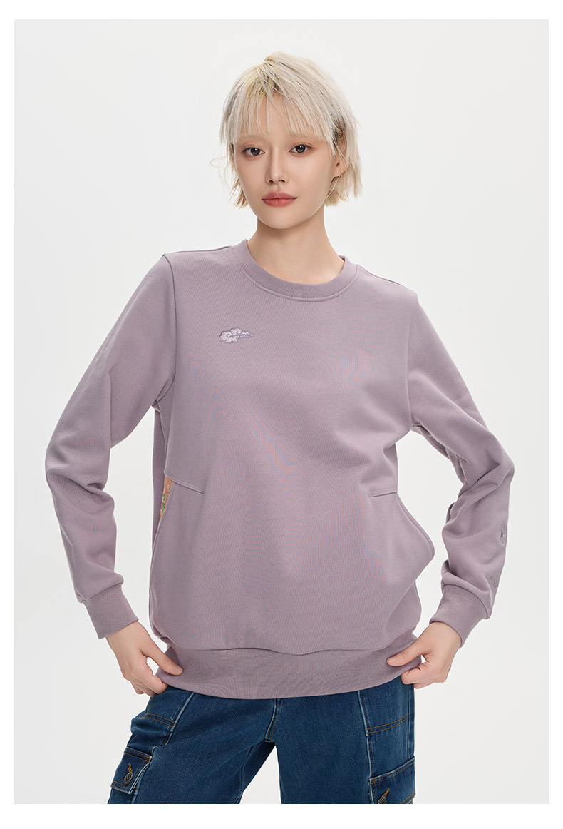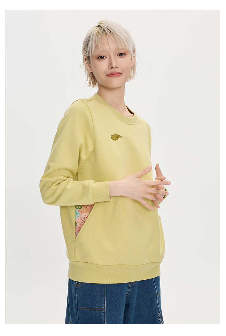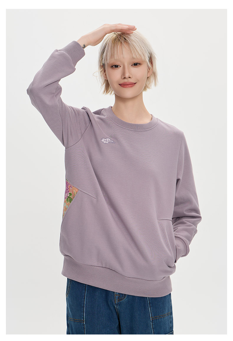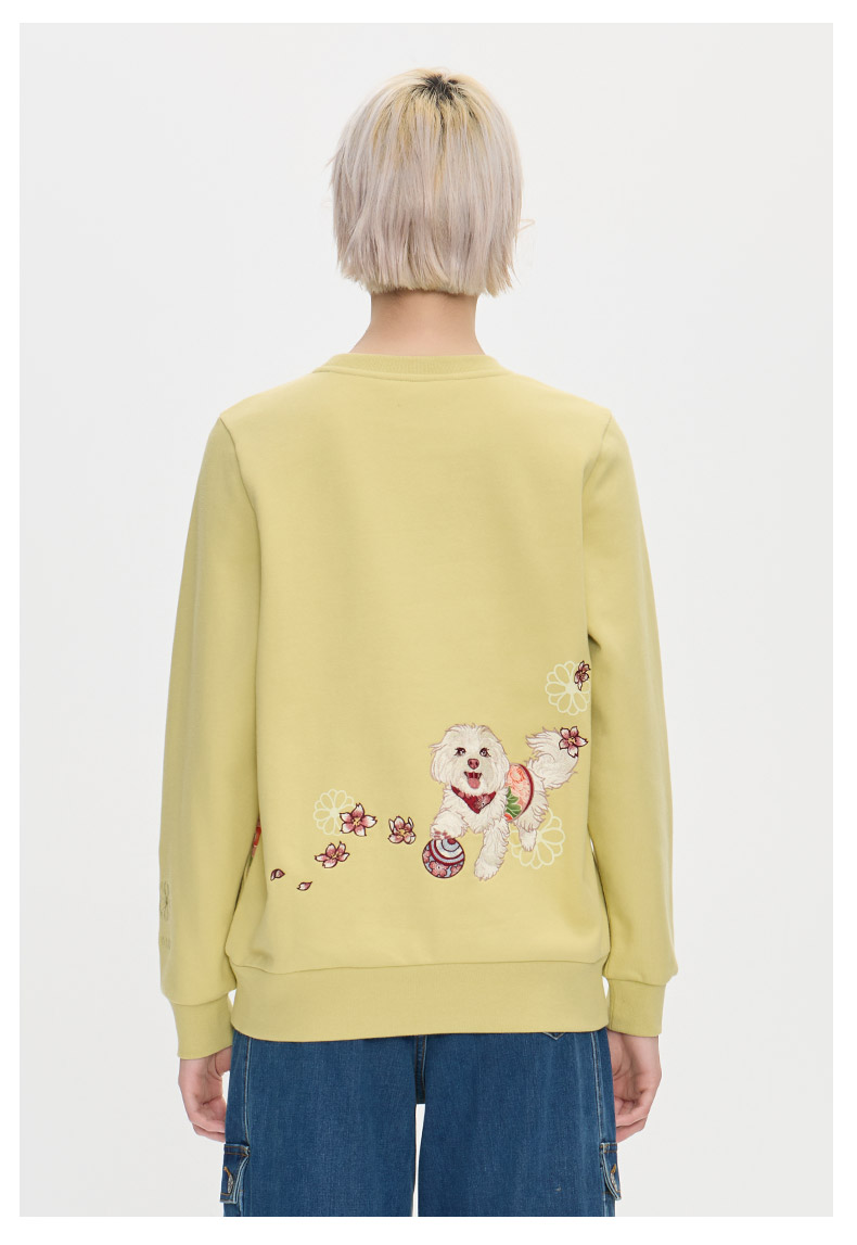 ONIARAI/鬼洗25秋冬泥棒蓝女款来福犬刺绣花布拼接卫衣 25NOB55