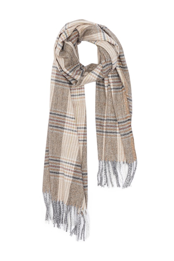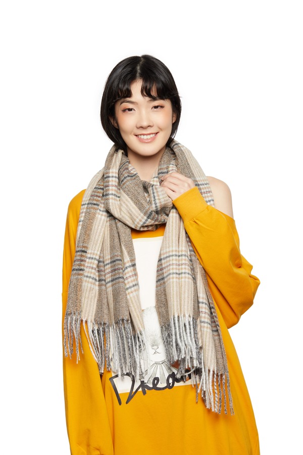 SUMMER & SAGE 拼色格纹仿羊绒流苏围巾 5632
