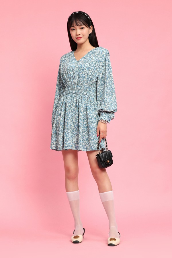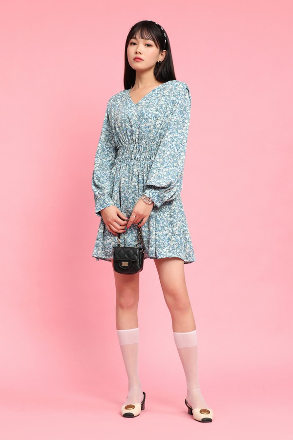 L.Fleuri V领碎花收腰连衣裙 11736