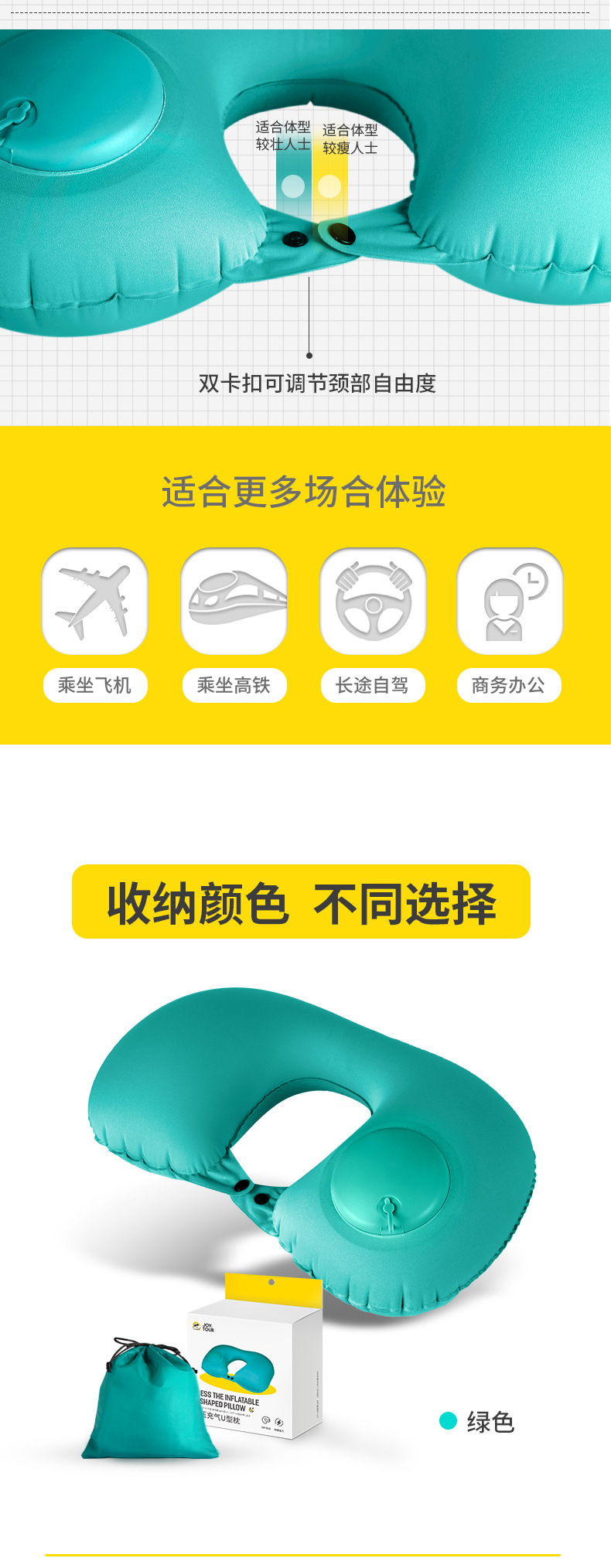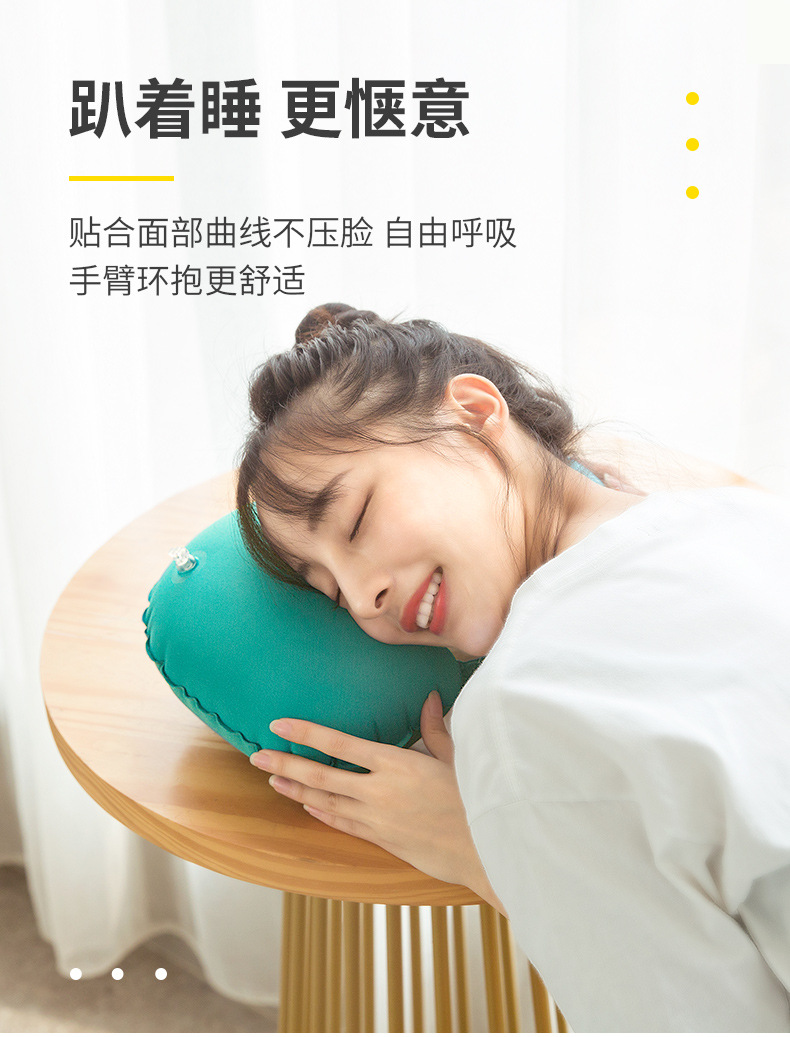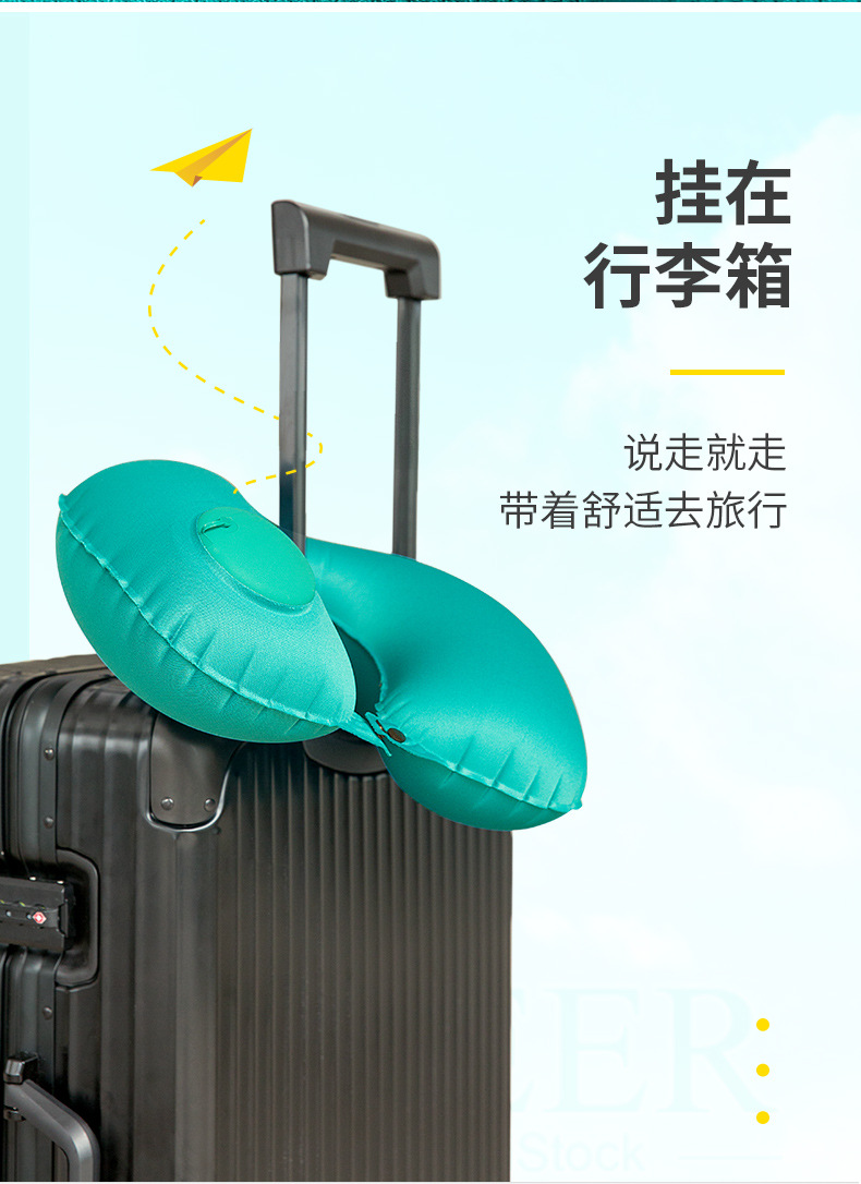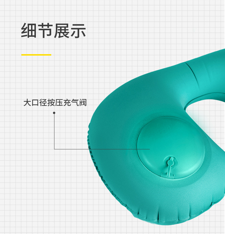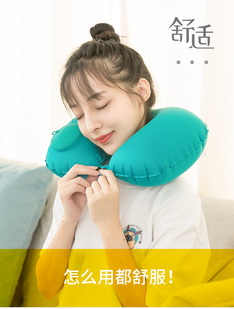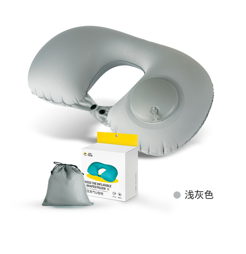 「礼盒装!两款配色」脖子u型枕充气u型枕女护颈椎枕旅行便携式居家布艺手动按压充气枕飞机枕头