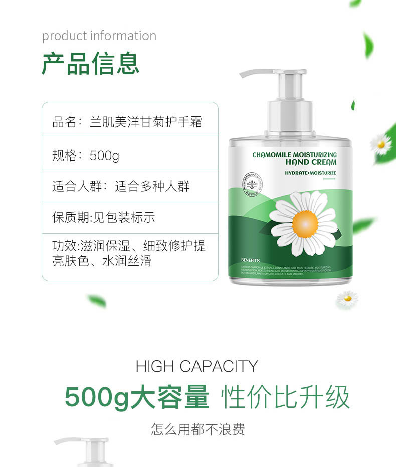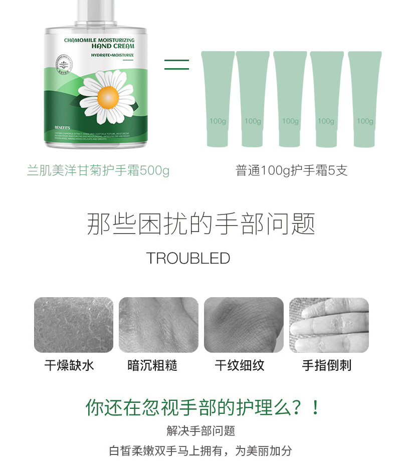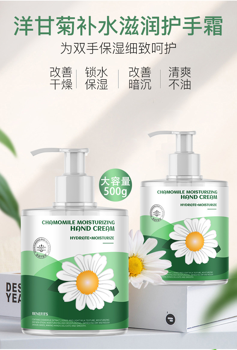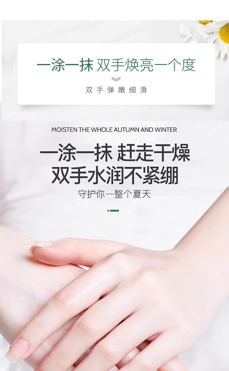 福利【秋冬必备,买二送一】洋甘菊护手霜,大容量500G,小雏菊修护保湿。清新滋润,宛如溪流轻拂,忍踏的柔软。绽放青春的光芒,美好从指尖开始。轻透不油腻,解救双手干燥困扰,带来全天候呵护!
