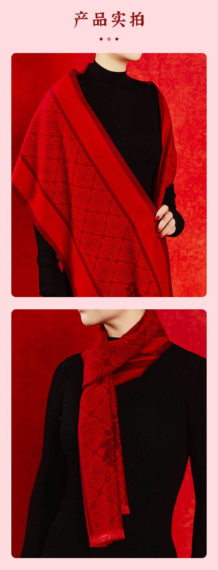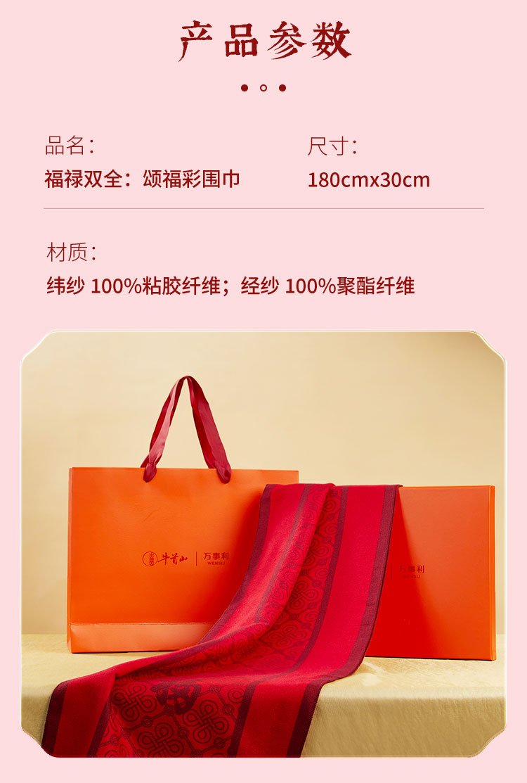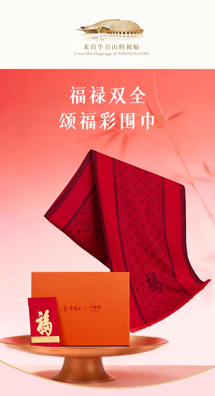 牛首山文创×万事利联名款福禄双全颂福彩围巾红色礼盒装新春礼物