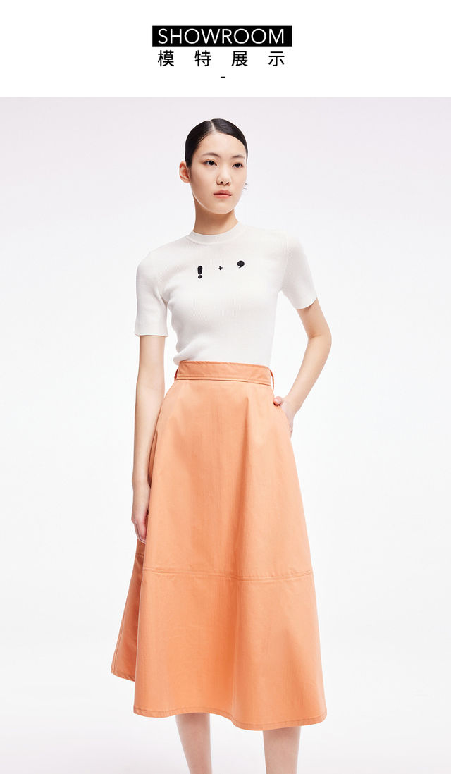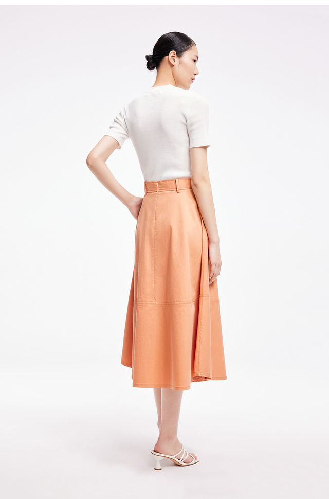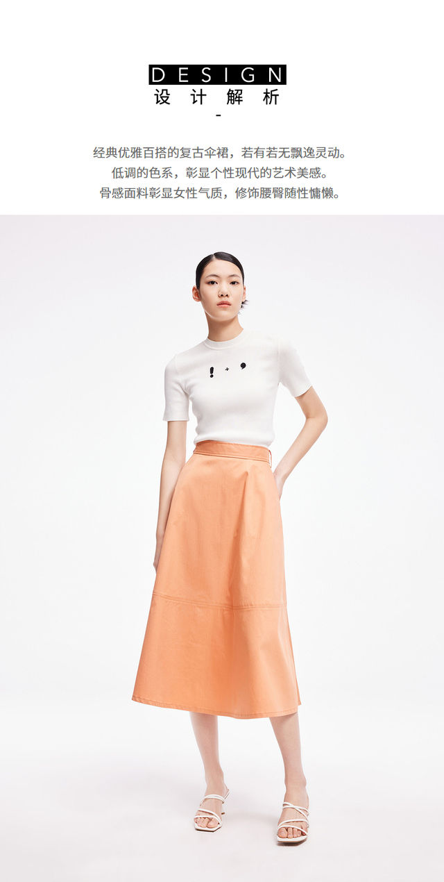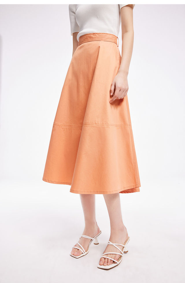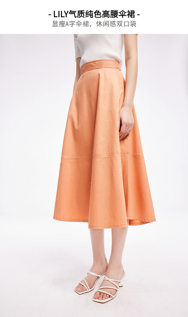 LILY2022夏新款女装气质纯色优雅显瘦高腰半身裙伞裙122230C6502