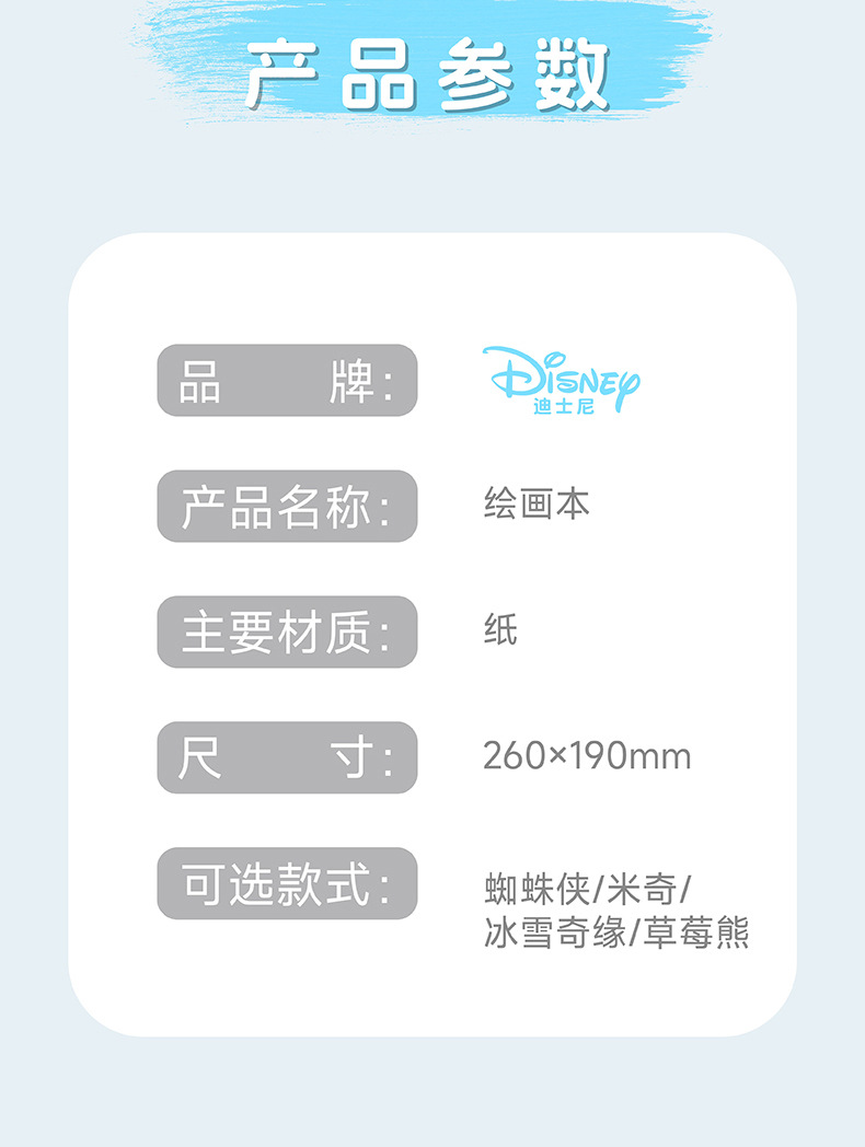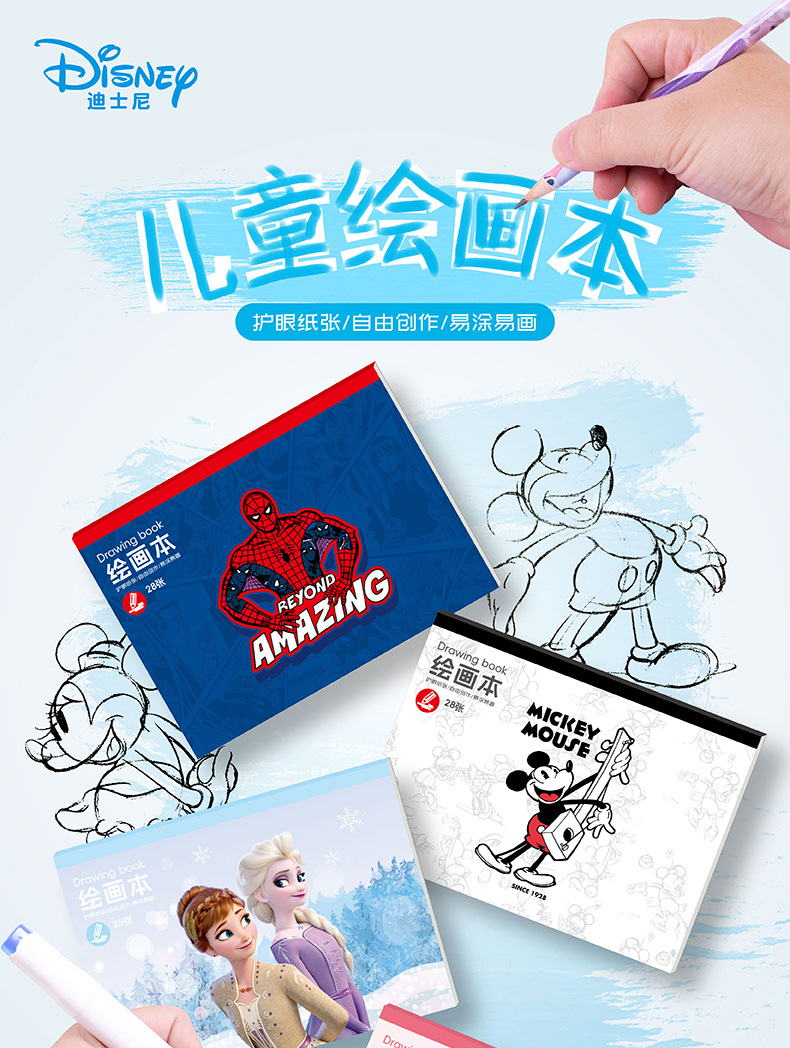 迪士尼儿童绘画本B5加厚学生空白画画本涂鸦本素描本水彩本笔盒开学季文具套装